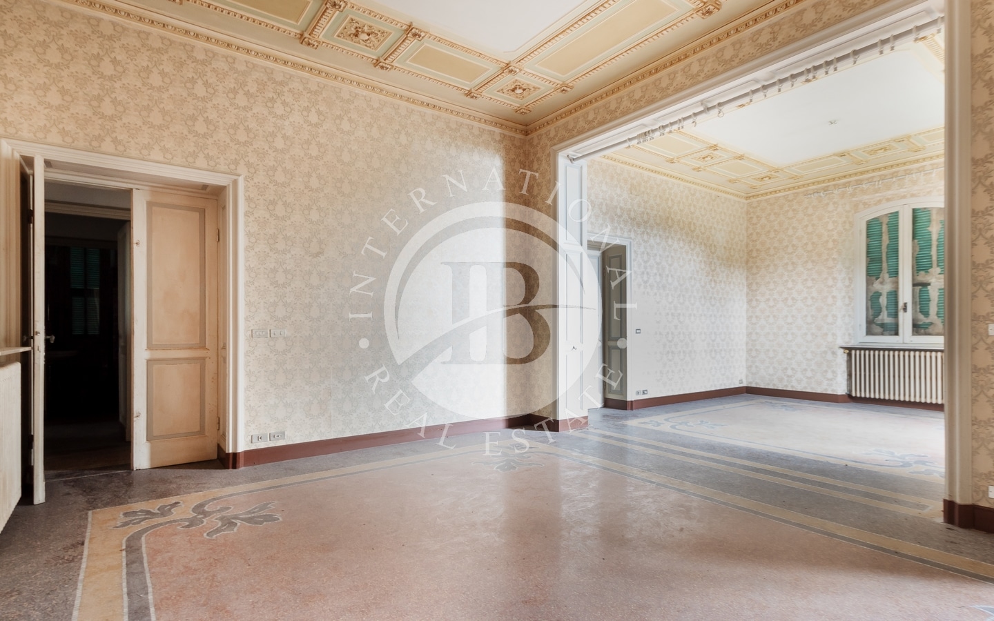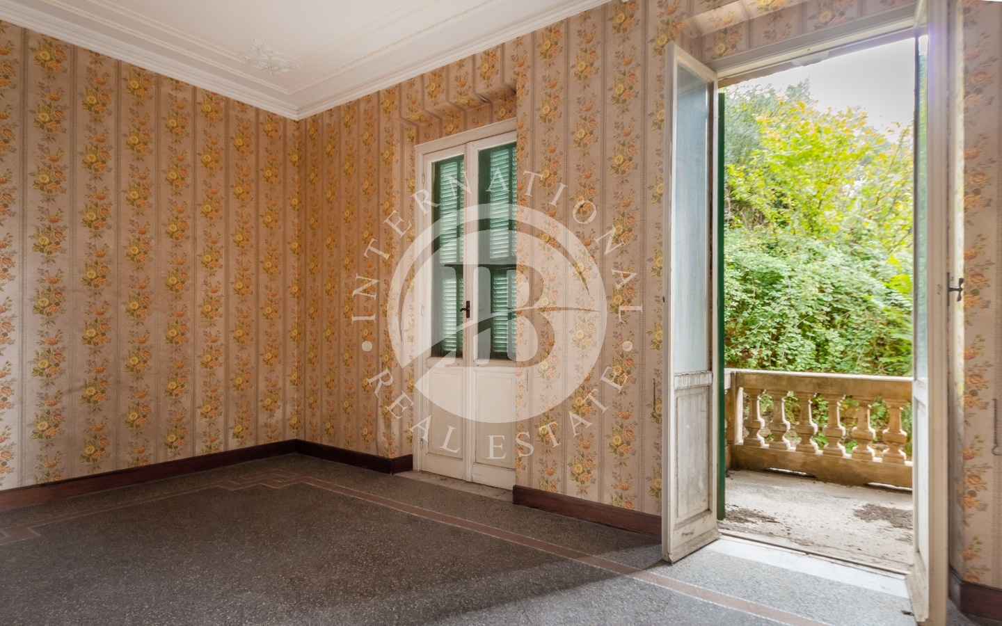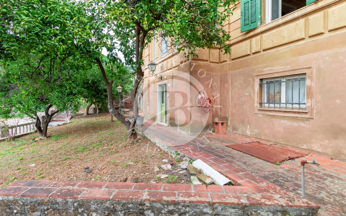 Denne elegante jugendstil-eiendommen har fire etasjer og er omgitt av en stor hage med terrasser.