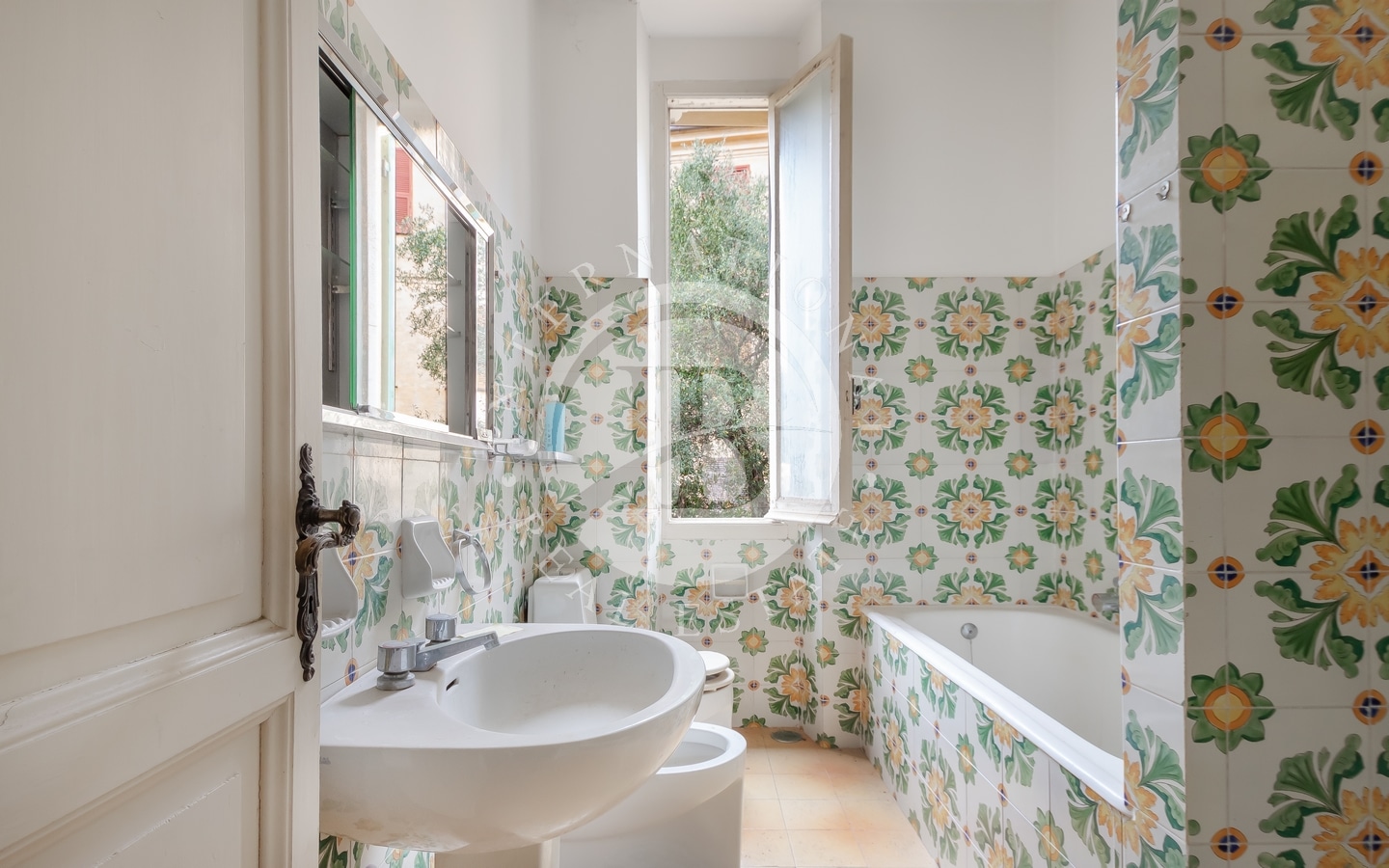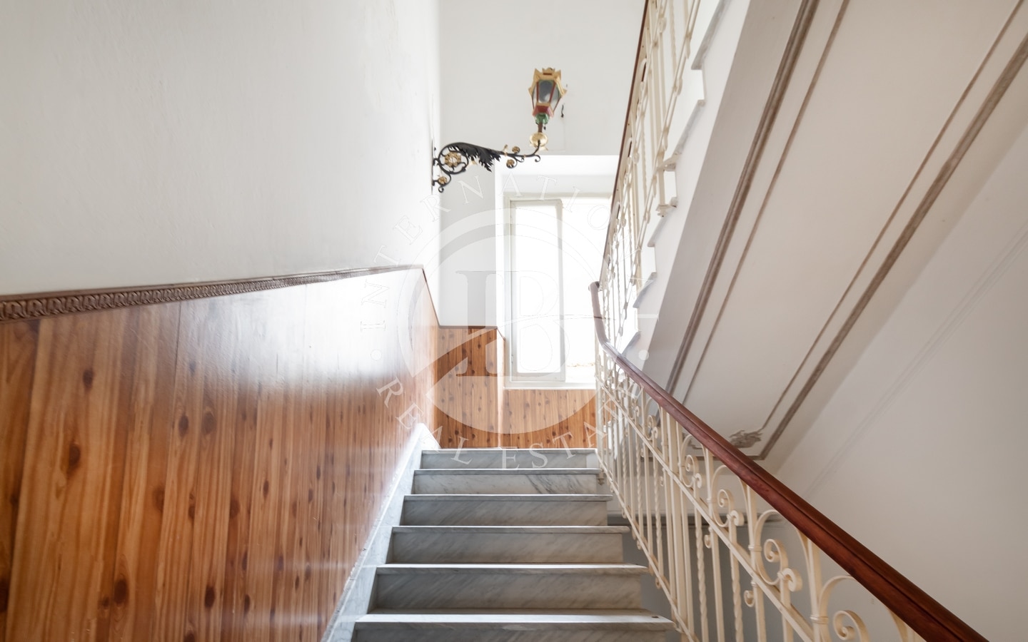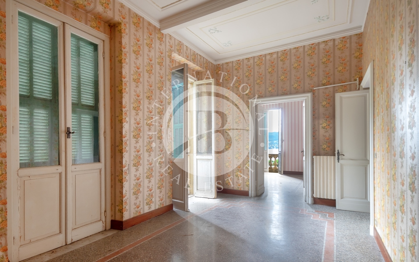 Denne elegante jugendstil-eiendommen har fire etasjer og er omgitt av en stor hage med terrasser.