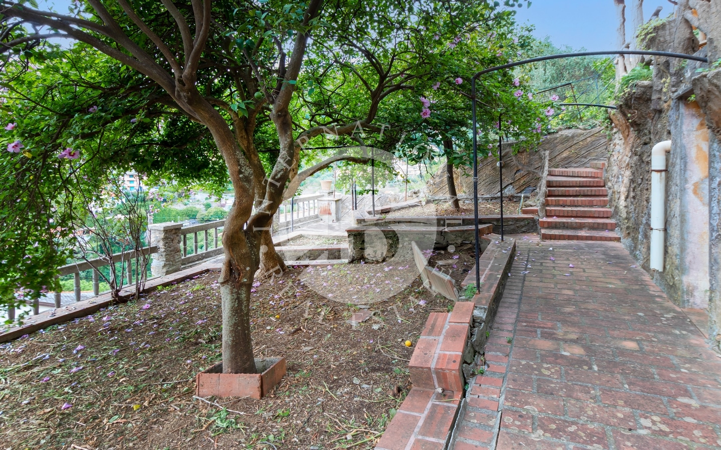Tilgangen til villaen er for tiden via en privat trapp, med mulighet for å installere et reolsystem for større bekvemmelighet.