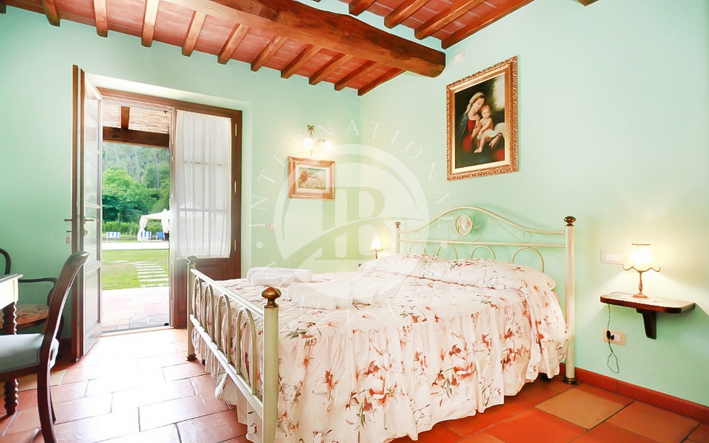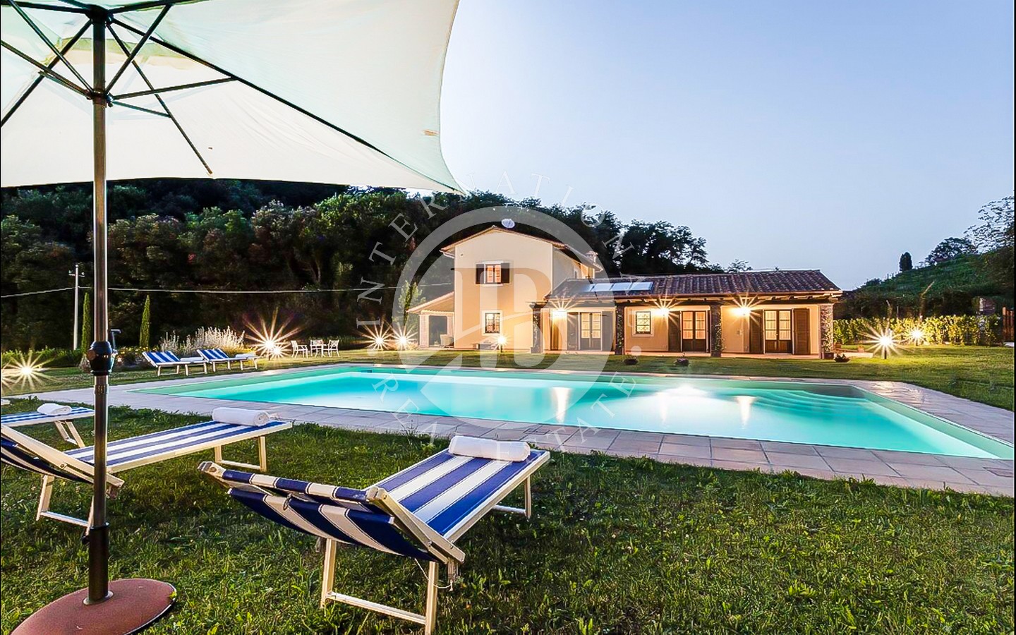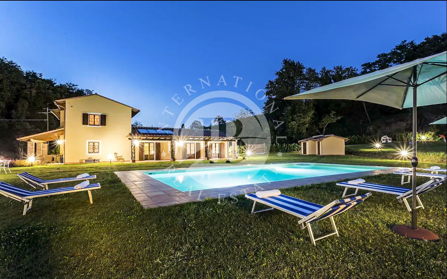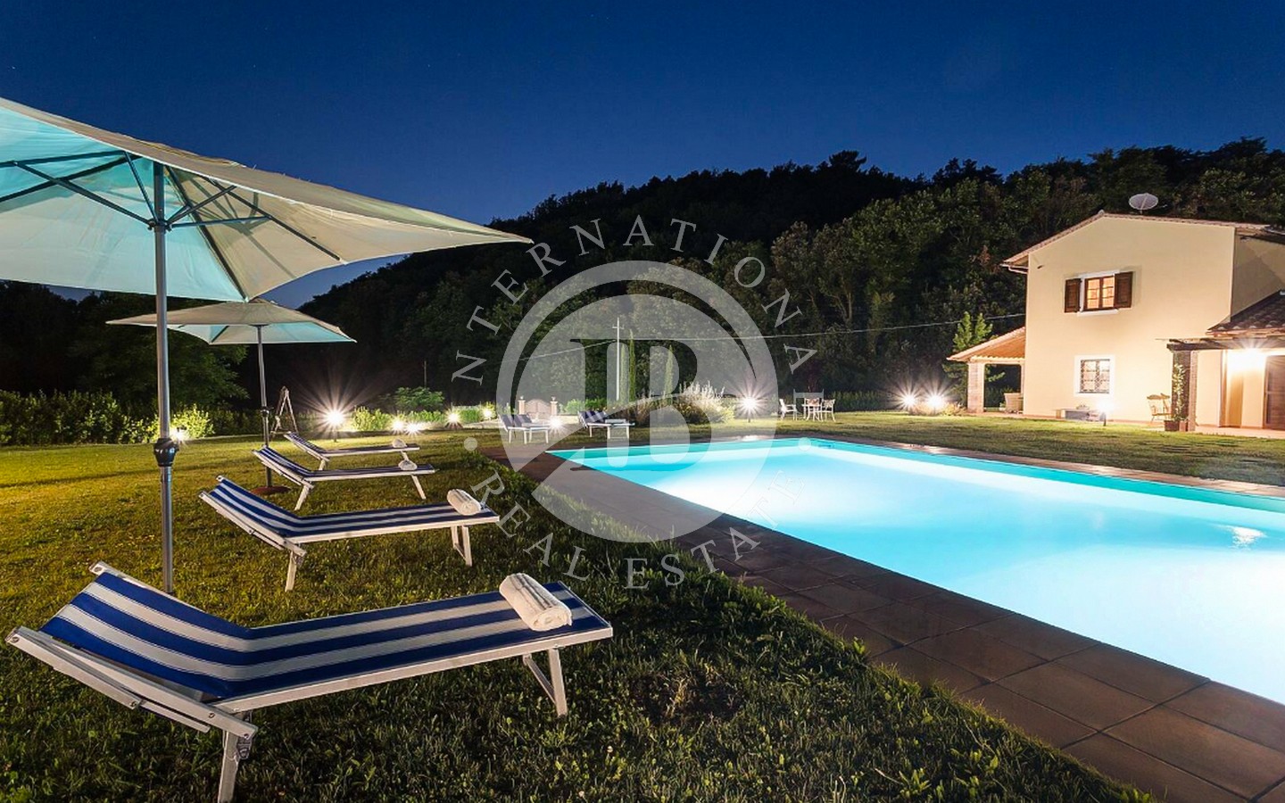Utenfor ligger et majestetisk svømmebasseng på 8 x 12 meter som strekker seg ut i den frodige 9000 kvadratmeter store hagen, og er et perfekt sted for avslapning og underholdning. Den utmerkede beliggenheten gir en fantastisk utsikt over det toskanske landskapet, mens privatlivet garanteres av en privilegert beliggenhet, langt fra nysgjerrige blikk.
