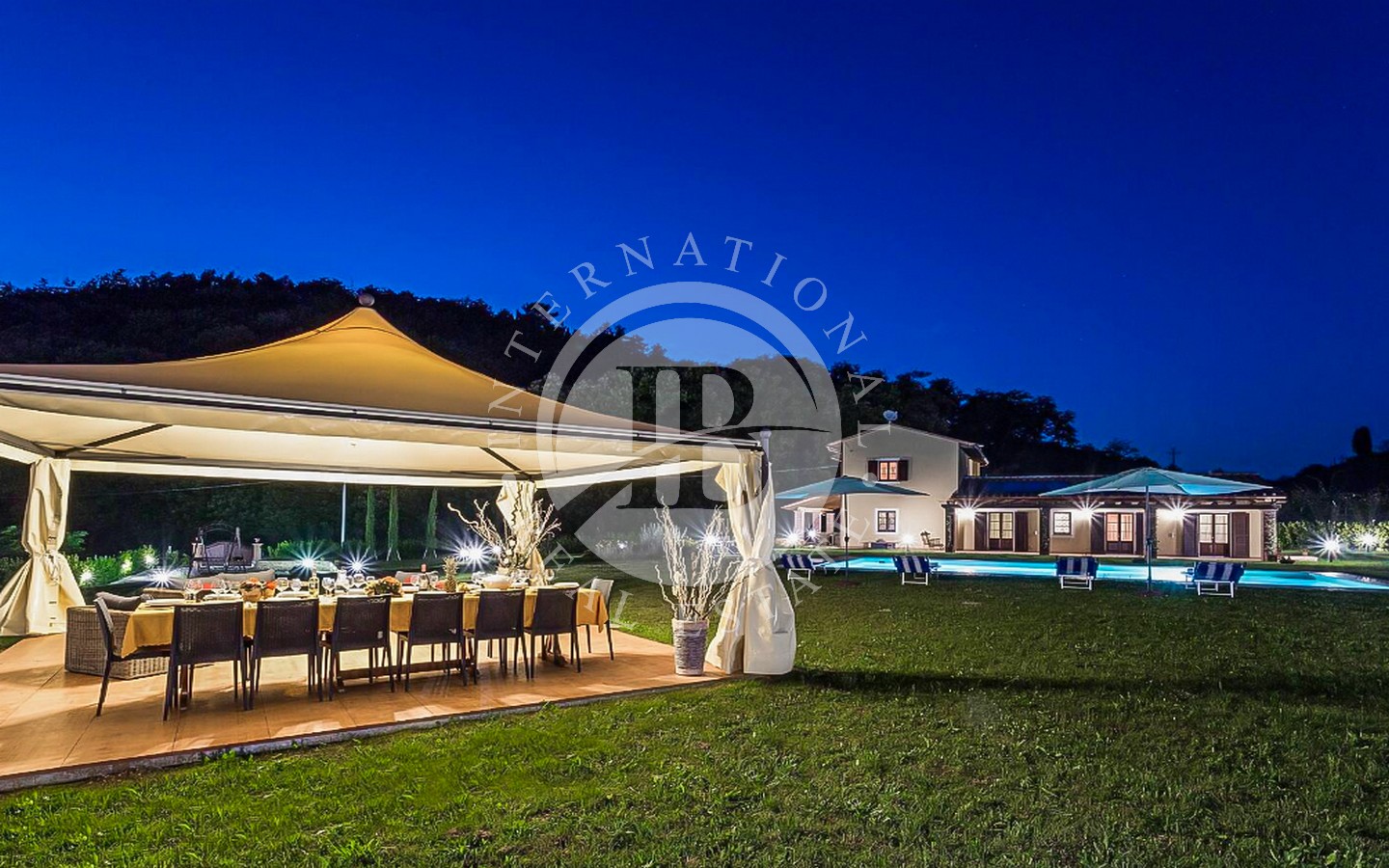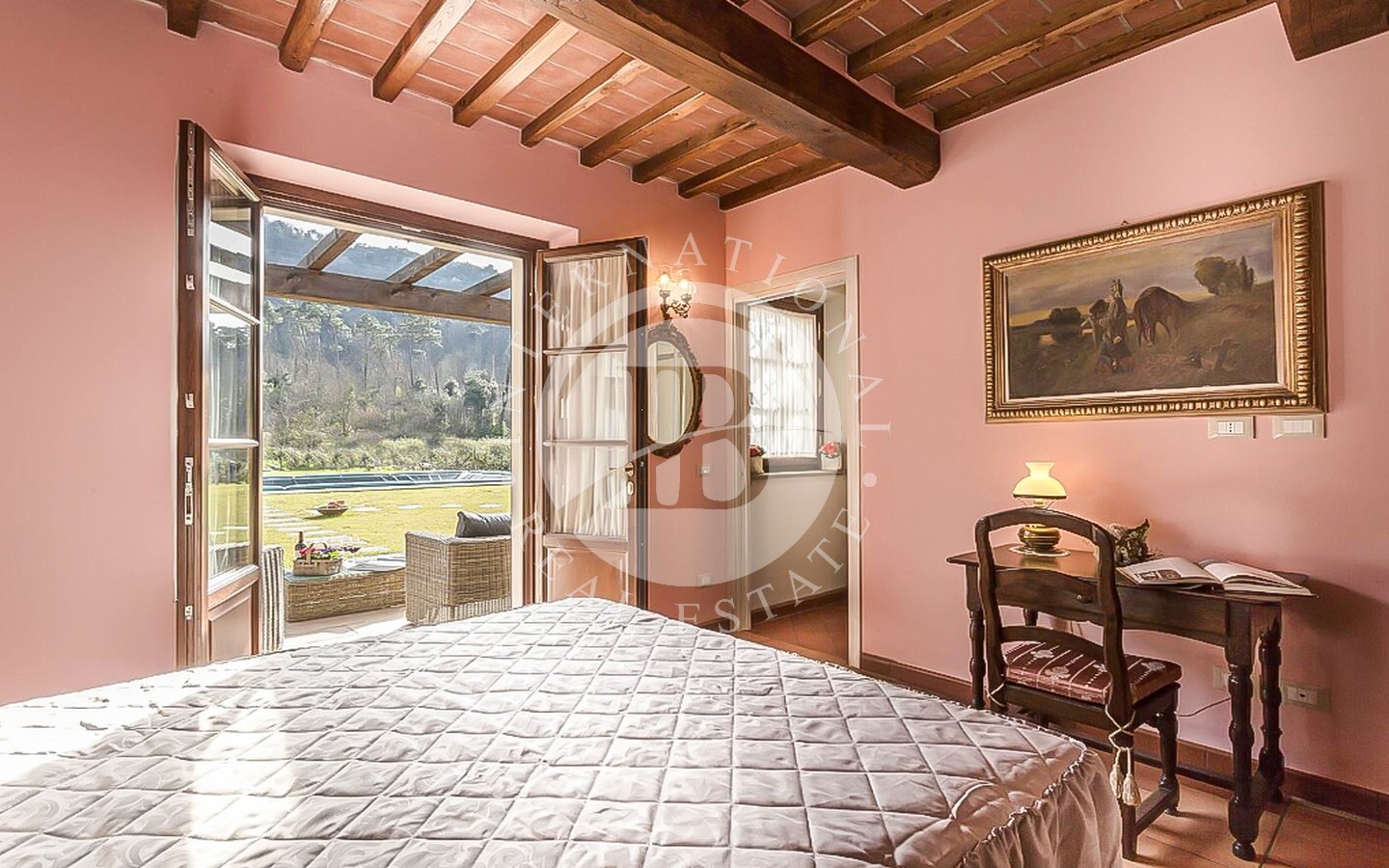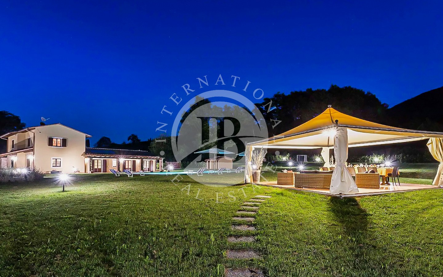 Utenfor ligger et majestetisk svømmebasseng på 8 x 12 meter som strekker seg ut i den frodige 9000 kvadratmeter store hagen, og er et perfekt sted for avslapning og underholdning. Den utmerkede beliggenheten gir en fantastisk utsikt over det toskanske landskapet, mens privatlivet garanteres av en privilegert beliggenhet, langt fra nysgjerrige blikk.