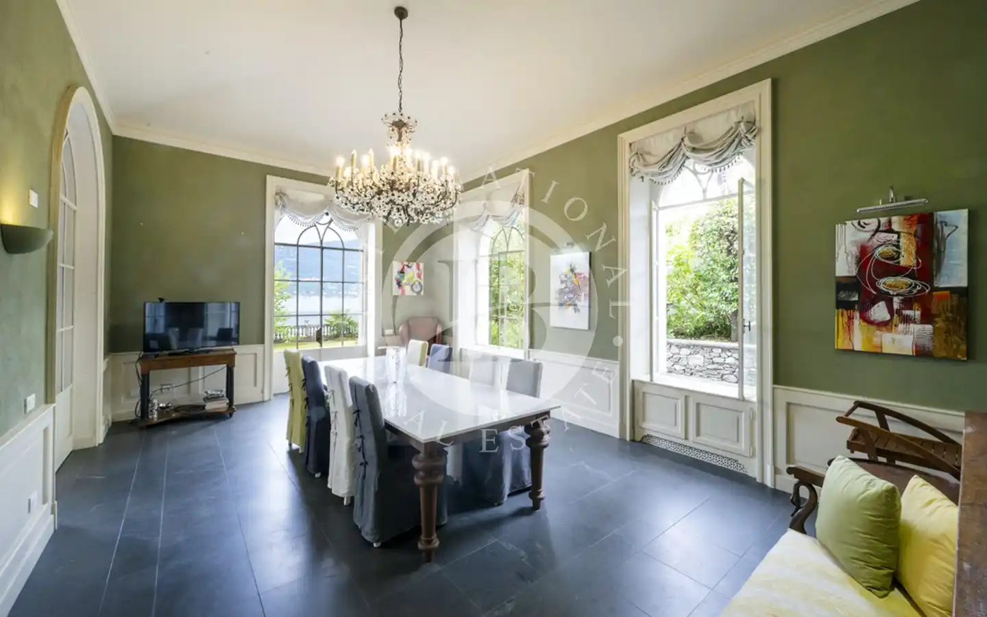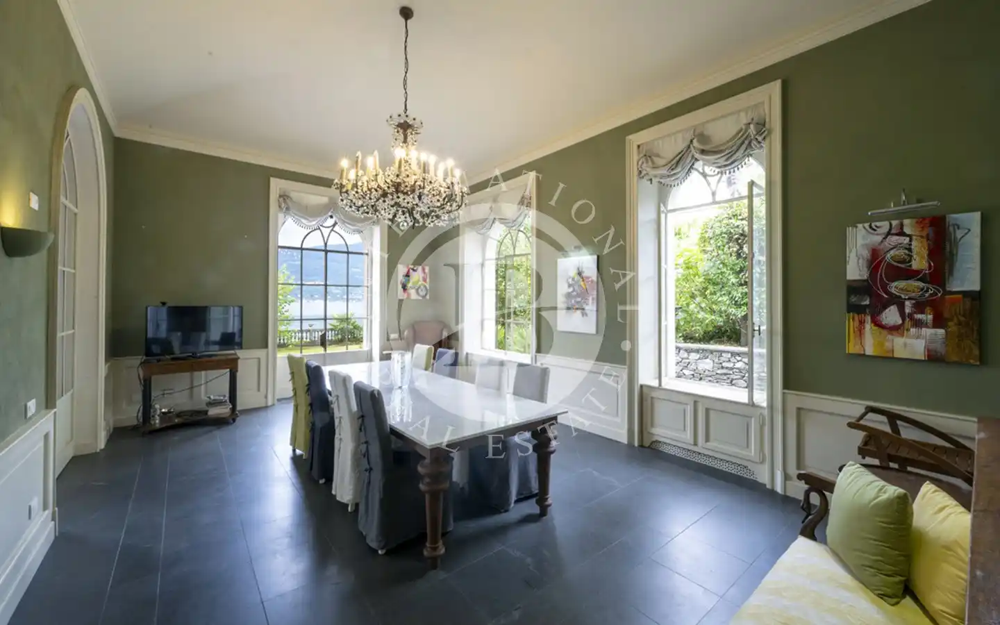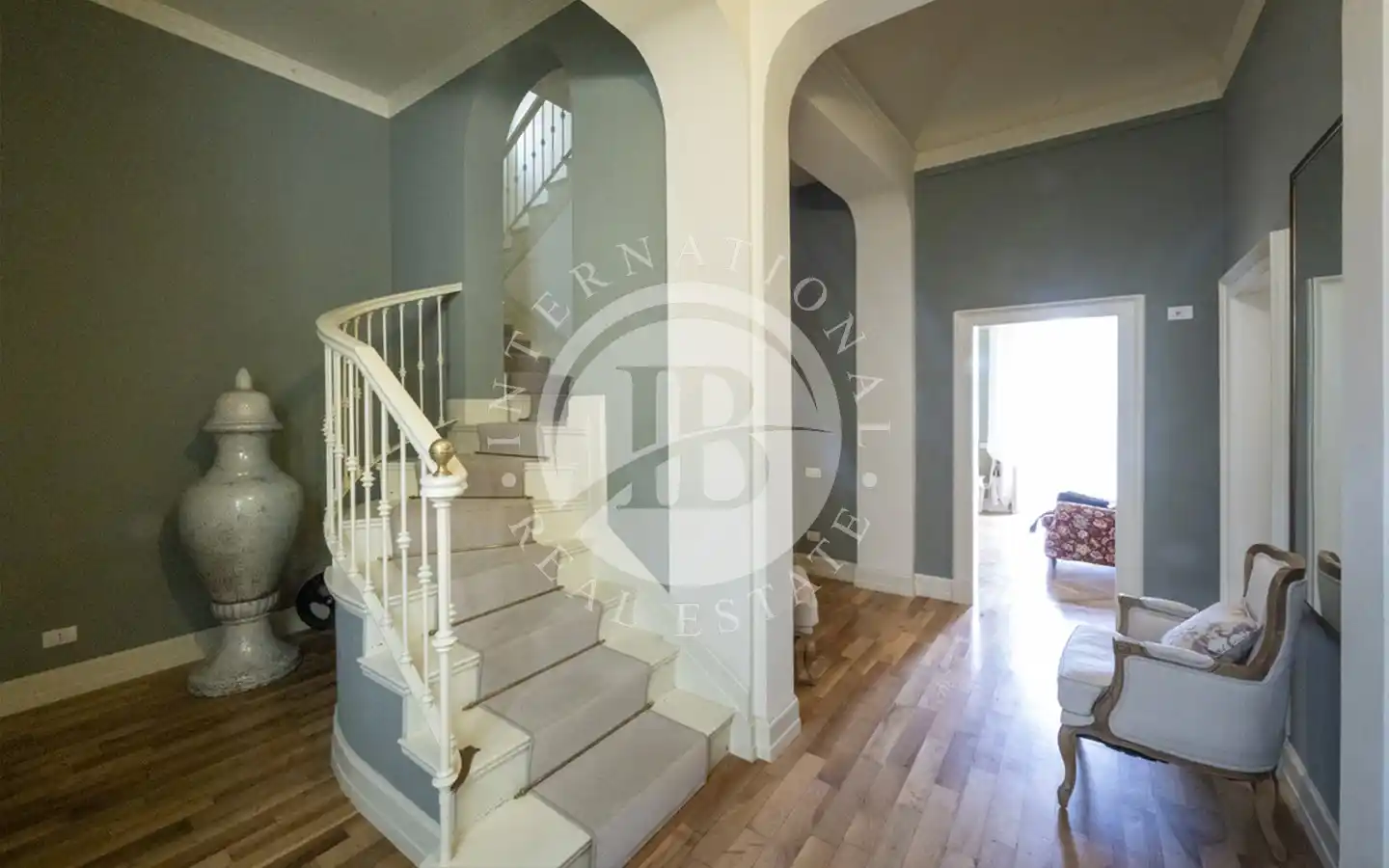 Eiendommen ble fullstendig ombygd i 2013 med materialer og finish på høyeste nivå, og kombinerer sjarmen til historisk arkitektur med komforten til de mest moderne teknologiene. Villaen er omgitt av en elegant flat hage som strekker seg til kysten, og tilbyr en atmosfære av absolutt privatliv og ro.