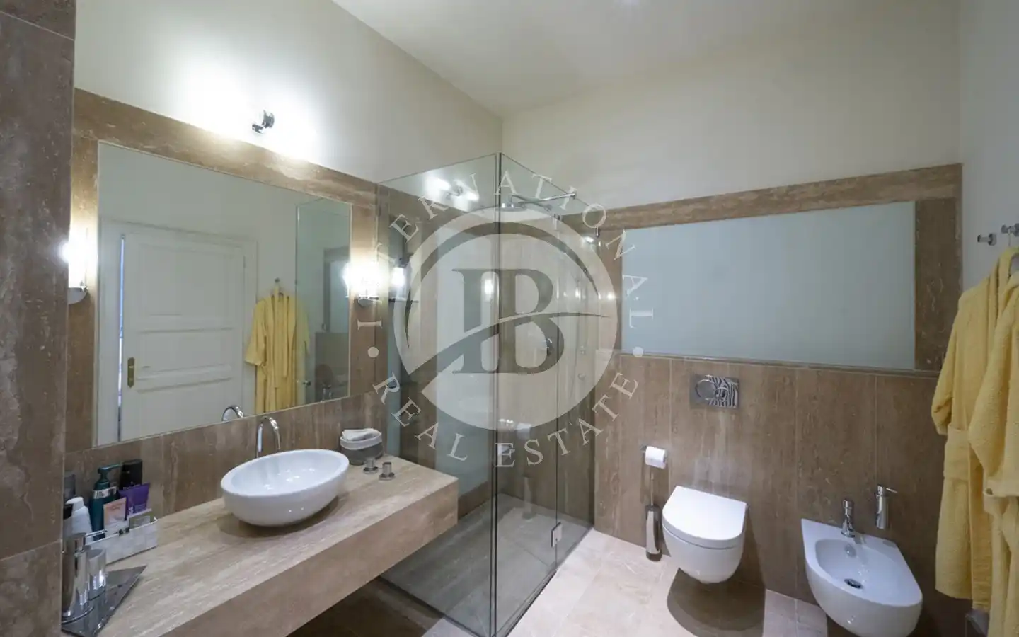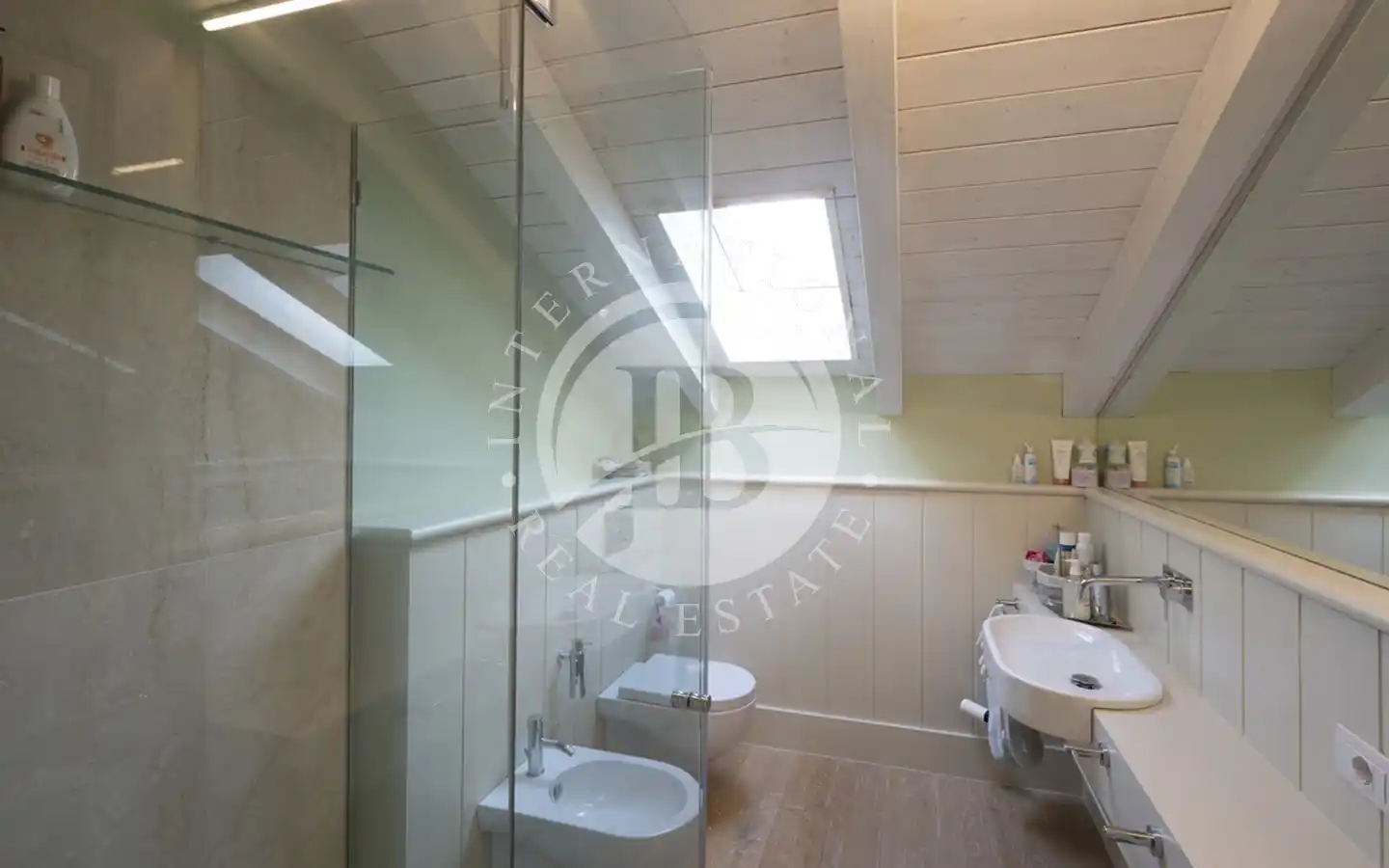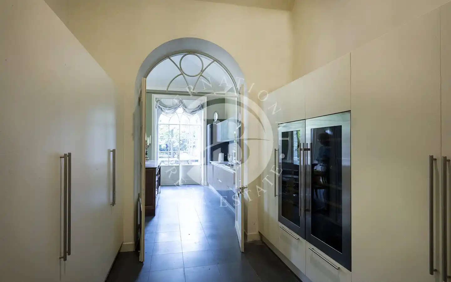 Eiendommen ble fullstendig ombygd i 2013 med materialer og finish på høyeste nivå, og kombinerer sjarmen til historisk arkitektur med komforten til de mest moderne teknologiene. Villaen er omgitt av en elegant flat hage som strekker seg til kysten, og tilbyr en atmosfære av absolutt privatliv og ro.