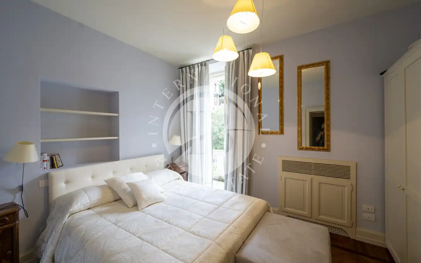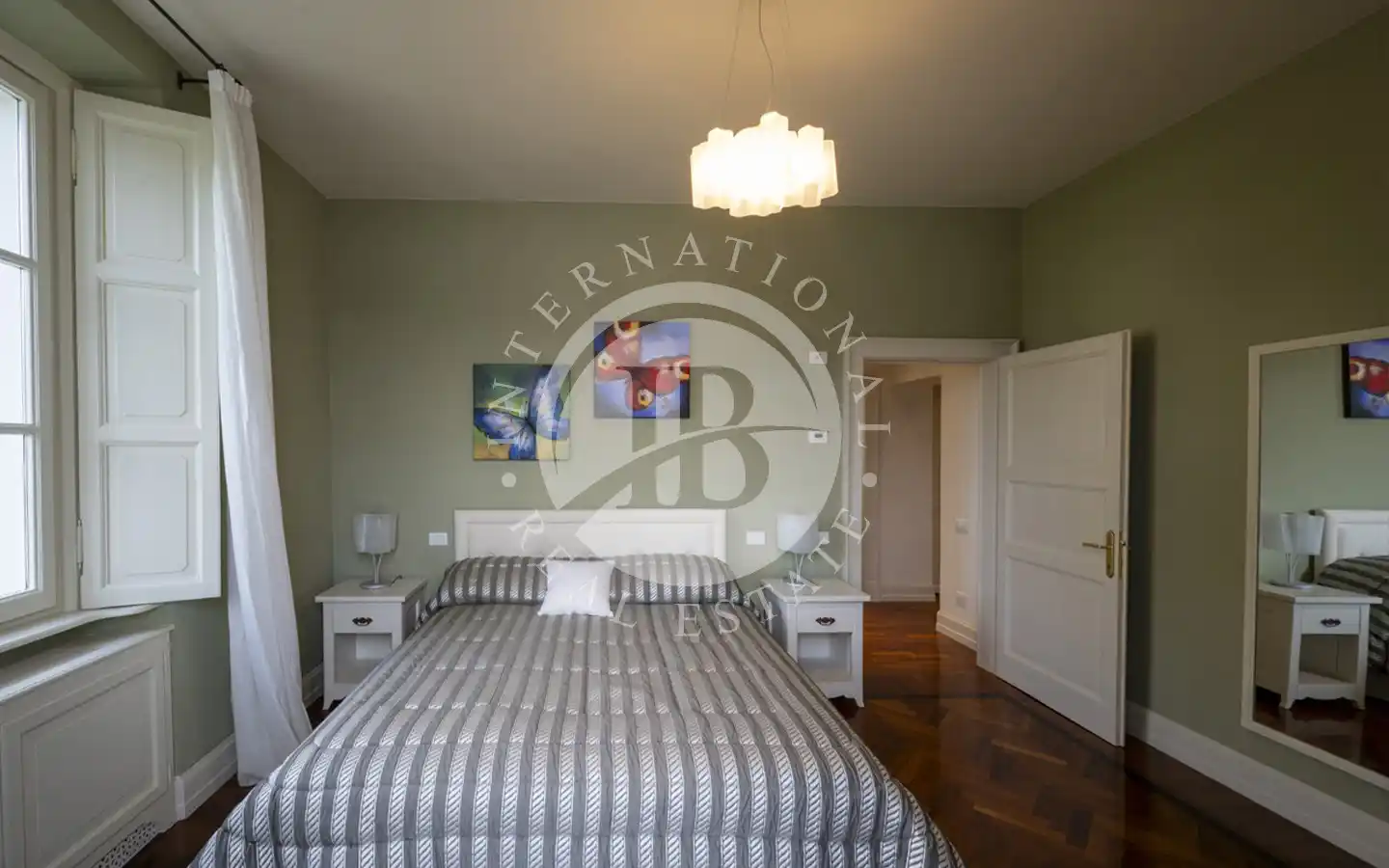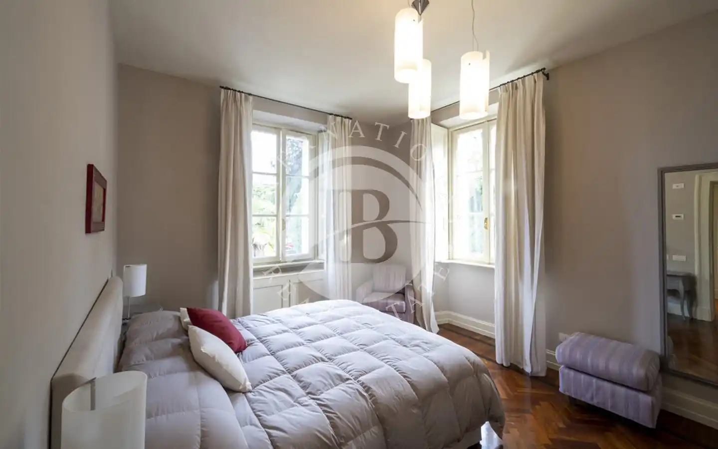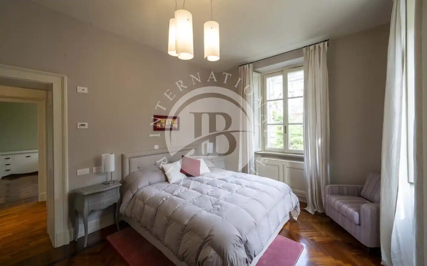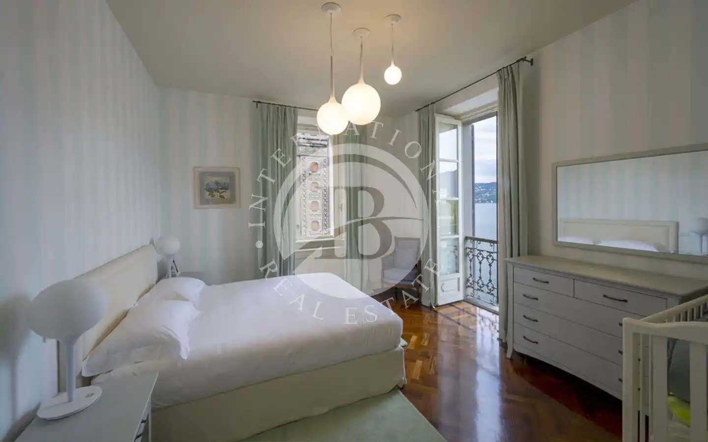 Første etasje er dedikert til hovedsuiten, komplett med garderobe, privat marmorbad og balkong med fantastisk utsikt over innsjøen.