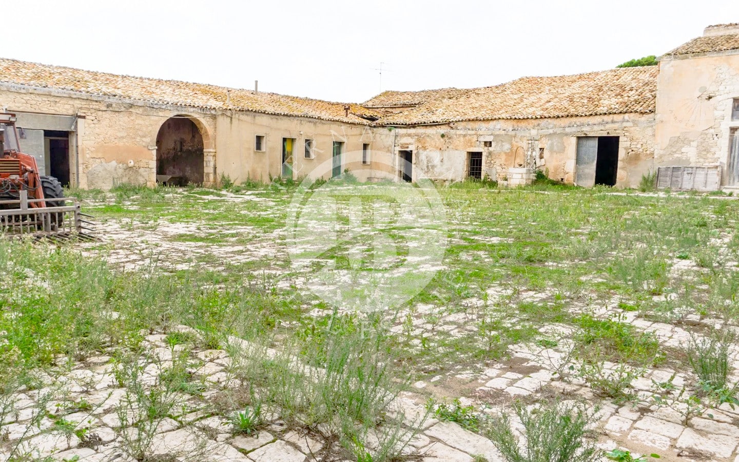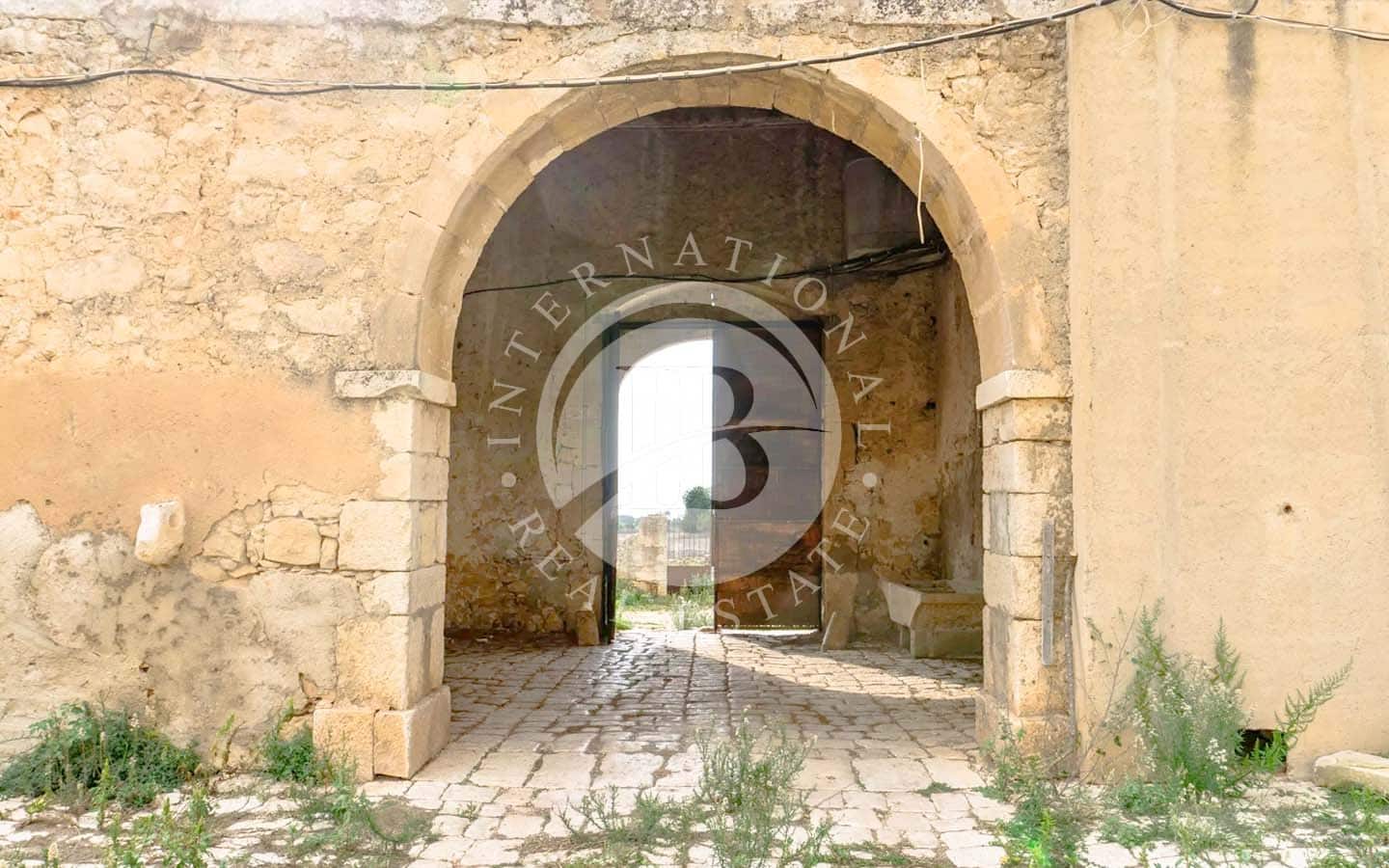 Nelle campagne ragusane, un antico feudo del 1600 si presenta con tutto il fascino di una struttura storica perfettamente inserita nel paesaggio circostante. Circondata da mura alte tre metri, la proprietà si sviluppa attorno a un ampio baglio centrale pavimentato in basolato, che copre 750 mq.
