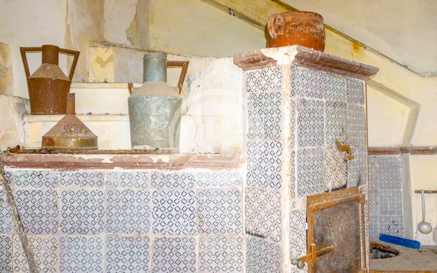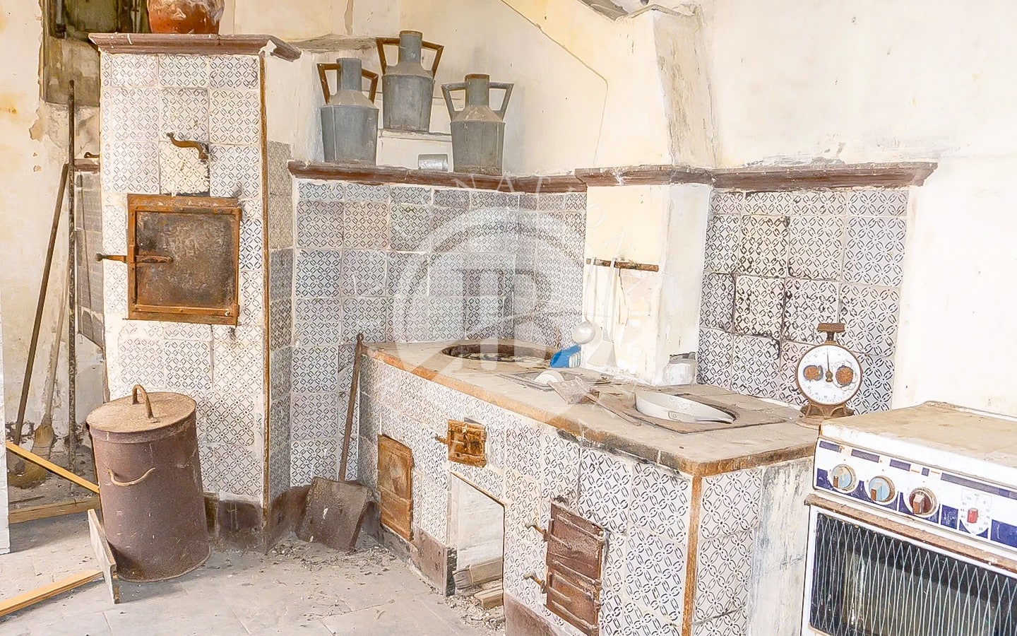 La casa padronale, su due livelli, si raggiunge attraverso una scala in pietra pece che conduce al piano nobile. Qui si trovano i saloni di rappresentanza, le camere da letto e una cucina in muratura ancora ben conservata. I pavimenti alternano materiali originali del ‘600 e cementine di epoche successive. Dal terrazzo, ornato da merli in stile castellano, la vista si estende sulle campagne siciliane fino al mare.