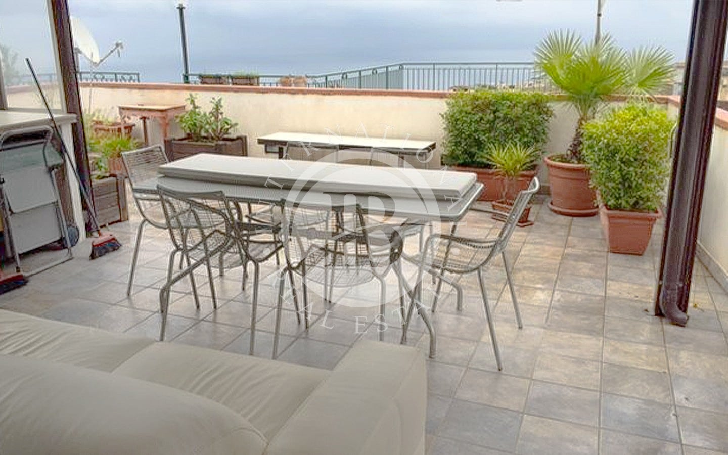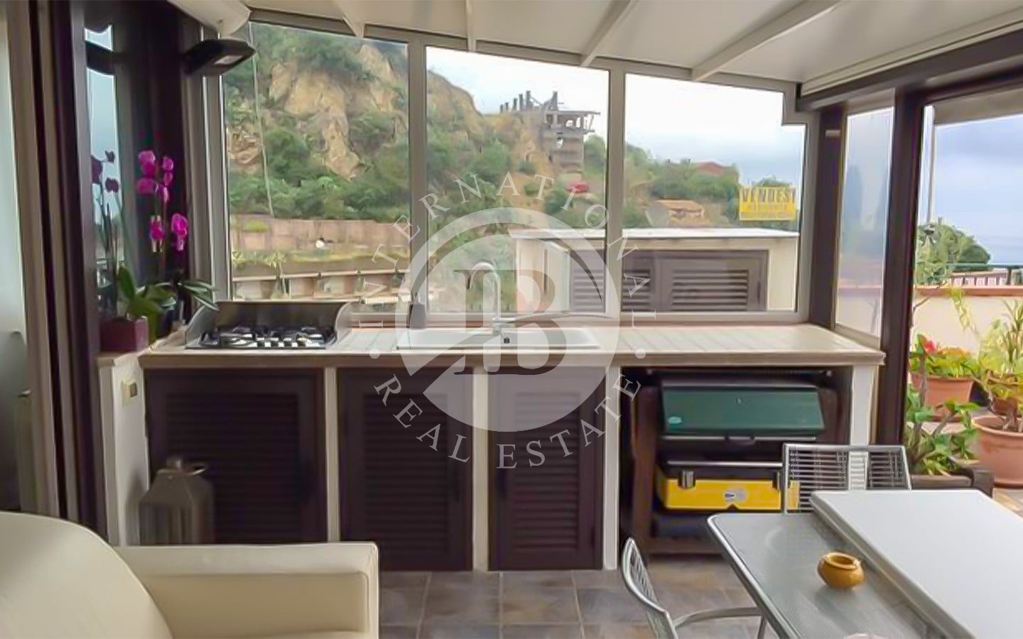All’esterno, la proprietà è arricchita da un terrazzo protetto da una tenda avvolgente, completo di cucina e barbecue, perfetto per godere dei momenti di relax all’aperto.
