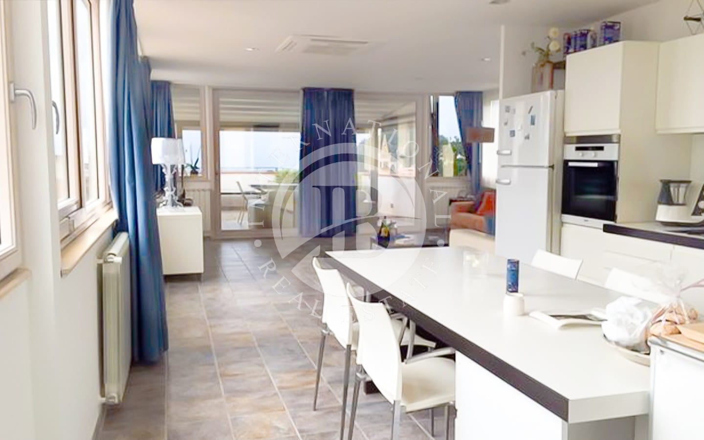 Ultimo piano: elegante salone con cucina a vista e bagno.