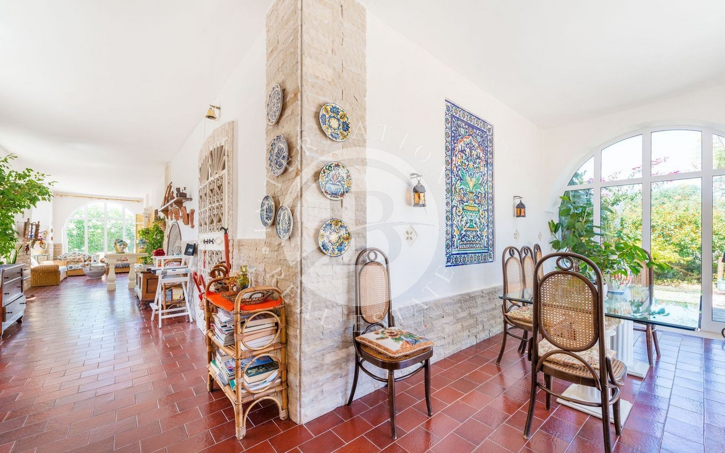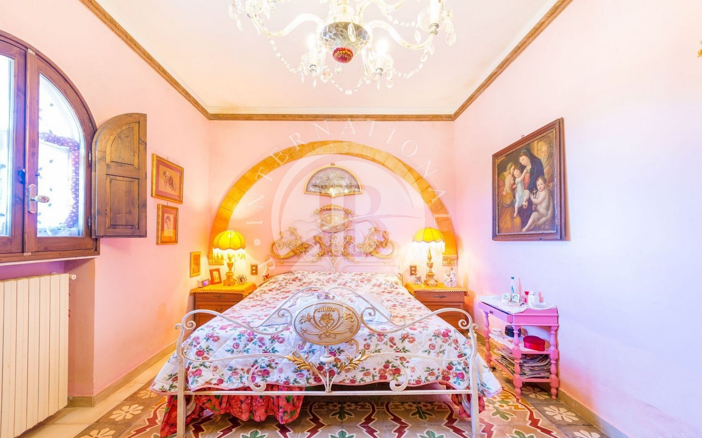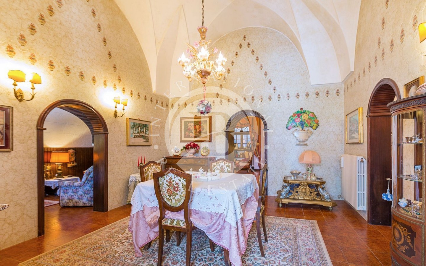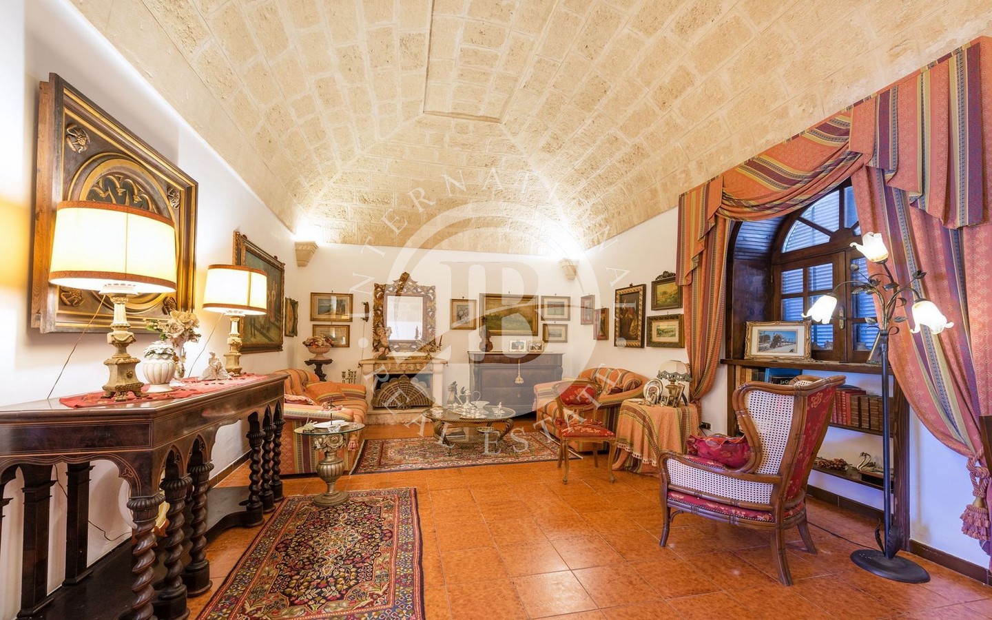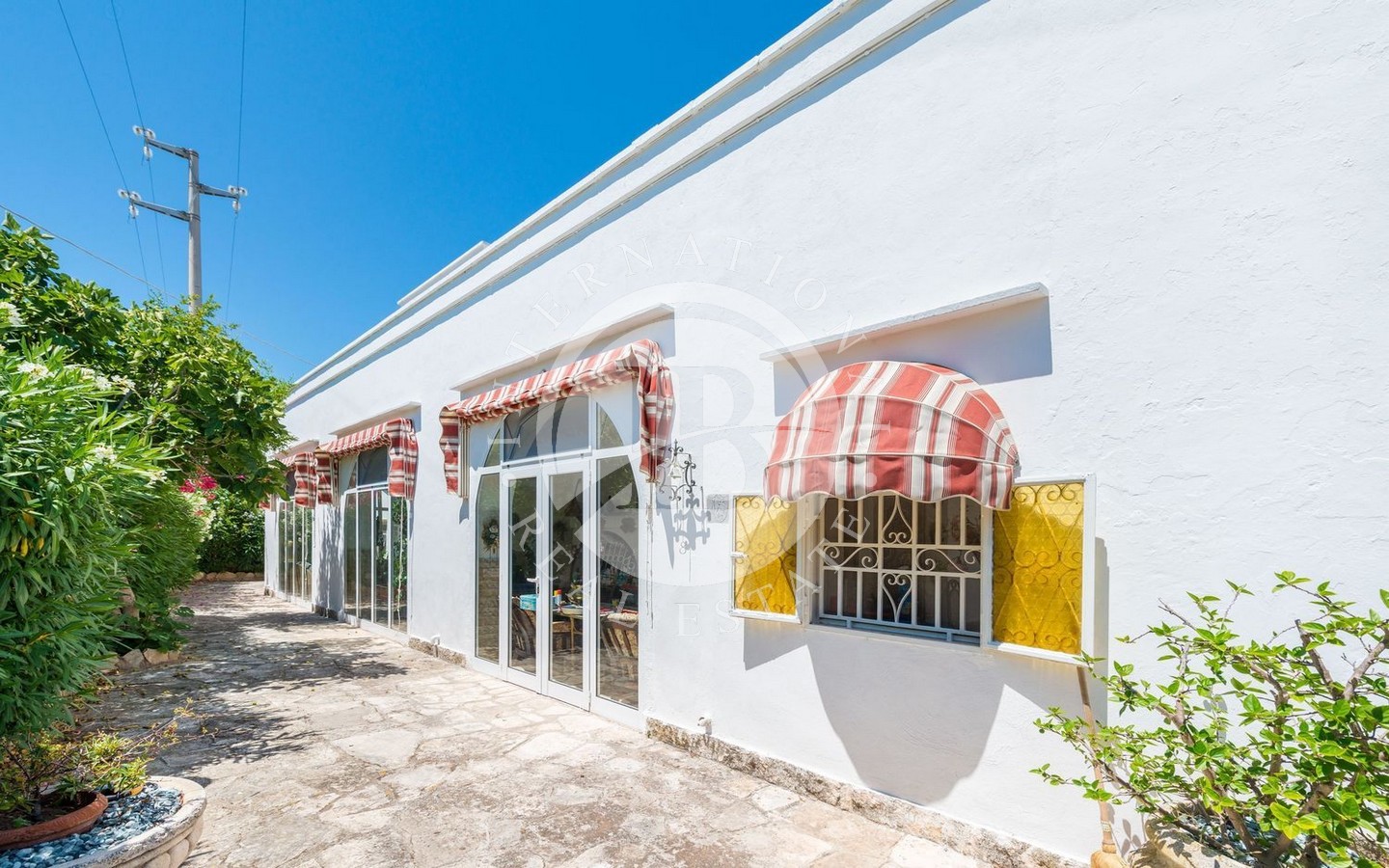 Disposto su due livelli, il casale si compone di undici spaziosi vani, caratterizzati in parte da suggestive volte tipiche, che conferiscono un fascino unico all'ambiente. Gli ampi patii, le verande e le terrazze pertinenziali offrono spazi ideali per godere appieno della vista e del clima mediterraneo, mentre il giardino attrezzato di circa 1800 mq, arricchito da piante e fiori, crea un'oasi di verde e tranquillità.