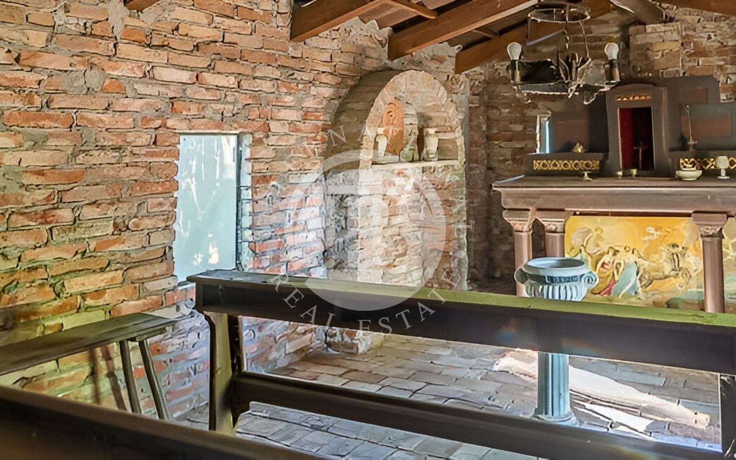 L'atmosfera suggestiva della villa è arricchita da angoli pittoreschi, balaustre incantevoli, pozzi antichi, berceau romantici e statue d'epoca.
