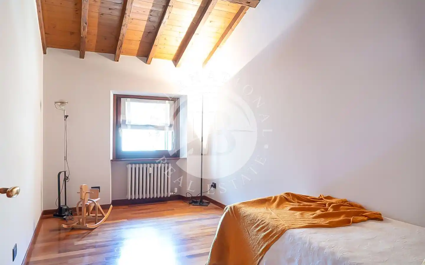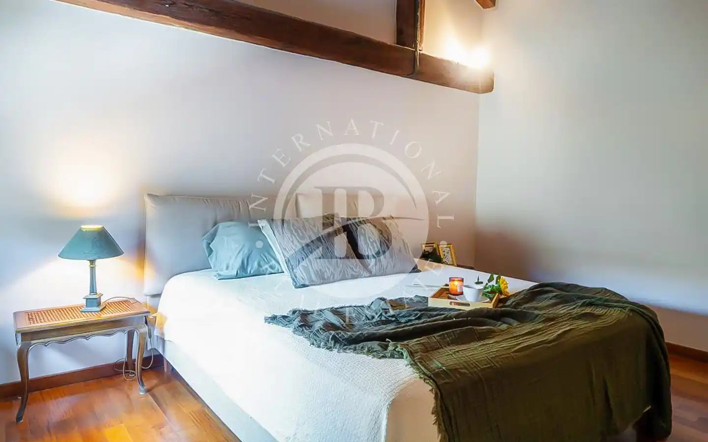 La zona notte, con travi a vista e pavimenti in parquet, offre un ambiente caldo e accogliente. Qui si trovano una spaziosa camera padronale, due camere di buone dimensioni, un ampio bagno con velux e un bagno di servizio, oltre a un disimpegno con armadiature su misura che garantiscono funzionalità e ordine.