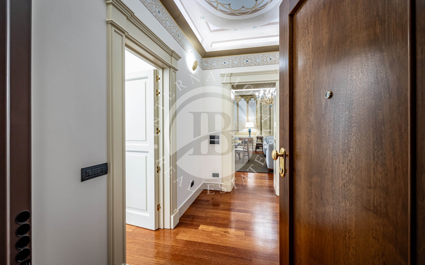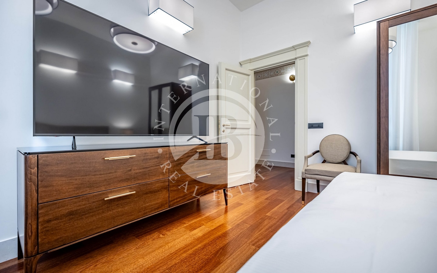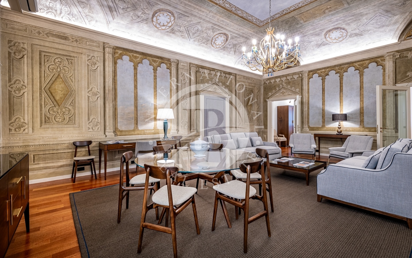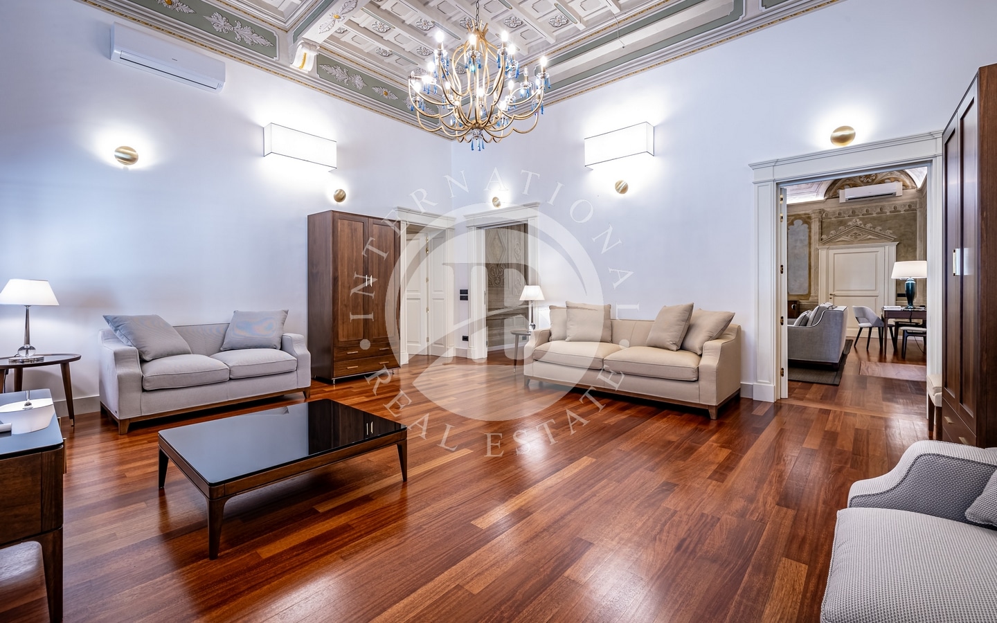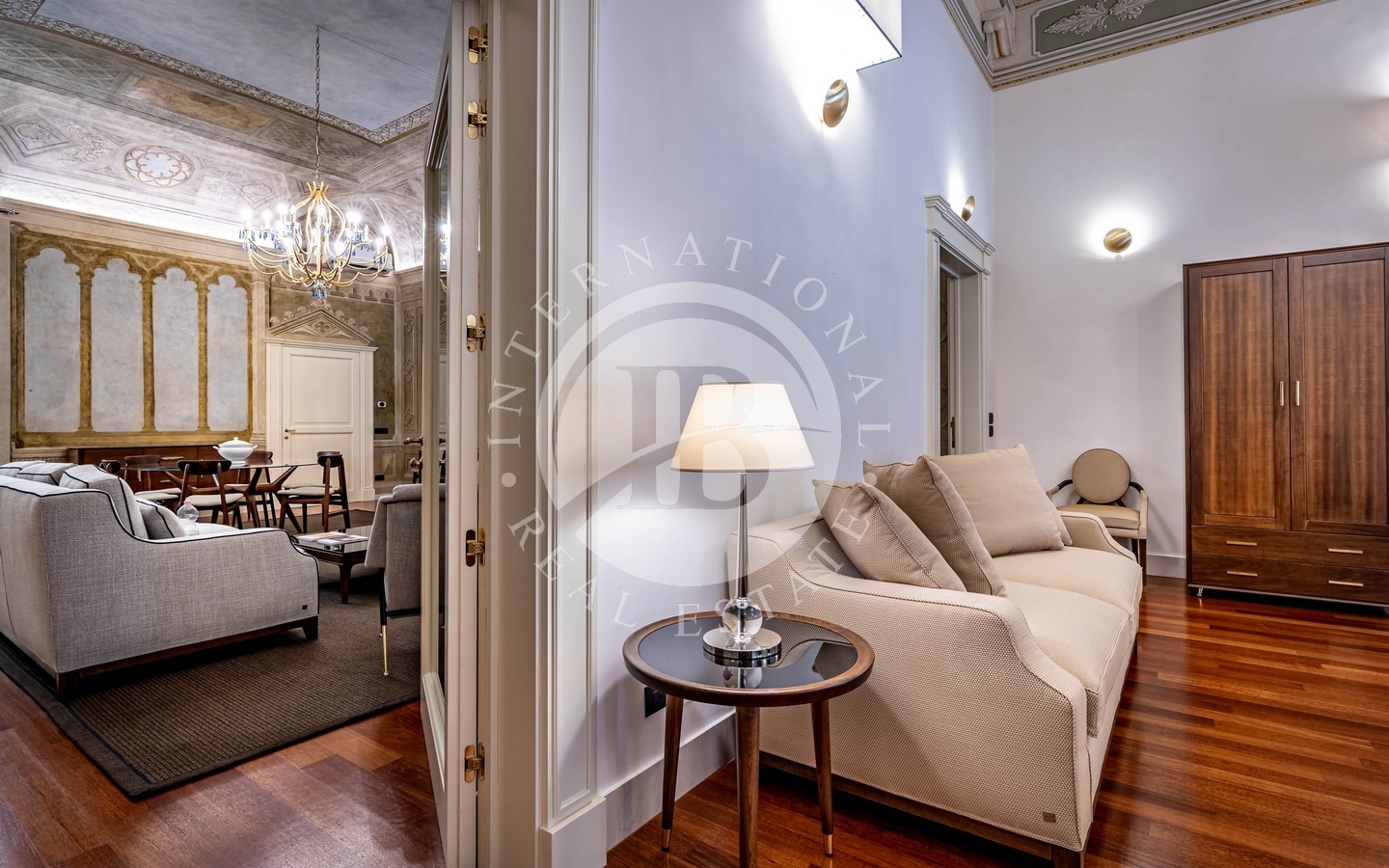 La ristrutturazione di alto livello ha saputo conservare dettagli storici unici, come il salone e i soffitti affrescati, combinandoli con comfort e dettagli moderni come pavimento in parquet e bagni in marmo. L'appartamento è dotato di aria condizionata, caldaia a condensazione, impianto antenna parabolica e wifi, garantendo un'esperienza abitativa completa e senza compromessi.