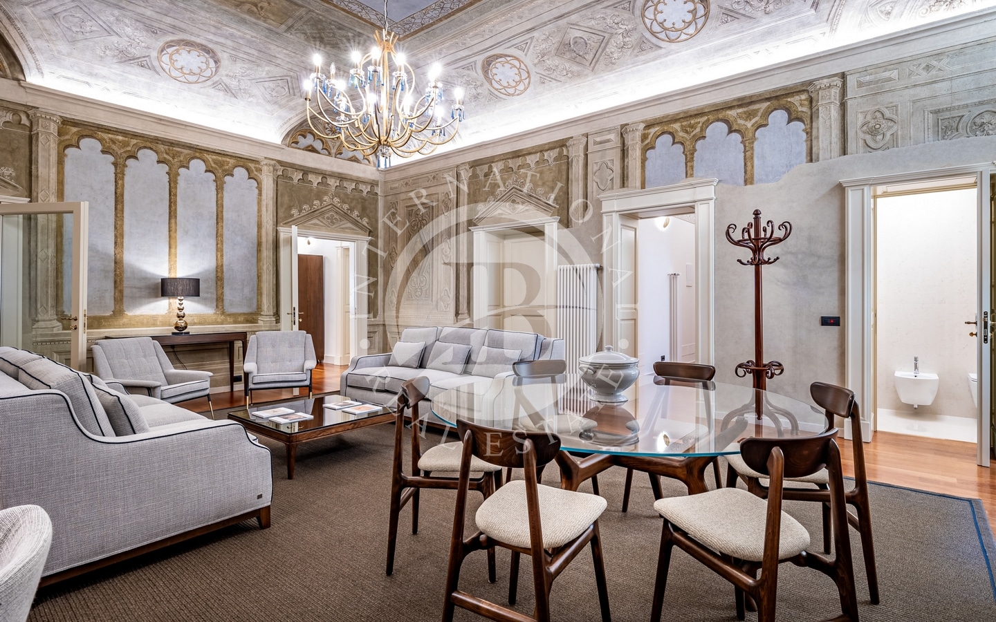 Completamente ristrutturato e arredato, offre un'esperienza abitativa unica, tra soffitti affrescati e a cassettoni, comfort all'avanguardia e una vista impareggiabile sul simbolo della città.