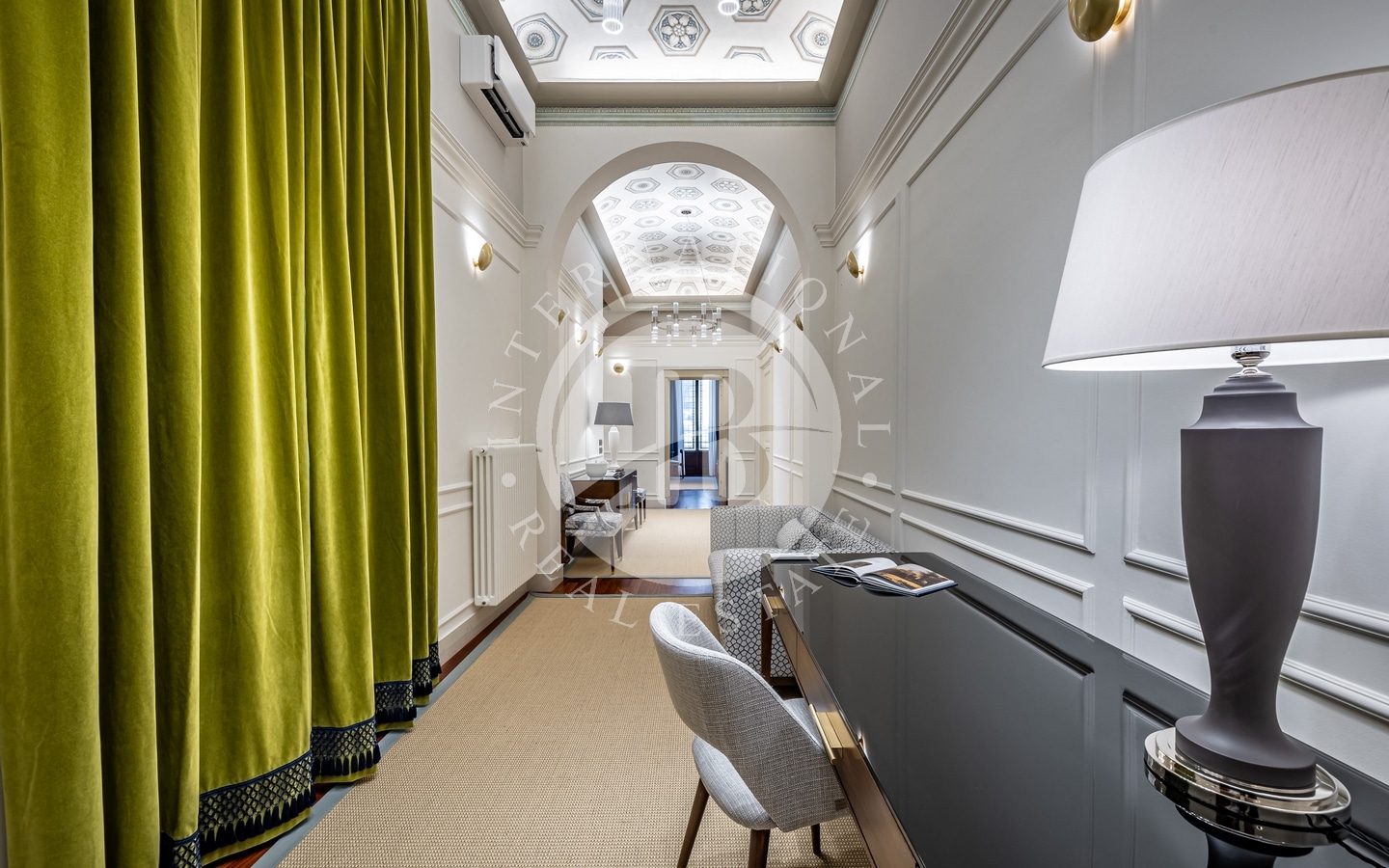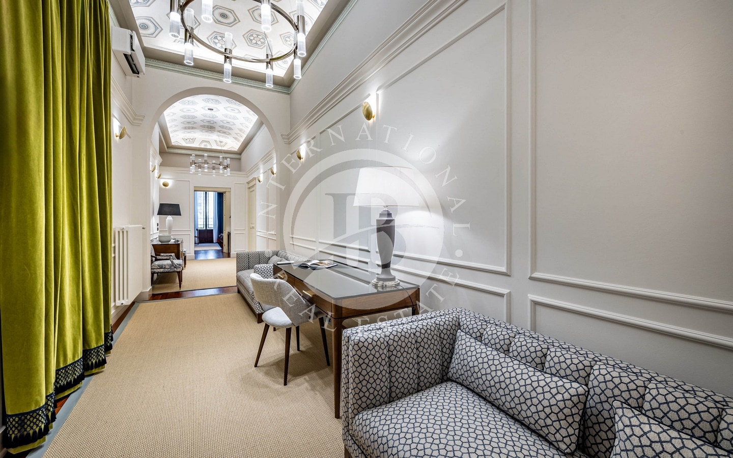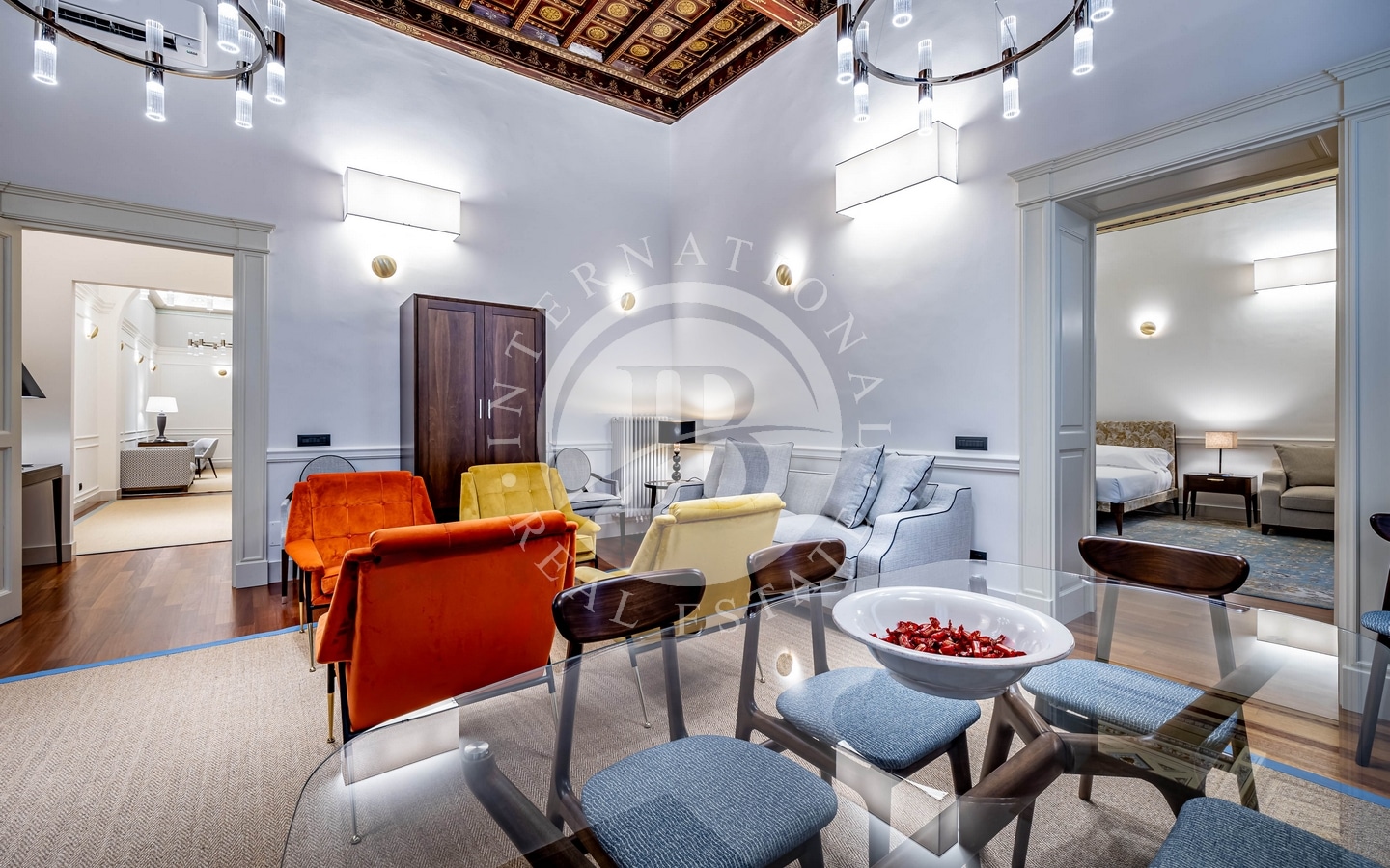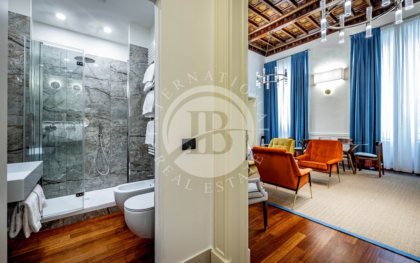 Gli interni di questo appartamento di lusso sono un raffinato equilibrio tra tradizione e innovazione. Il salone con soffitti a cassettoni è un omaggio alla grandezza storica di Firenze e offre spazi ampi e luminosi per accogliere ospiti con stile. Le due camere da letto, ognuna arredata con eleganza e materiali pregiati, garantiscono il massimo comfort. Quattro bagni, tra cui uno di servizio, presentano finiture moderne di alta qualità. La cucina attrezzata completa l'offerta, rendendo questo appartamento ideale per chi cerca una residenza di prestigio nel cuore della città.