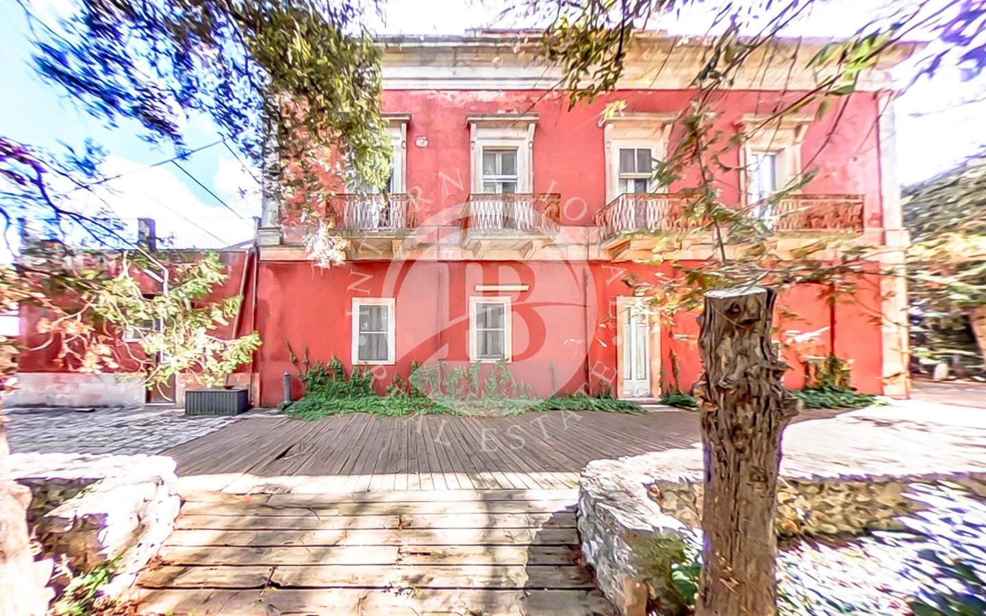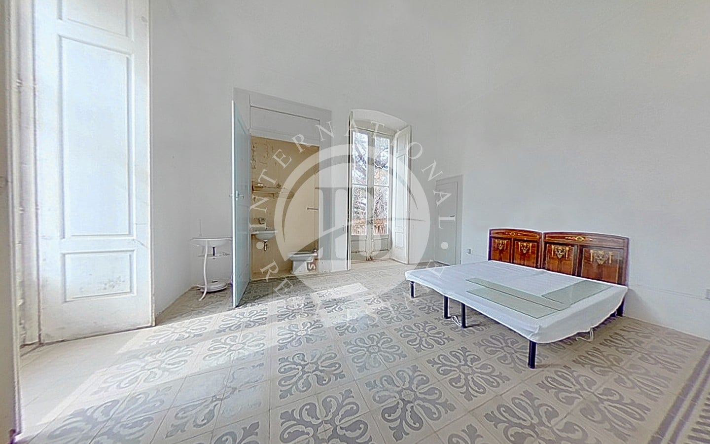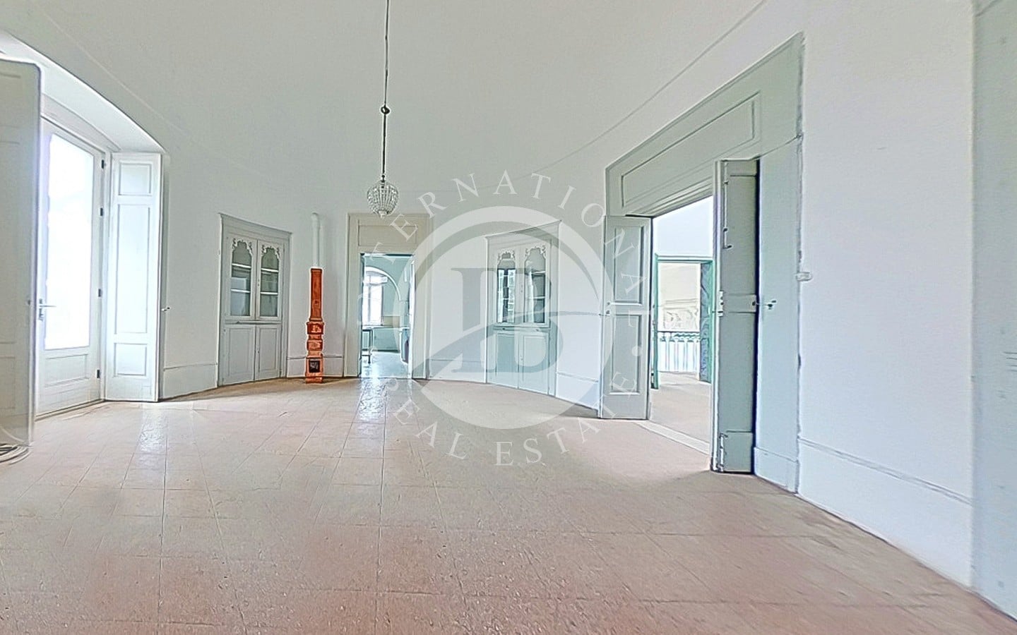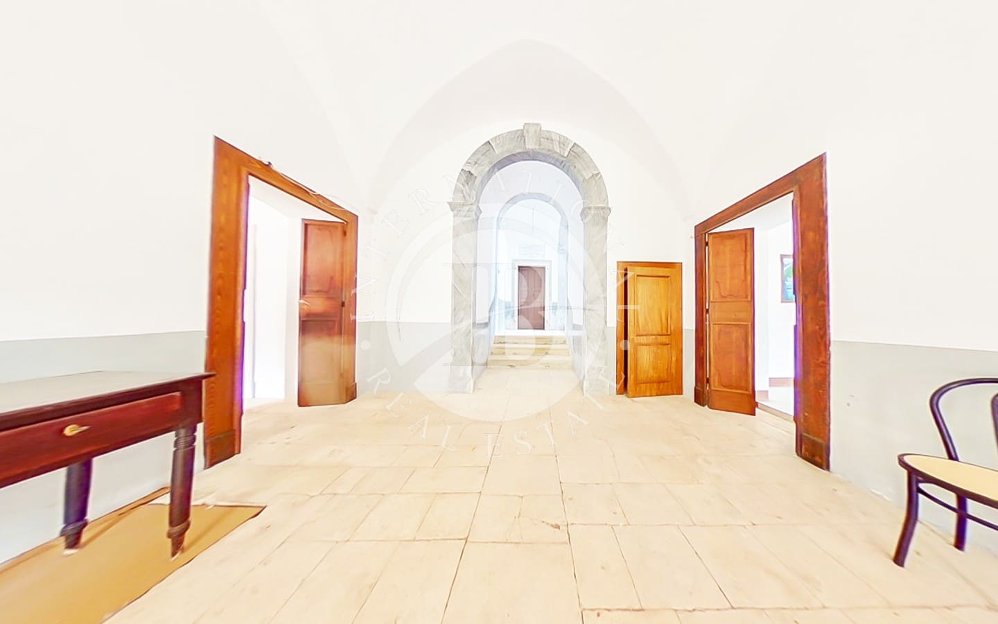 Al piano primo si accede a un ampio disimpegno che collega il salone e il soggiorno, dai quali si diramano sei camere da letto con affacci diretti sul parco attraverso finestre, balconi o terrazze private. Gli interni della villa sono caratterizzati da pregiati pavimenti in graniglia con inserti di polvere rosa e pietra, che conferiscono all’ambiente un’eleganza senza tempo.