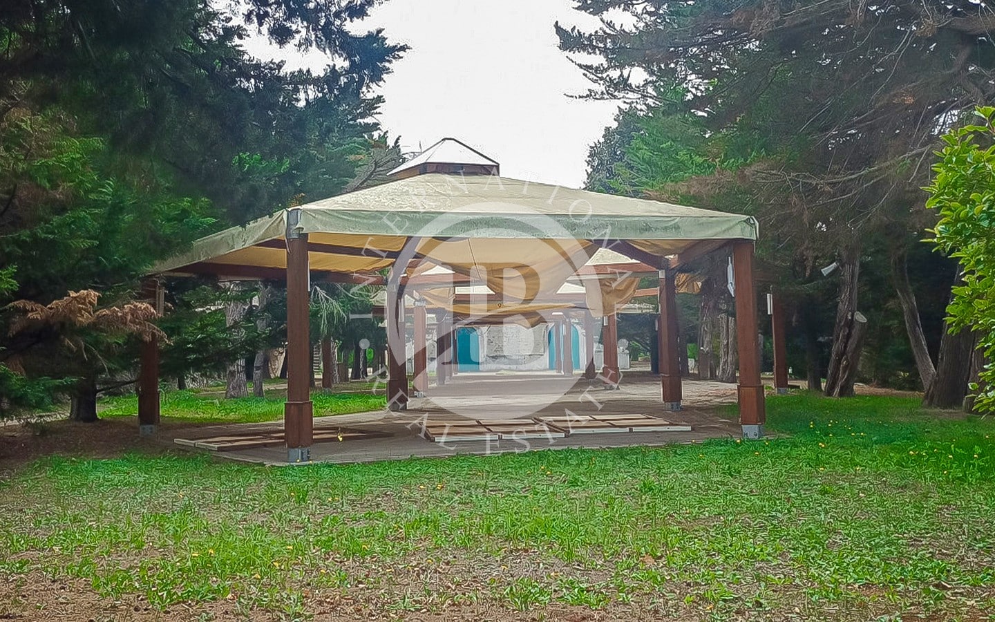 Di particolare pregio è la cinta muraria in pietra a secco, decorata con balconcini in ferro battuto e frammenti di scoglio, che conferiscono alla proprietà un ulteriore elemento di fascino e unicità.