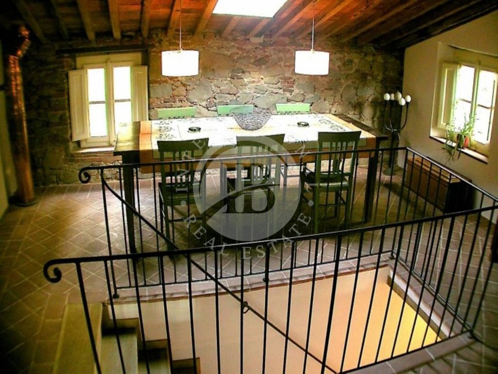 La ristrutturazione è stata effettuata con estremo gusto e ricerca nei dettagli quali travi di castagno e pavimenti in cotto antico fatto a mano e naturalmente con il recupero dell’intera facciata in pietra vista. Il corpo di fabbrica, sviluppato su tre livelli principali, risulta a cavallo del grande arco di sostegno del ponte, al di sotto del quale scorre il piccolo torrente.