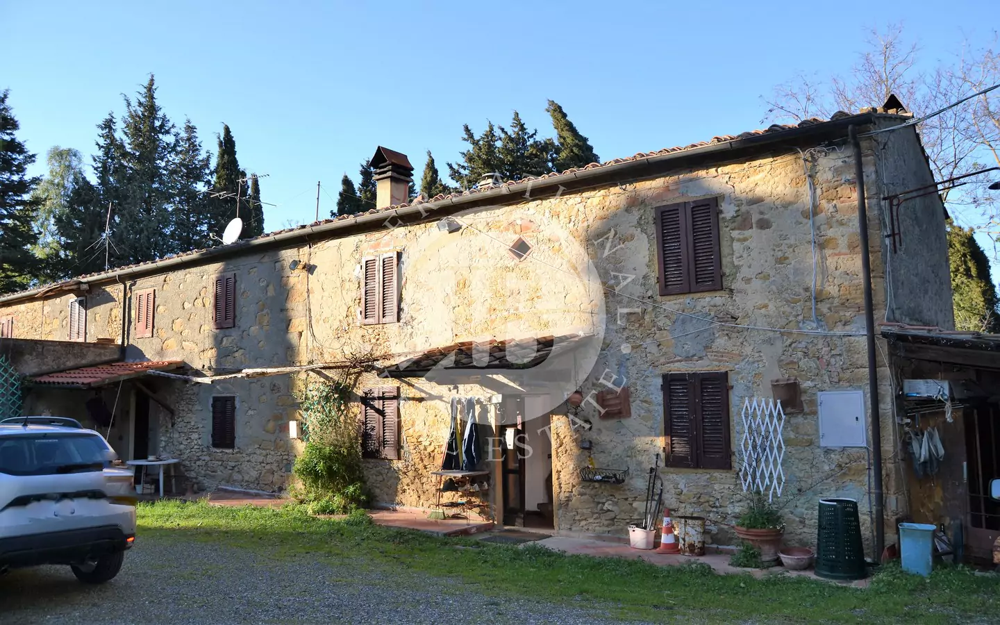 Il terreno circostante, di circa 33.000 mq, è suddiviso tra seminativo, bosco e un curato uliveto, offrendo uno splendido contesto naturale e grandi potenzialità per attività agricole, agriturismo o semplicemente per vivere la campagna toscana in tutta la sua autenticità.
