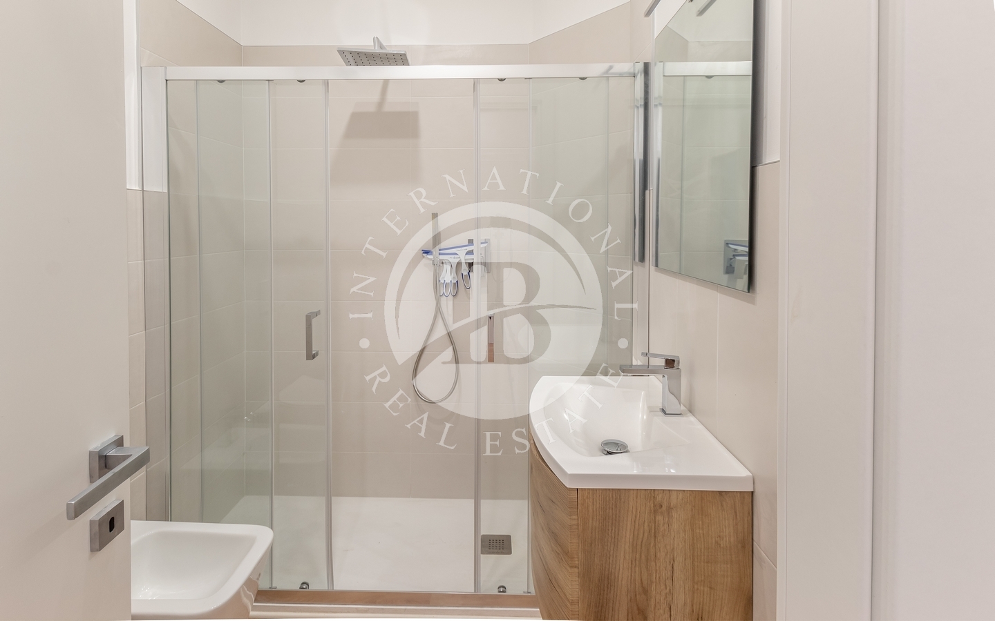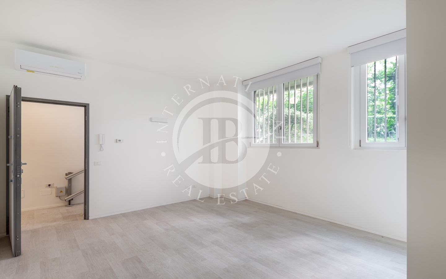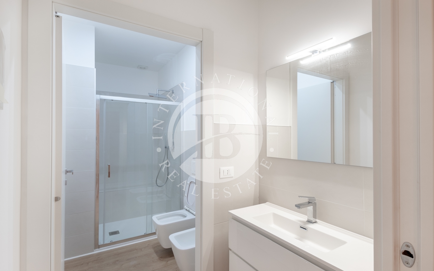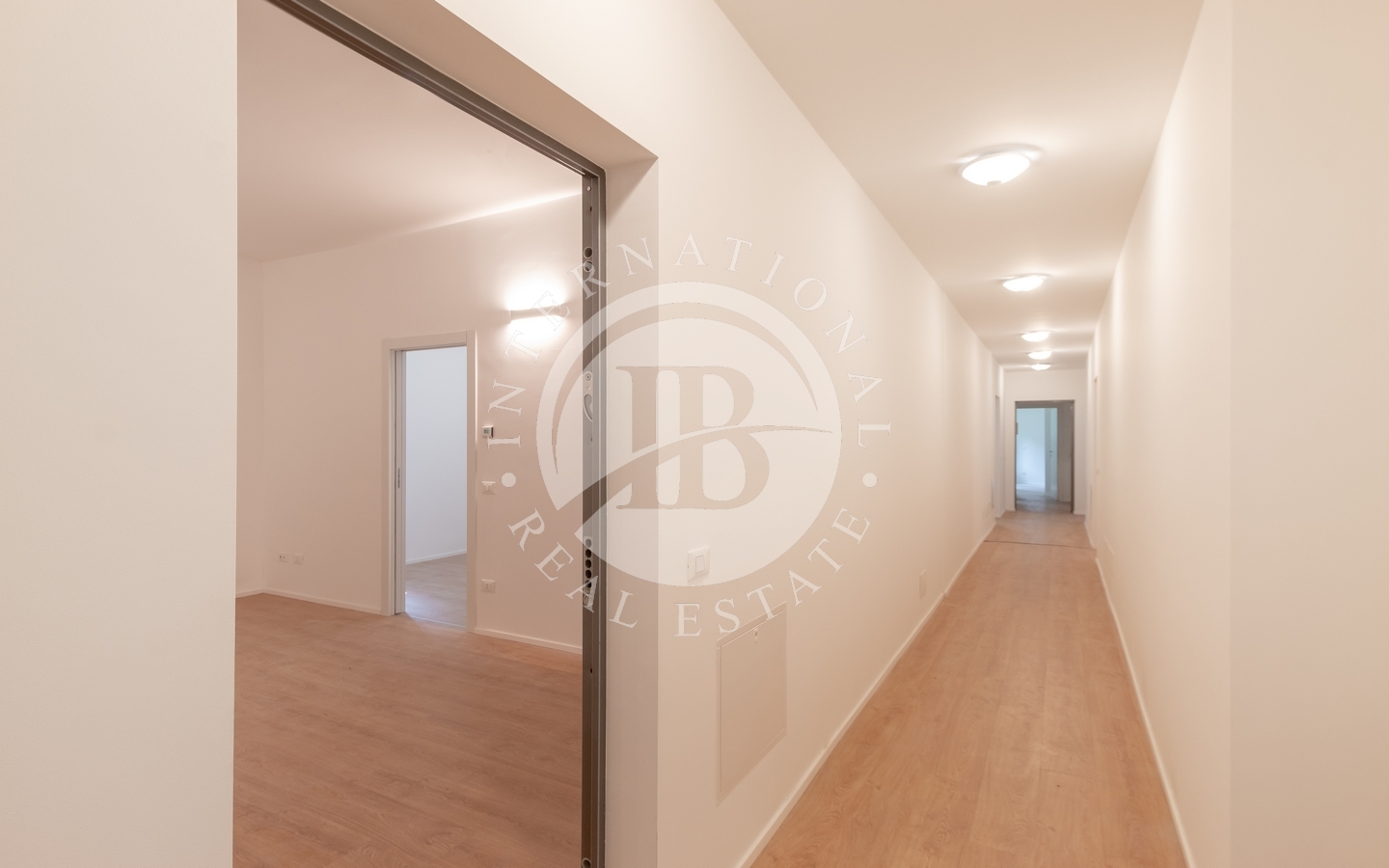 Il piano seminterrato, completamente ristrutturato, ospita 18 unità abitative tra monolocali, bilocali e trilocali, con superfici da 40 a 60 mq. Ogni appartamento dispone di arredi nuovi, cucine firmate “Veneta Cucine” con elettrodomestici completi, e bagni rivestiti in gres porcellanato con profili in alluminio. Il riscaldamento è centralizzato di nuova generazione, a serpentina sotto pavimento, con collettore e termostato autonomo per ciascuna unità. Il condizionamento è autonomo a pompa di calore, con unità interne ed esterne già installate. Ampie finestre garantiscono un’ottima illuminazione naturale, valorizzando la qualità degli spazi.