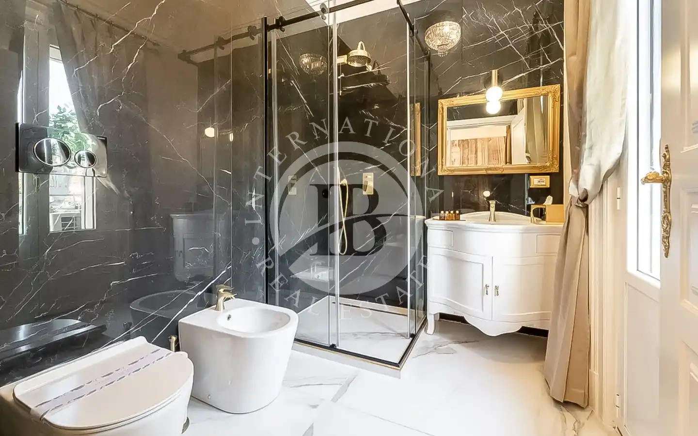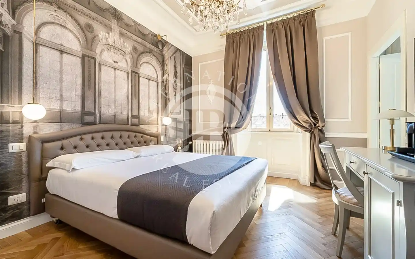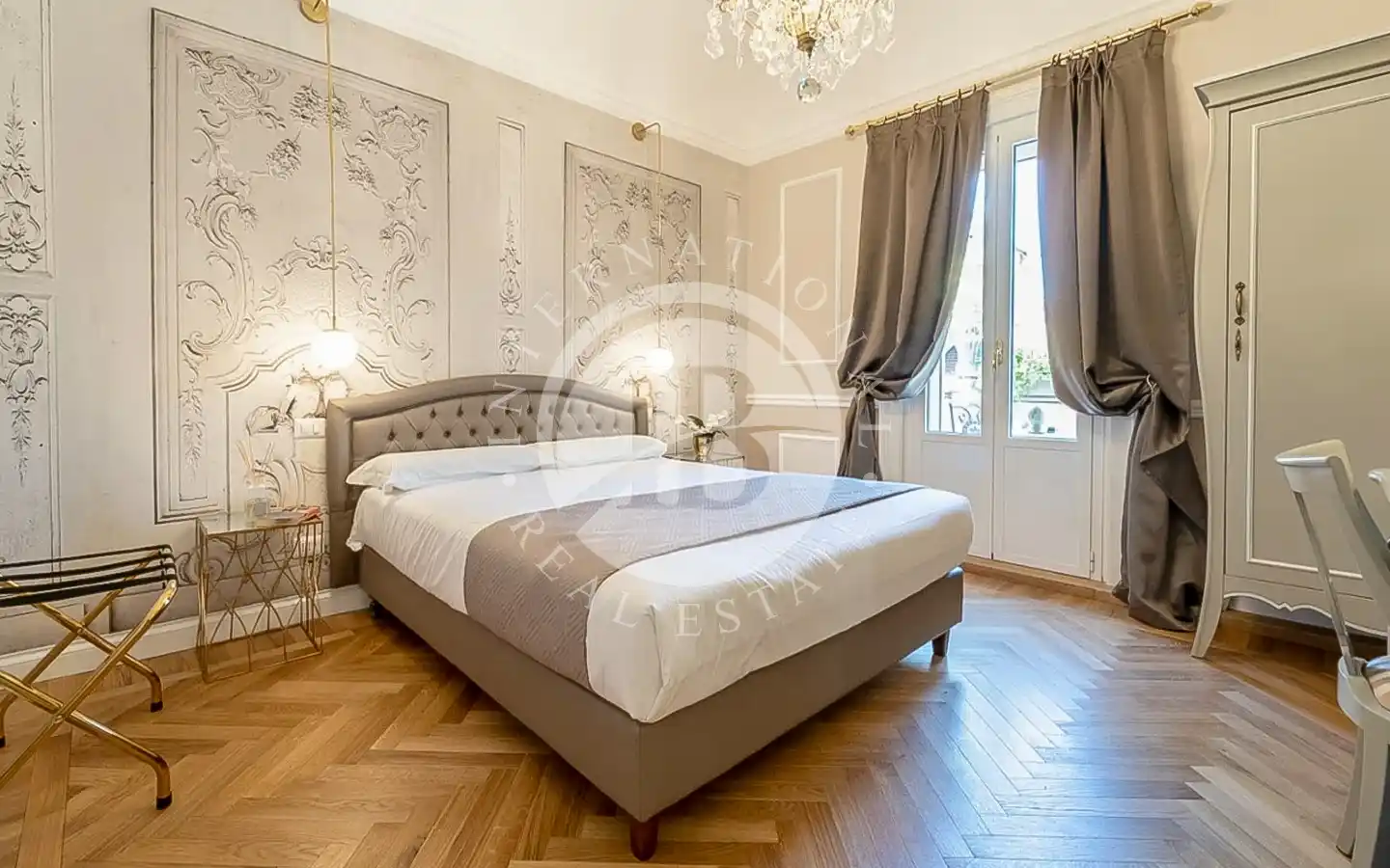 L’appartamento, di circa 220 mq complessivi, si distingue per finiture di pregio e un’eleganza senza tempo. Attualmente suddiviso in due unità indipendenti, comprende un appartamento padronale di 110 mq e una seconda unità di 109 mq adibita a B&B di charme. La residenza principale accoglie ambienti luminosi impreziositi da parquet in rovere a spina di pesce, dettagli in marmo naturale, stucchi restaurati e carte da parati di design. La zona giorno, con cucina su misura, invita alla convivialità, mentre la zona notte offre due suite, tra cui una camera padronale con cabina armadio e bagno rivestito in tre diversi marmi. La seconda unità ospita tre suite con bagno privato, reception e lavanderia, ideali per un’attività ricettiva di alto livello.