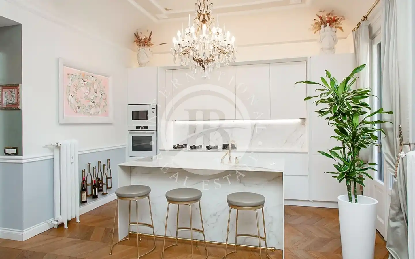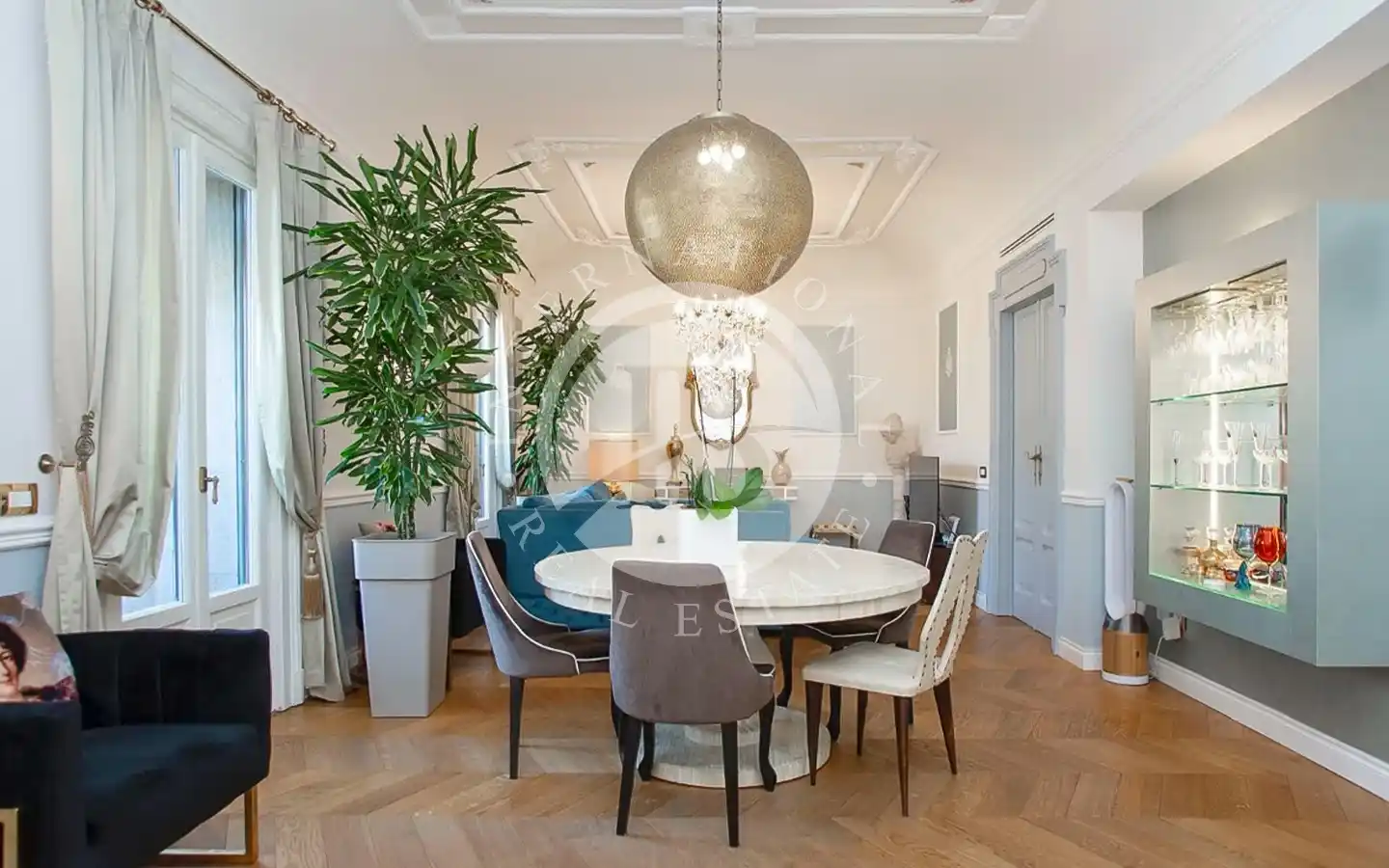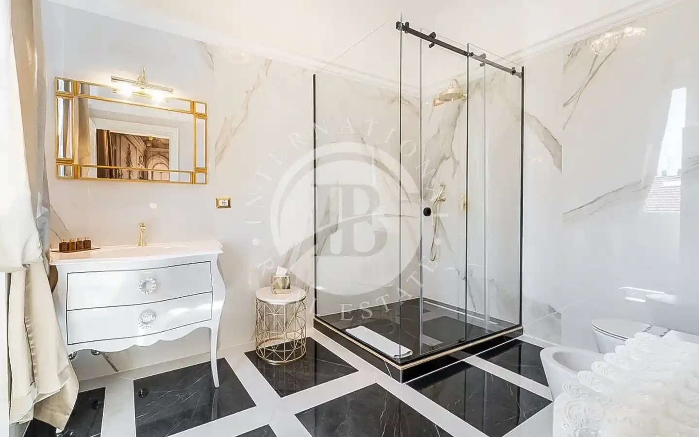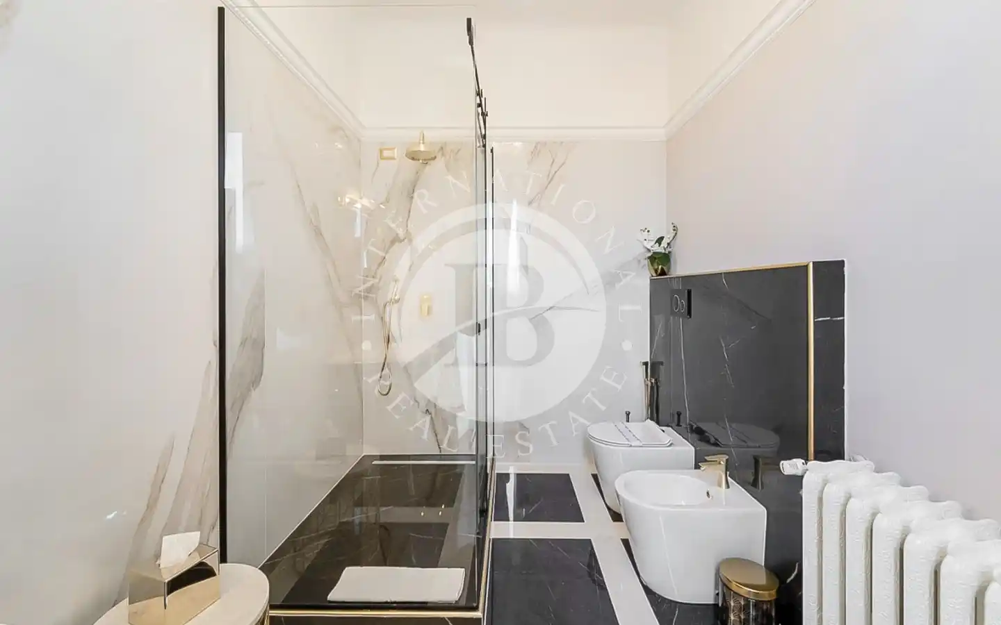 L’appartamento, di circa 220 mq complessivi, si distingue per finiture di pregio e un’eleganza senza tempo. Attualmente suddiviso in due unità indipendenti, comprende un appartamento padronale di 110 mq e una seconda unità di 109 mq adibita a B&B di charme. La residenza principale accoglie ambienti luminosi impreziositi da parquet in rovere a spina di pesce, dettagli in marmo naturale, stucchi restaurati e carte da parati di design. La zona giorno, con cucina su misura, invita alla convivialità, mentre la zona notte offre due suite, tra cui una camera padronale con cabina armadio e bagno rivestito in tre diversi marmi. La seconda unità ospita tre suite con bagno privato, reception e lavanderia, ideali per un’attività ricettiva di alto livello.