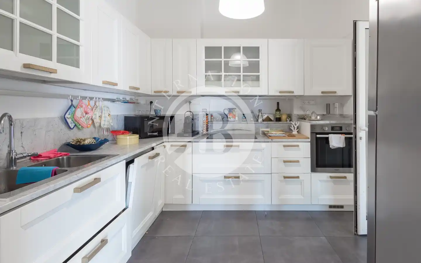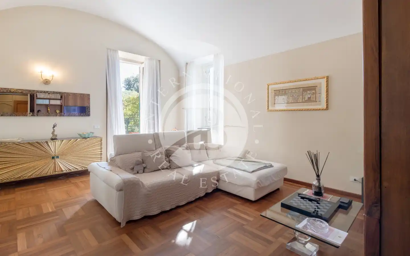 L’abitazione, completamente ristrutturata e disposta su due livelli, offre ambienti raffinati, ricchi di dettagli architettonici originali e materiali di pregio.