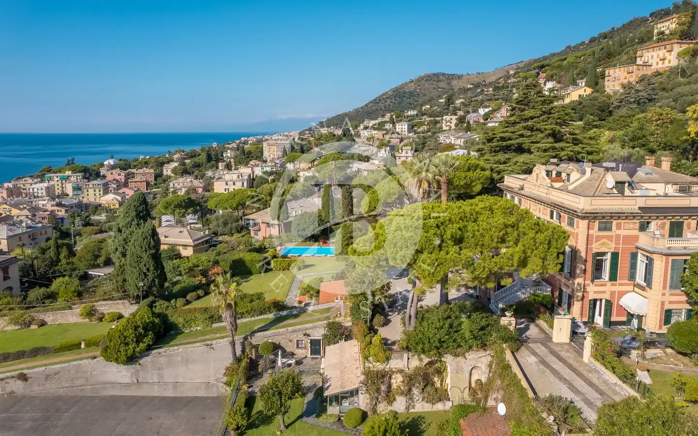 Nel cuore del Golfo Paradiso, a Genova Nervi a soli 20 km da Portofino e 10 km da Camogli, si trova questo splendido appartamento inserito in una storica villa ligure circondata da bellissimi giardini e un parco privato di quasi un ettaro. Con vista mare mozzafiato, piscina riscaldata panoramica e ingresso indipendente, questa residenza unisce fascino d’epoca e comfort contemporaneo in uno dei luoghi più esclusivi della Riviera.