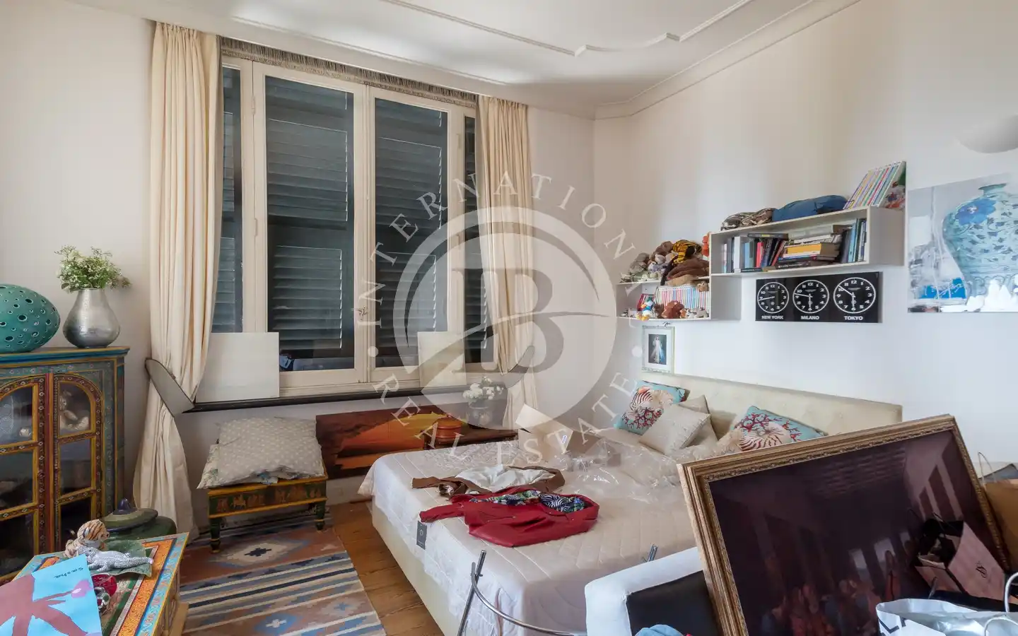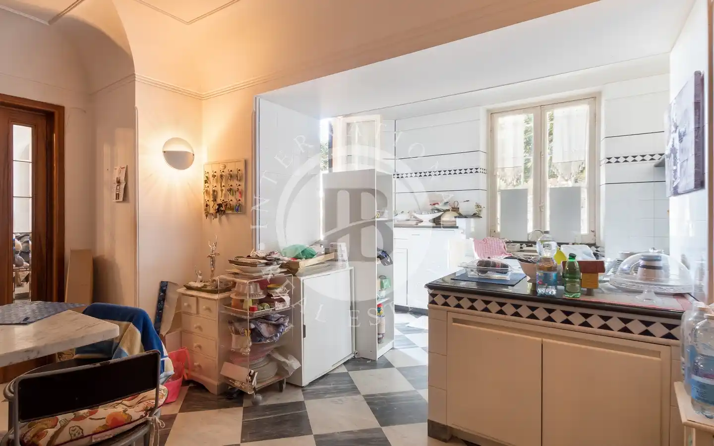 L’abitazione, disposta su due livelli, offre ambienti raffinati, ricchi di dettagli architettonici originali e materiali di pregio.