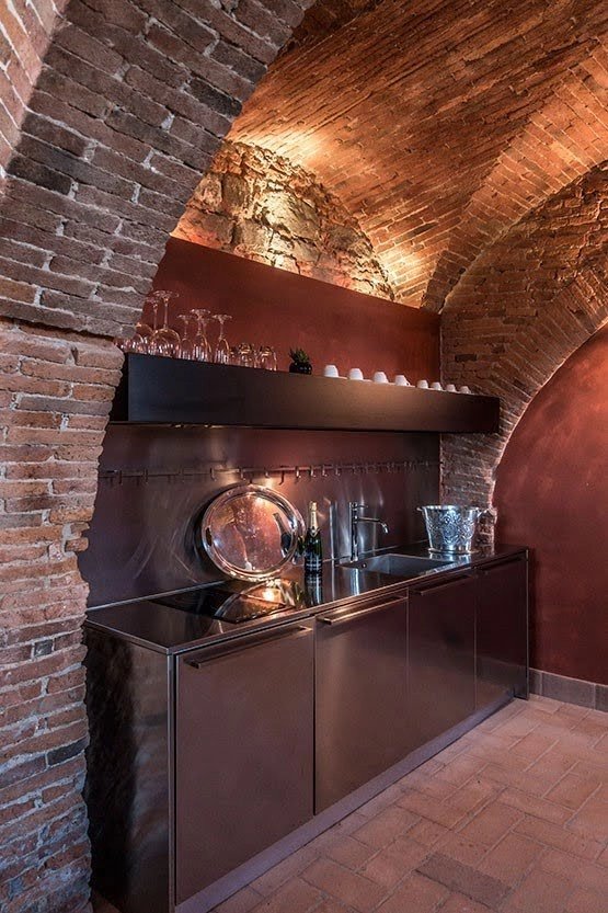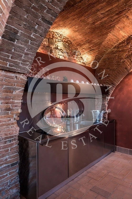L’appartamento è situato al piano terra della Villa, con accesso indipendente, caratterizzato dallo stile caldo delle antiche volte in mattoni originali, realizzato nelle antiche cantine della Villa Padronale.