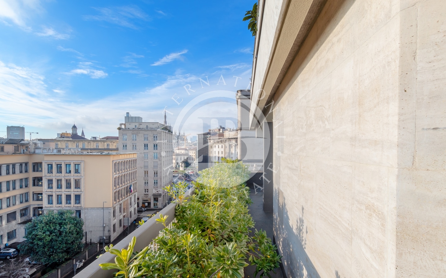 Uno dei punti di forza è la splendida terrazza che circonda l’intero appartamento, con una vista diretta sul Duomo e uno spazio ideale per pranzi all’aperto o momenti di relax. Completano la proprietà una doppia cantina.
