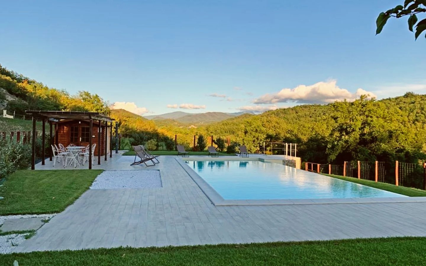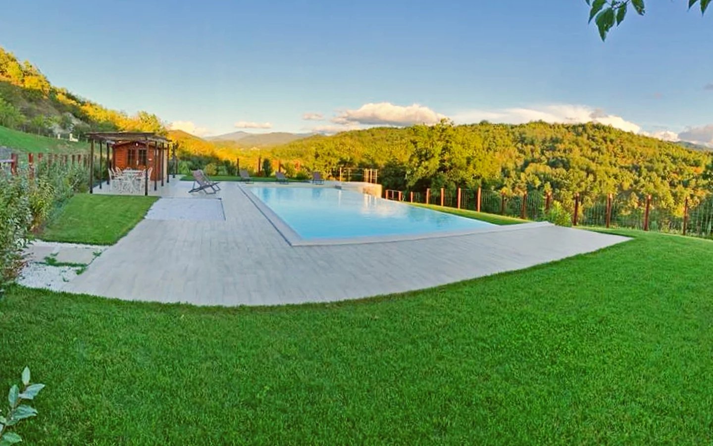 La vista è splendida grazie alla posizione dominante quasi alla sommità di un’aperta valle.
