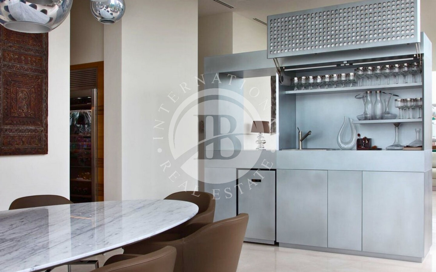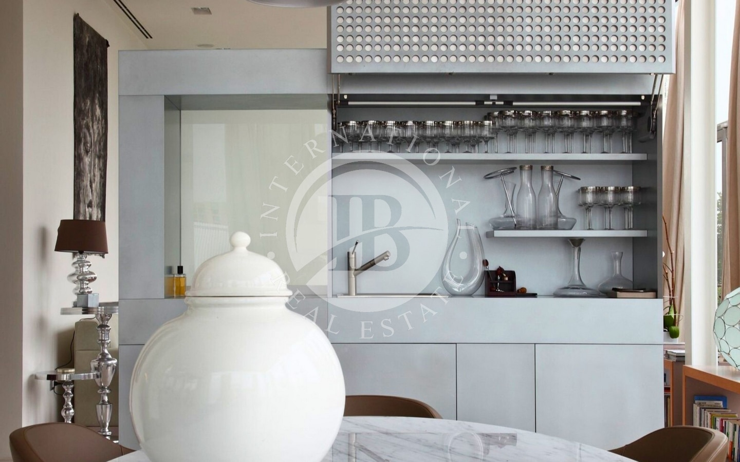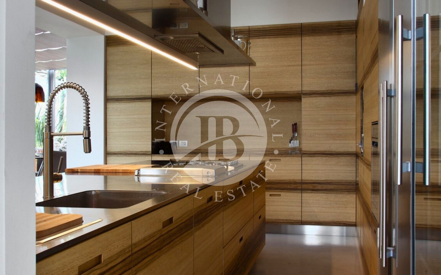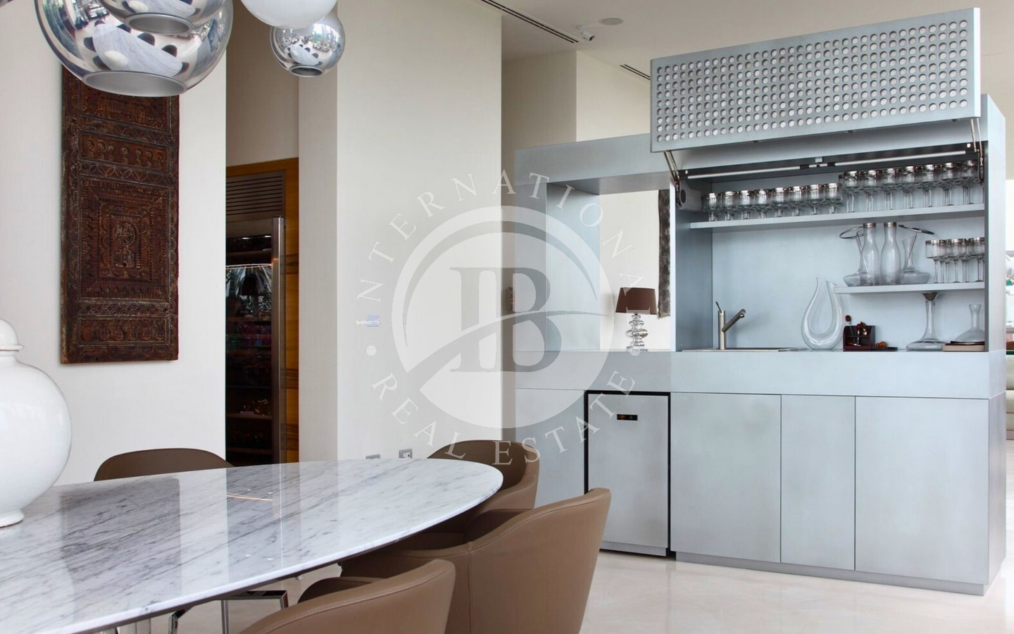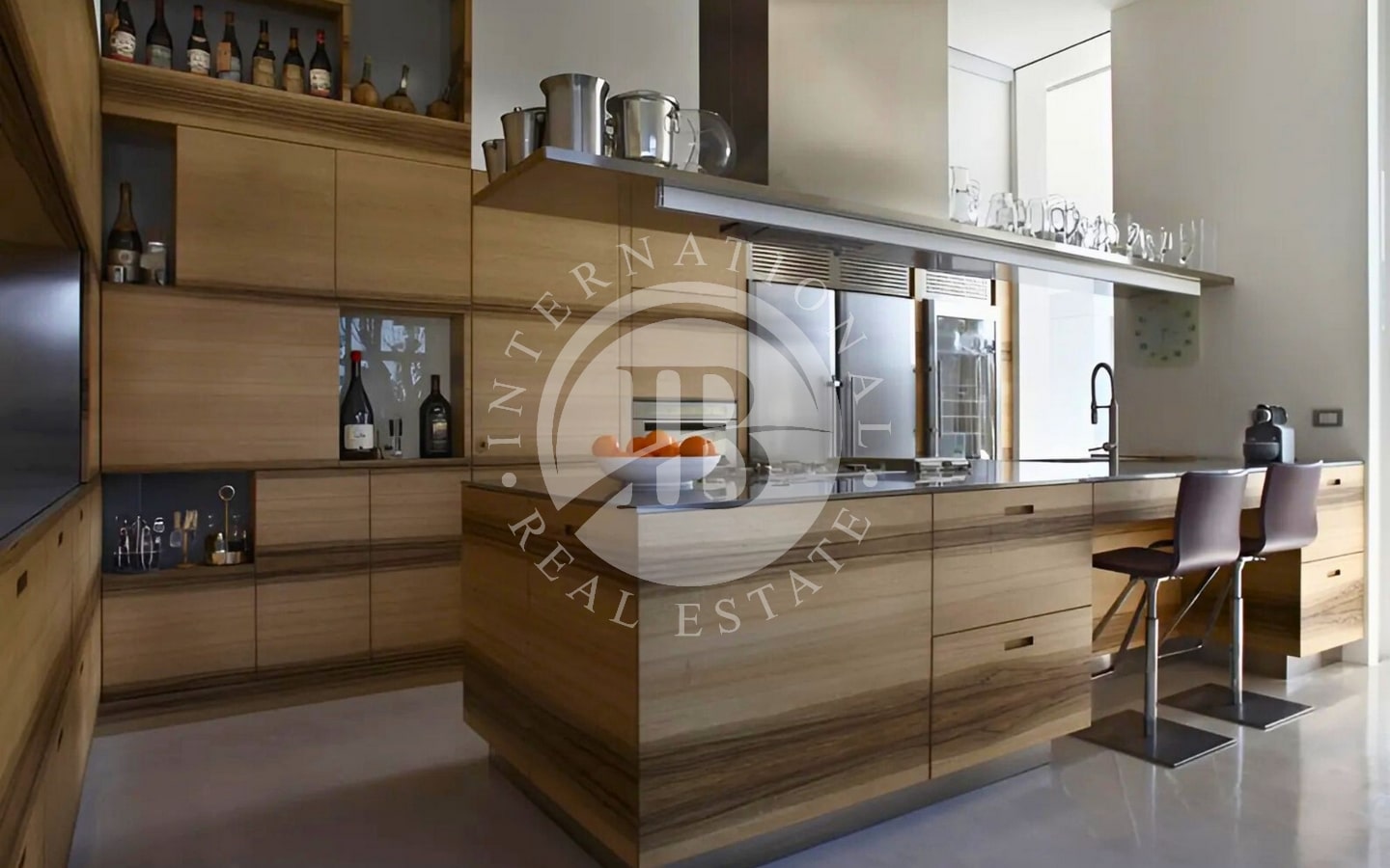 L’abitazione si sviluppa su una superficie di 320 mq interni, circondata da 250 mq di terrazze che abbracciano tre lati della casa. Varcando l’ingresso, si accede a un’ampia zona living:le ampie vetrate a tutta altezza permettono alla luce naturale di inondare lo spazio e creano una continuità visiva con l’esterno. L’area giorno è articolata in tre zone distinte: un confortevole soggiorno, una sala da pranzo e una raffinata area dedicata al biliardo. Da qui si accede a una splendida terrazza, dove un accogliente patio ospita un salotto all’aperto, una zona pranzo perfetta per ricevimenti e una vasca idromassaggio.
