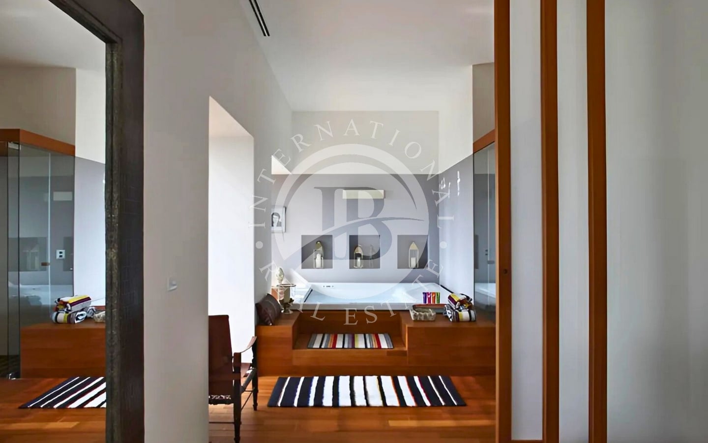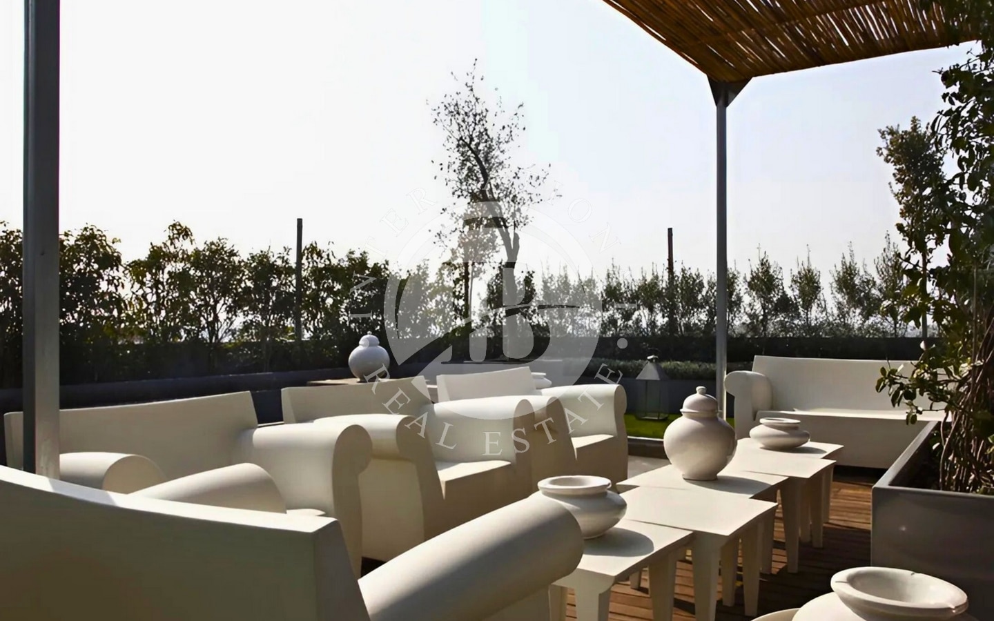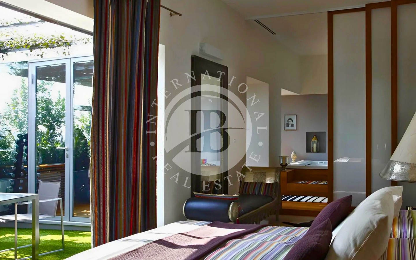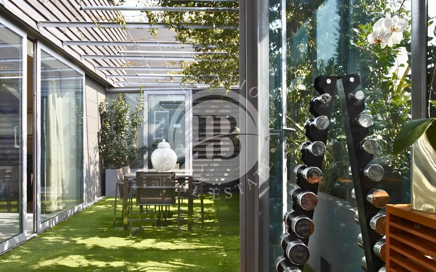 Adiacente all’area biliardo, si trova un’esclusiva zona benessere che include una palestra attrezzata, una spaziosa vasca idromassaggio interna e una doccia. Da qui si entra nella suite padronale, un ambiente raffinato e riservato che comprende una cabina armadio, due bagni privati e un bagno turco. La camera si affaccia su un terrazzo rigogliosamente piantumato, arricchito da un romantico bersò che offre un angolo di tranquillità immerso nel verde.