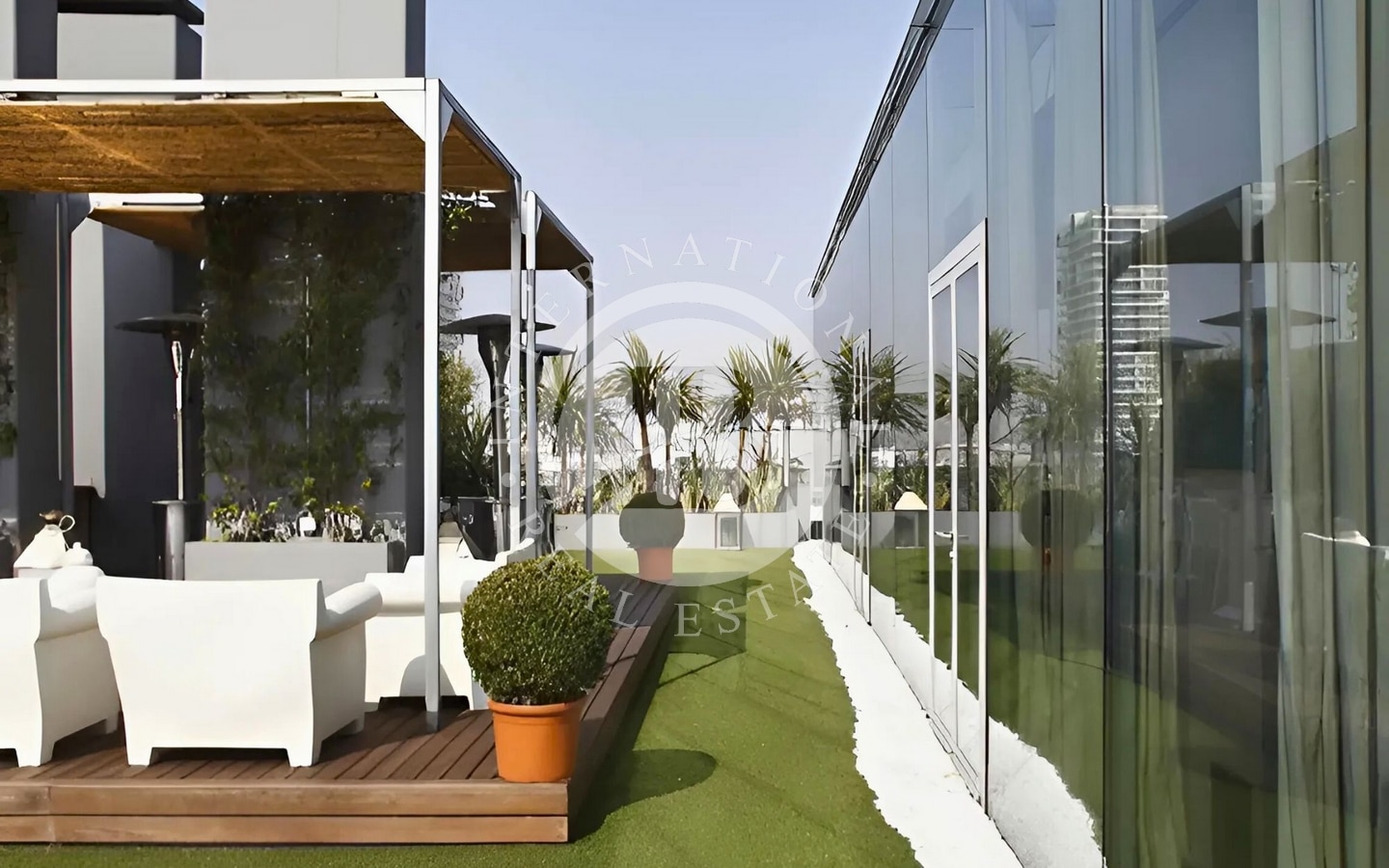 Infine, una scala a chiocciola situata nella zona fitness conduce al piano superiore, dove si trova un solarium panoramico. Da qui è possibile godere di una vista completa sulla città, rendendo questo spazio il luogo perfetto per momenti di relax all’aperto. |