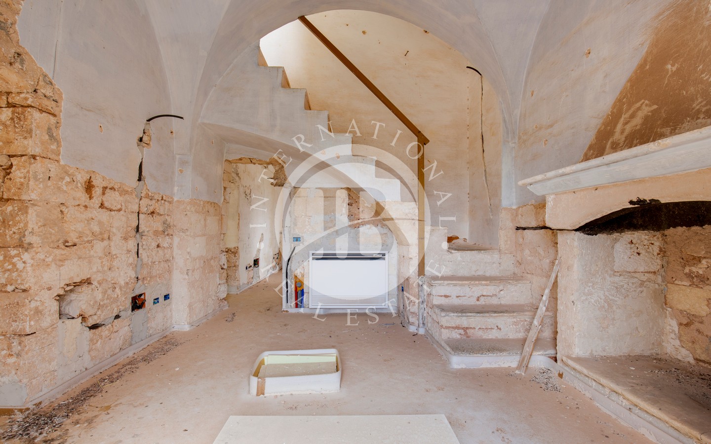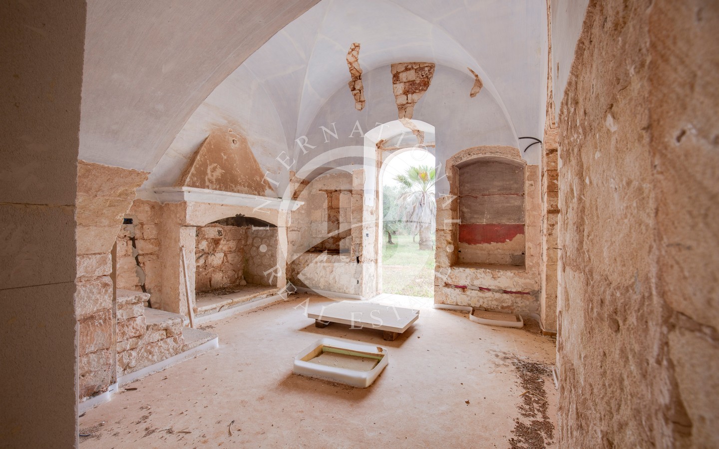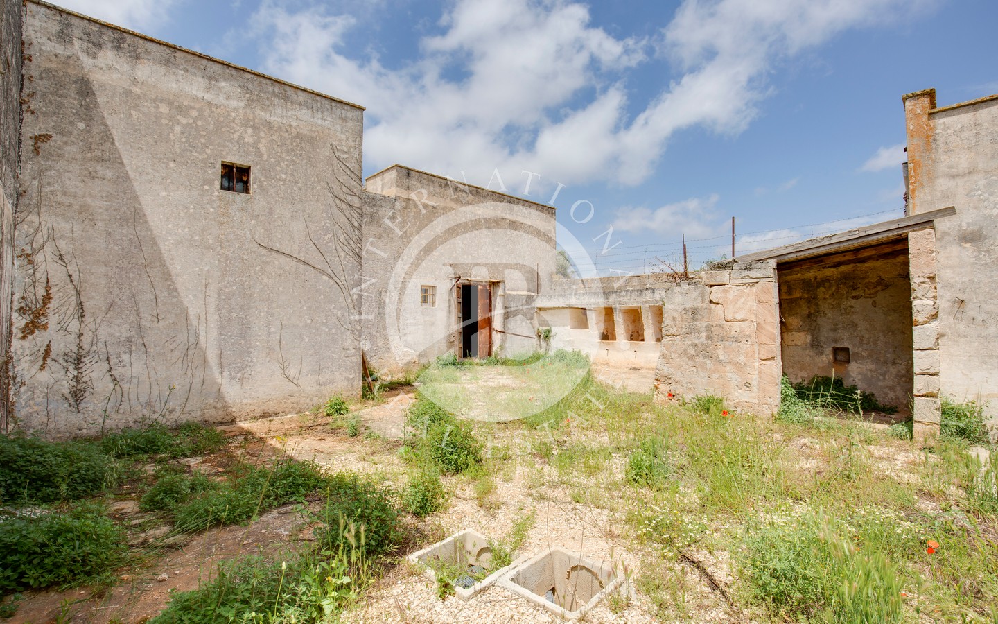 La proprietà si sviluppa su circa 400 mq coperti, suddivisi in 14 vani principali distribuiti attorno a un ampio cortile interno e a un’aia esterna. Completano l’immobile un grande forno a legna indipendente, un locale cisterna e un terreno di circa 40.000 mq, caratterizzato da uliveto, macchia mediterranea, dolina naturale e antiche cisterne per la raccolta d’acqua, il tutto circondato da tradizionali muretti a secco in ottimo stato di conservazione.