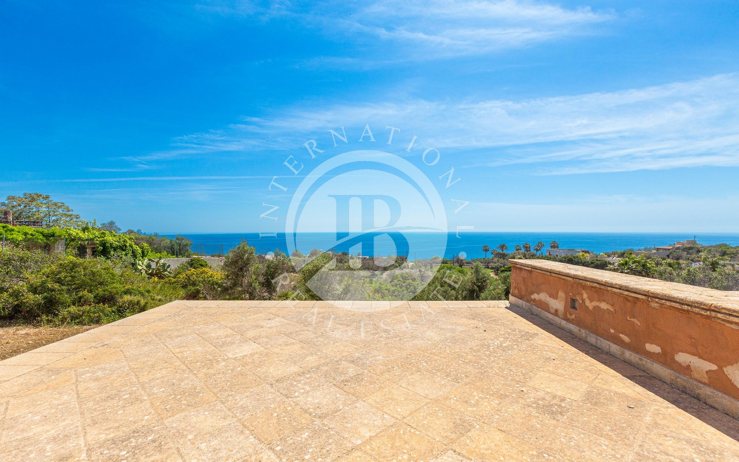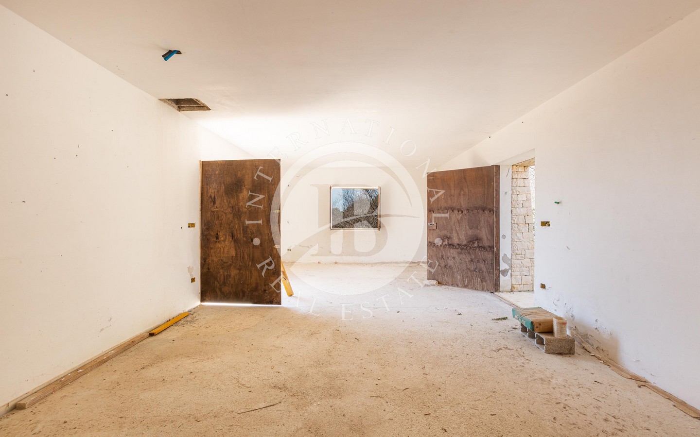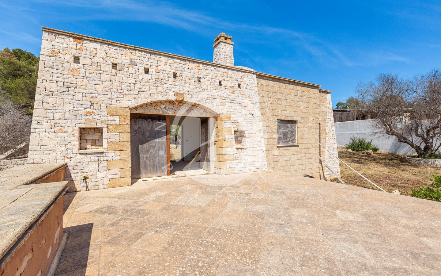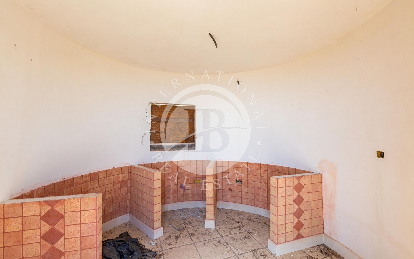 La villa si sviluppa su due livelli, con un design che unisce tradizione e modernità. Al piano superiore, l'ampia zona giorno si apre su un terrazzo con vista mare, comprendendo un luminoso soggiorno, un bagno di servizio, un angolo cucina e uno spazioso living. Le scale interne conducono al piano inferiore, dove si trova la zona notte con una master bedroom dotata di cabina armadio e bagno en suite, una camera doppia, un bagno completo e un'area relax trasformabile in una terza camera da letto. Gli interni, pur essendo in stato rustico avanzato, sono predisposti per un impianto di riscaldamento e raffrescamento a pavimento, garantendo comfort tutto l'anno.