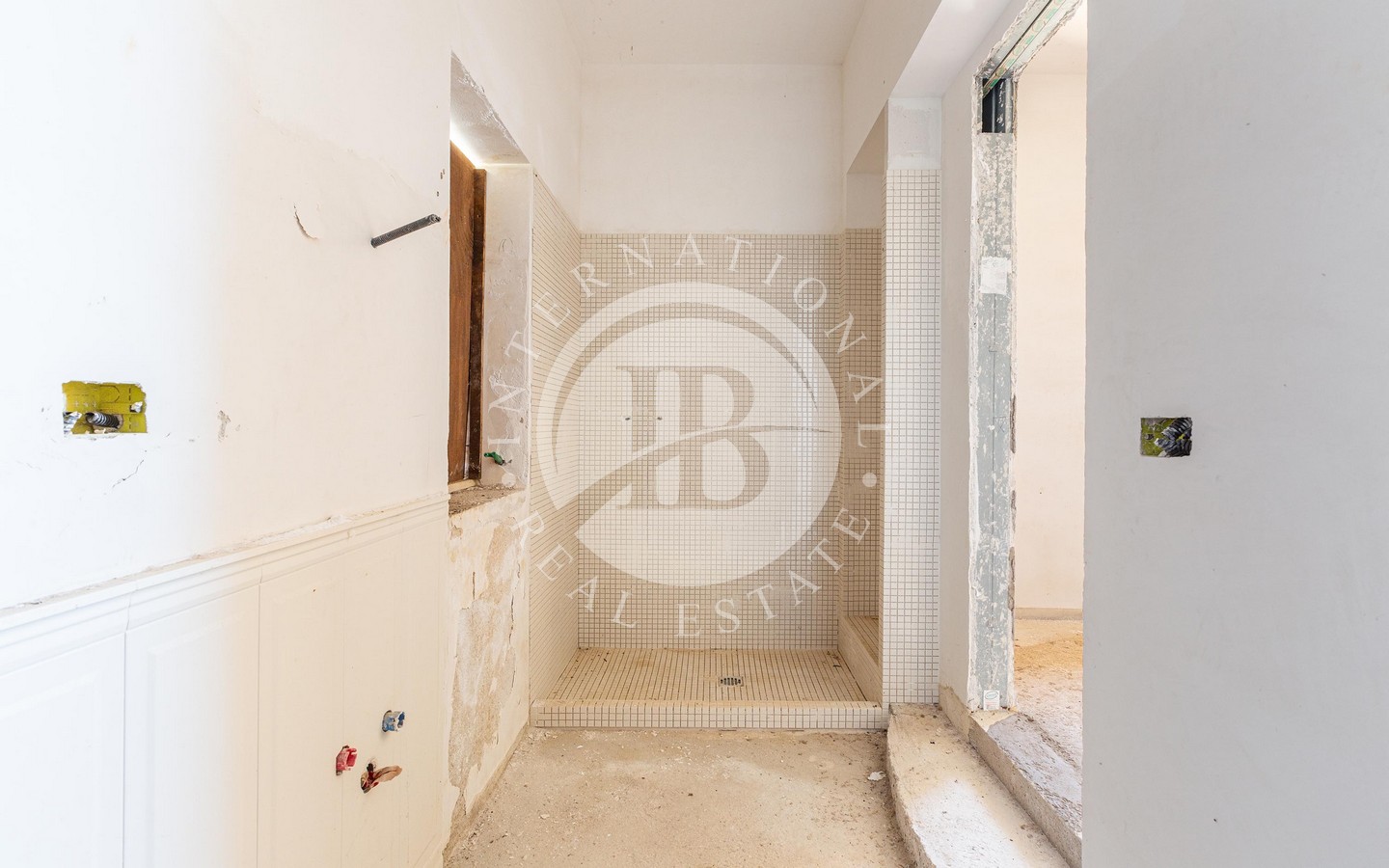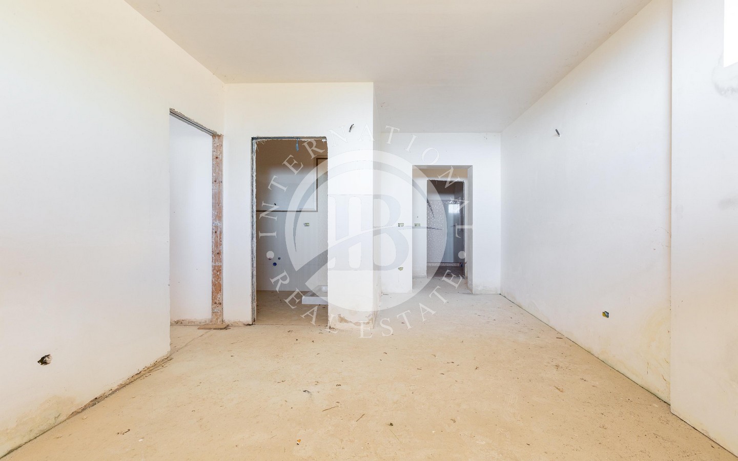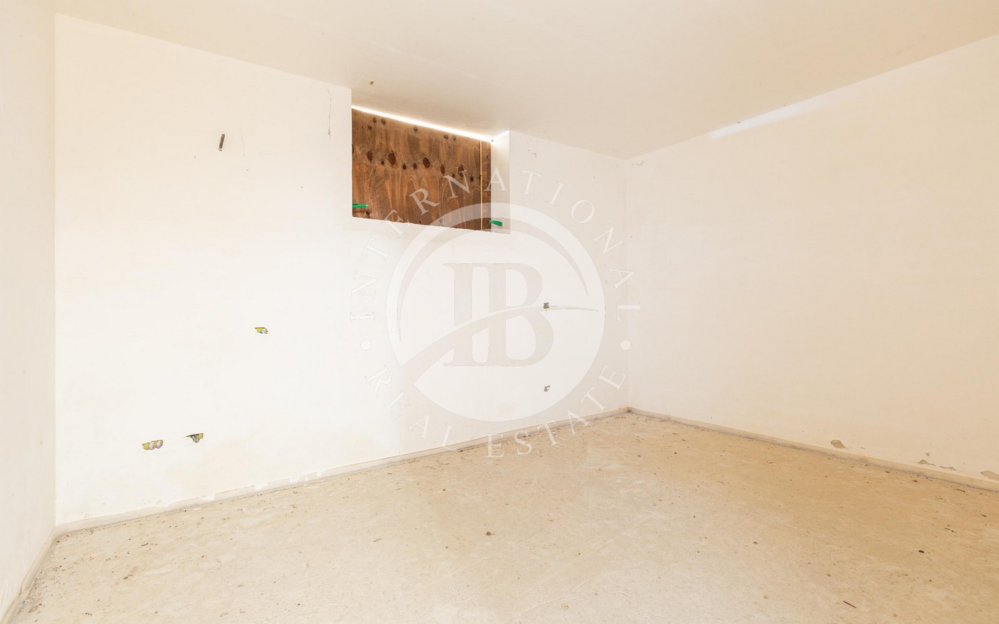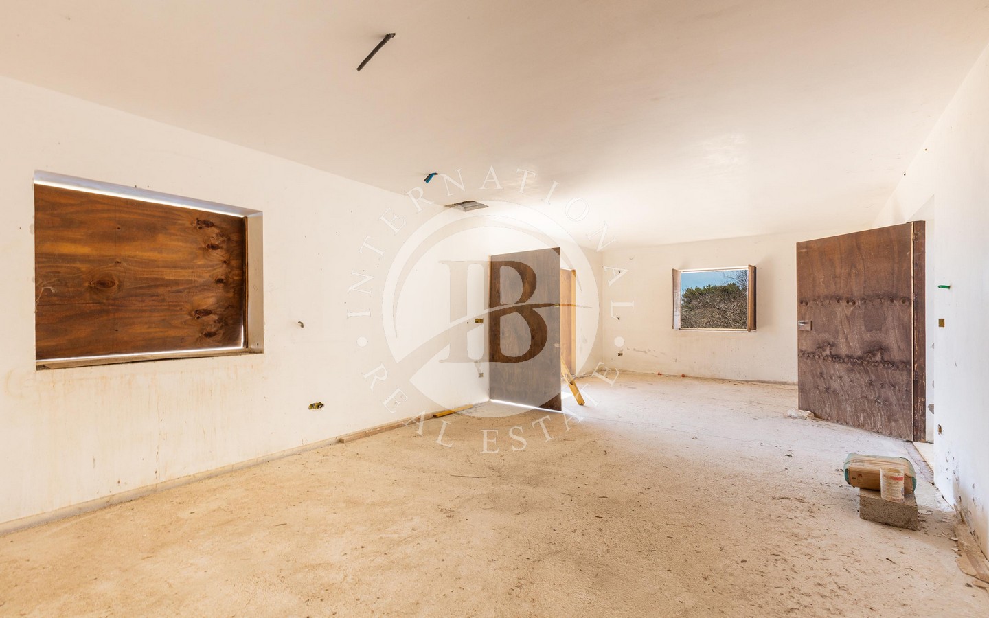 La villa si sviluppa su due livelli, con un design che unisce tradizione e modernità. Al piano superiore, l'ampia zona giorno si apre su un terrazzo con vista mare, comprendendo un luminoso soggiorno, un bagno di servizio, un angolo cucina e uno spazioso living. Le scale interne conducono al piano inferiore, dove si trova la zona notte con una master bedroom dotata di cabina armadio e bagno en suite, una camera doppia, un bagno completo e un'area relax trasformabile in una terza camera da letto. Gli interni, pur essendo in stato rustico avanzato, sono predisposti per un impianto di riscaldamento e raffrescamento a pavimento, garantendo comfort tutto l'anno.