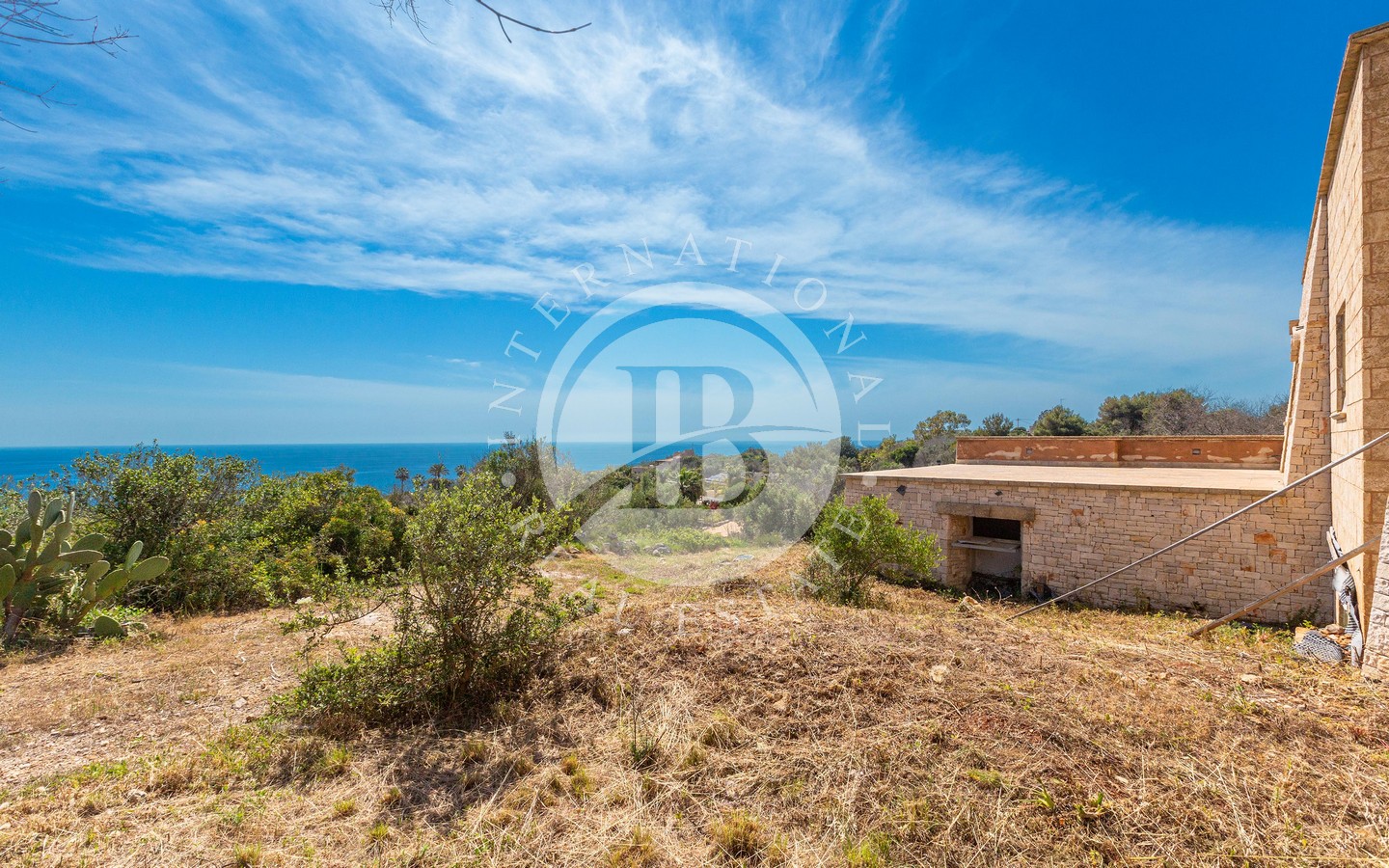 Immersa in un terreno di 1150 mq, la villa è circondata da un giardino mediterraneo con terrazzamenti, muretti in pietra a secco, olivi e piante tipiche. La proprietà include una scala esterna che porta a una terrazza panoramica, ideale per cene all'aperto con vista sul mare. È possibile acquistare ulteriori 1500 mq di terreno antistante, e richiedere autorizzazioni per la costruzione di una piscina. Questo spazio esterno è perfetto per chi cerca un'oasi di tranquillità e relax.