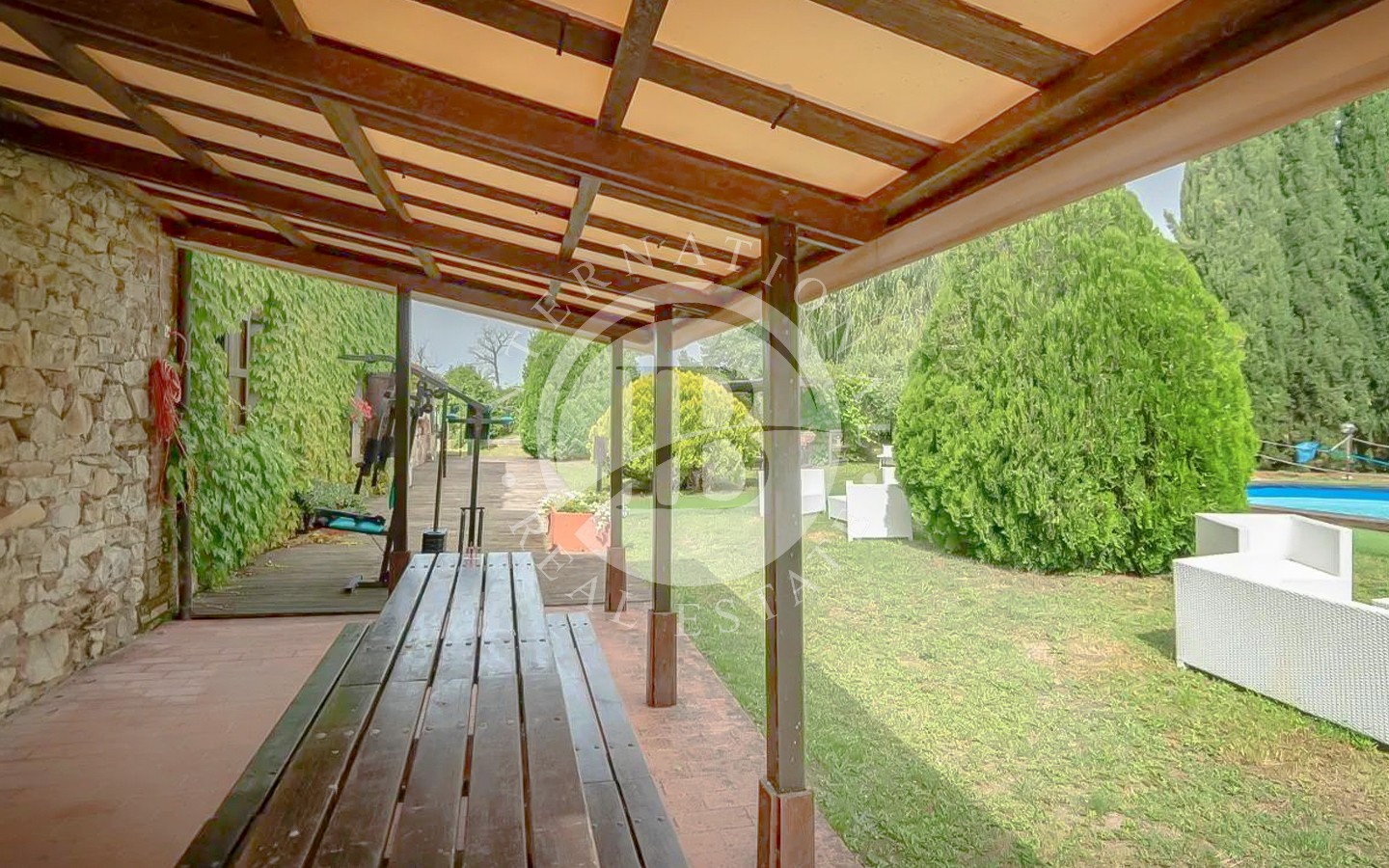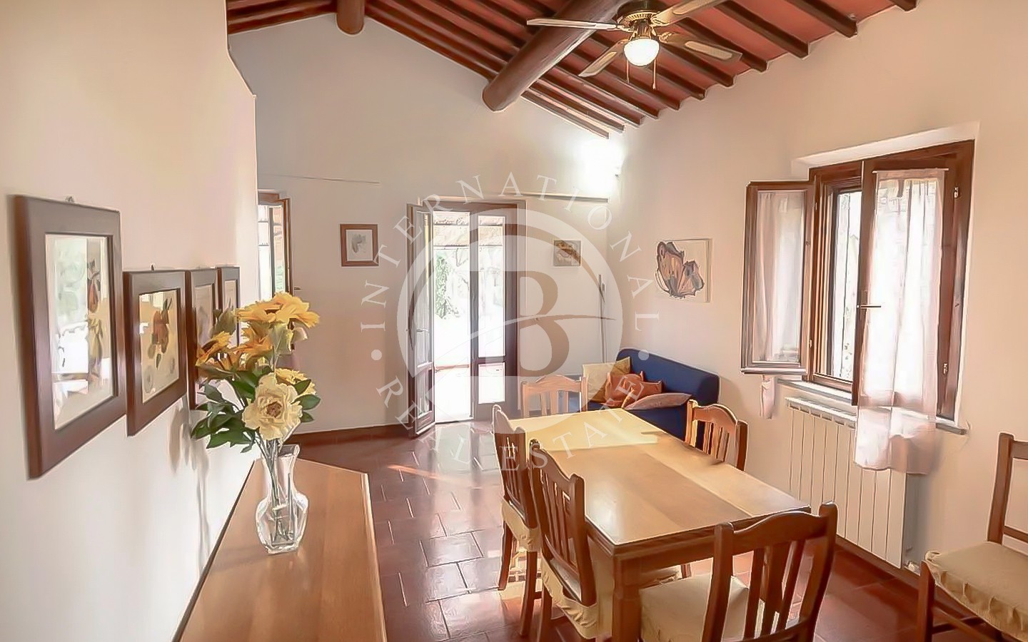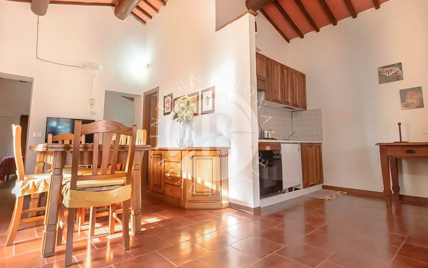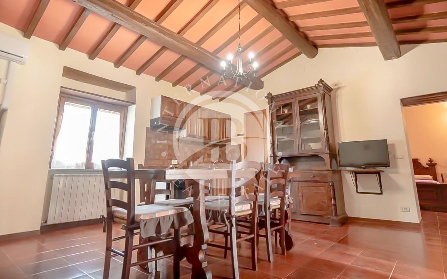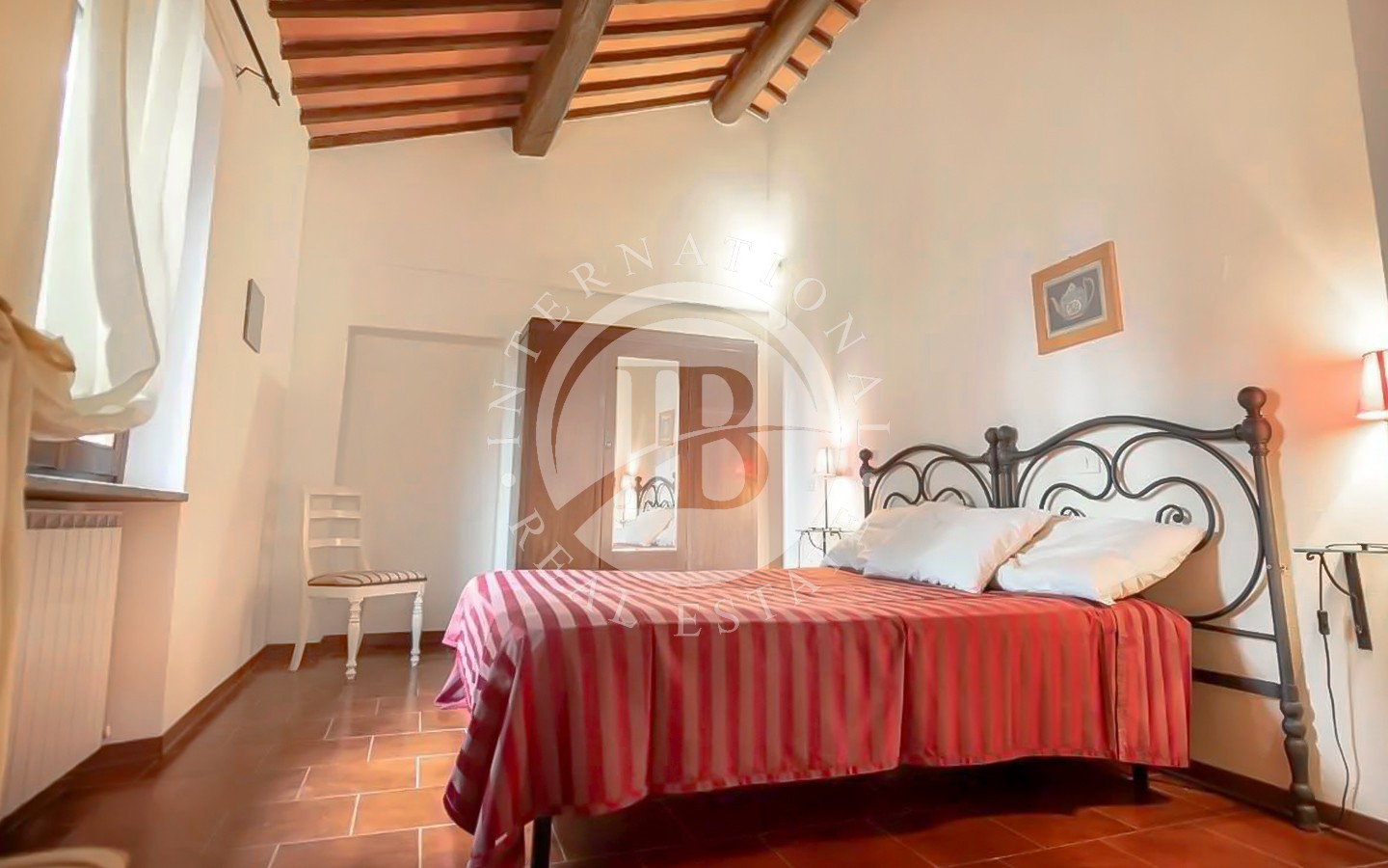 All’interno del casale si trovano spazi ampi e luminosi, con cucine attrezzate, soggiorni accoglienti, camini e camere spaziose. Alcuni appartamenti dispongono di terrazze panoramiche e logge caratteristiche. La proprietà comprende anche una sala comune con piccola cucina e lavastoviglie, una lavanderia con lavatrice, scuderie per cavalli e un ampio giardino attrezzato con tavoli, sedie e ombrelloni. L’area esterna è arricchita da una splendida piscina, un campo da tennis privato e Wi-Fi esterno, oltre a un comodo parcheggio privato.