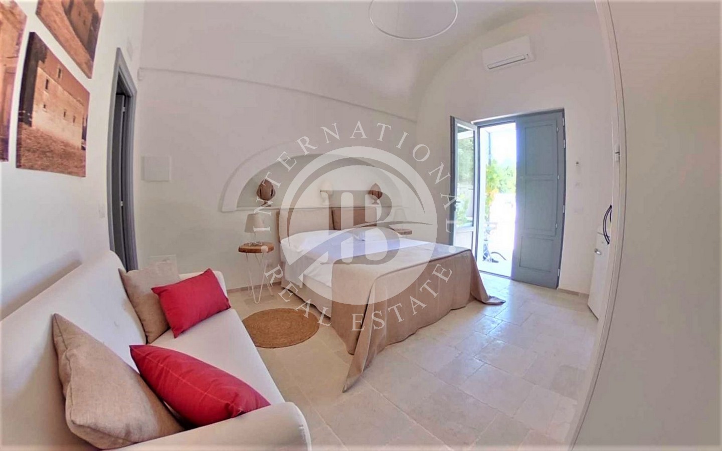 Attualmente suddiviso in 4 suites con bagno. Completano la proprietà una piscina di 70 mq in corso di costruzione con una dependance bivani accessoriata,