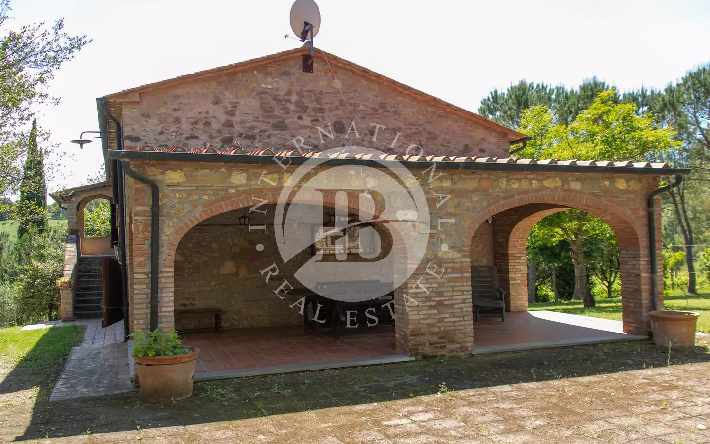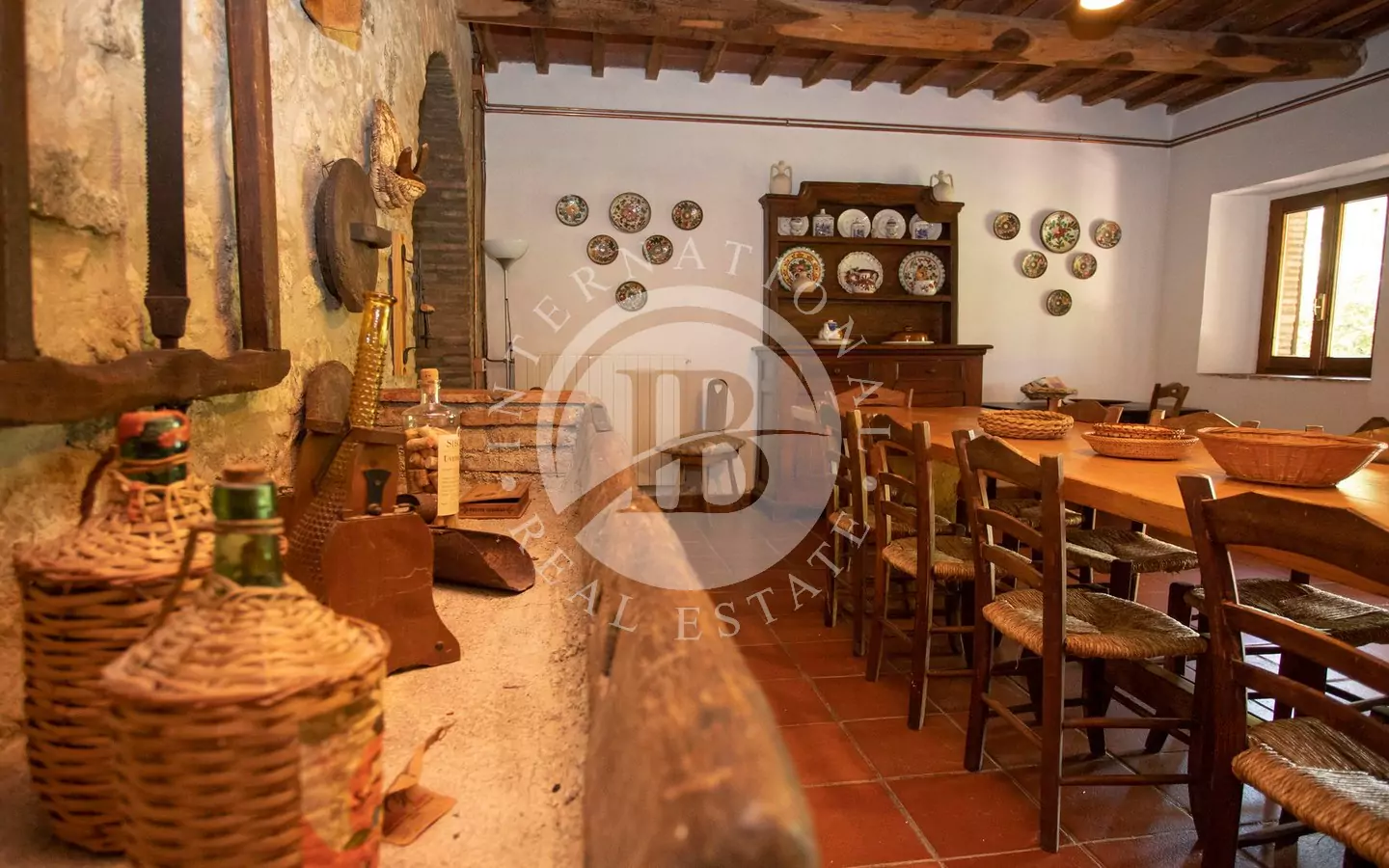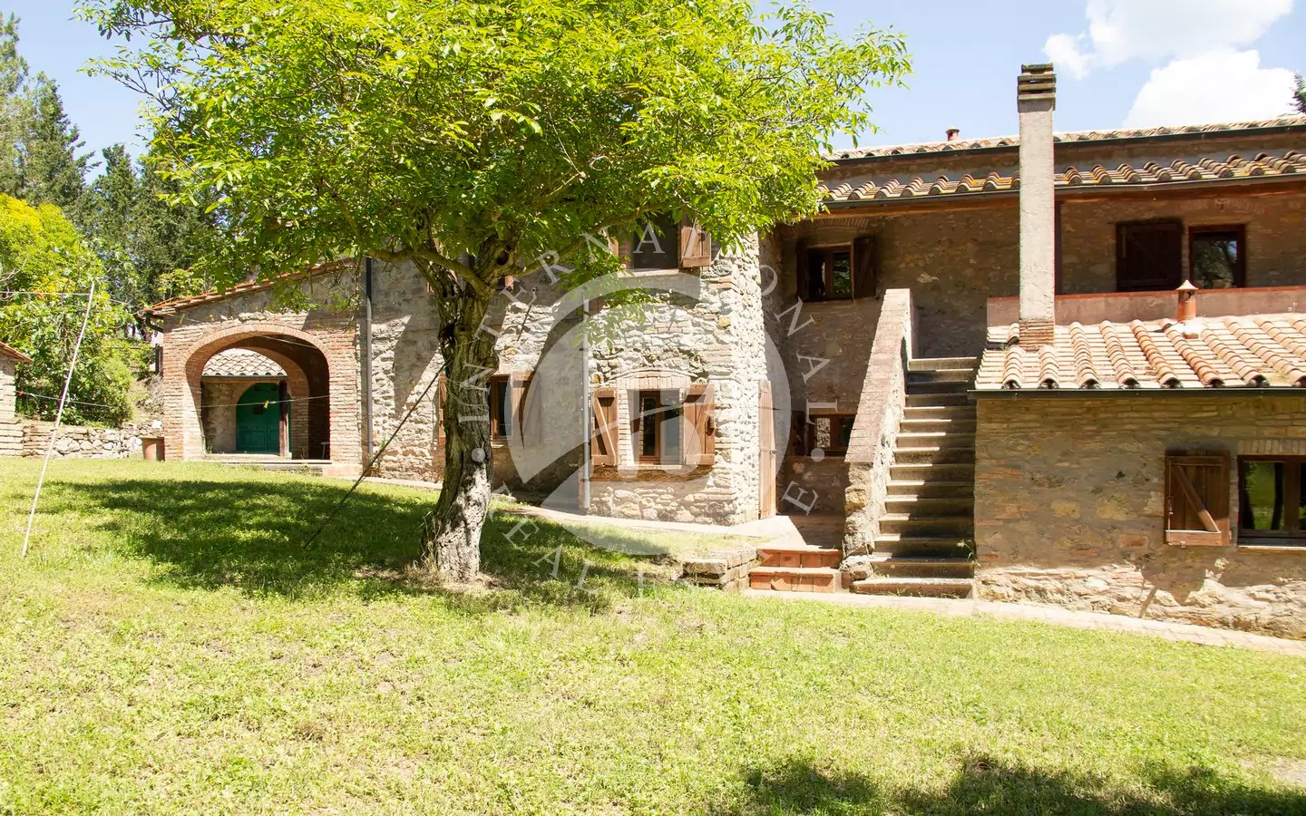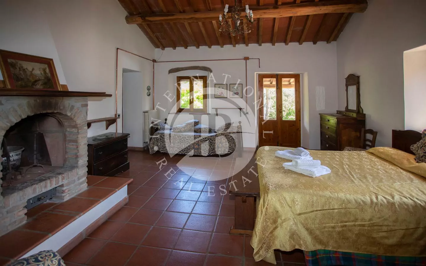 Il secondo casale, un’antica struttura in pietra risalente all’Ottocento, ha una superficie di circa 350 mq ed è stato completamente ristrutturato utilizzando materiali originali e mantenendo le caratteristiche architettoniche tipiche della zona. Si sviluppa su due livelli: al piano terra si trovano una cucina spaziosa e abitabile, sala da pranzo, soggiorno, bagno e ripostiglio; al primo piano la zona notte è composta da quattro camere matrimoniali e un bagno. L’edificio è immerso in un parco di 5.000 mq piantumato con alberi ad alto fusto, dove si trovano una seconda piscina con solarium, un locale tecnico e una cantina interrata con magazzino. Il casale gode di ottima privacy e di una vista aperta sulle colline circostanti.