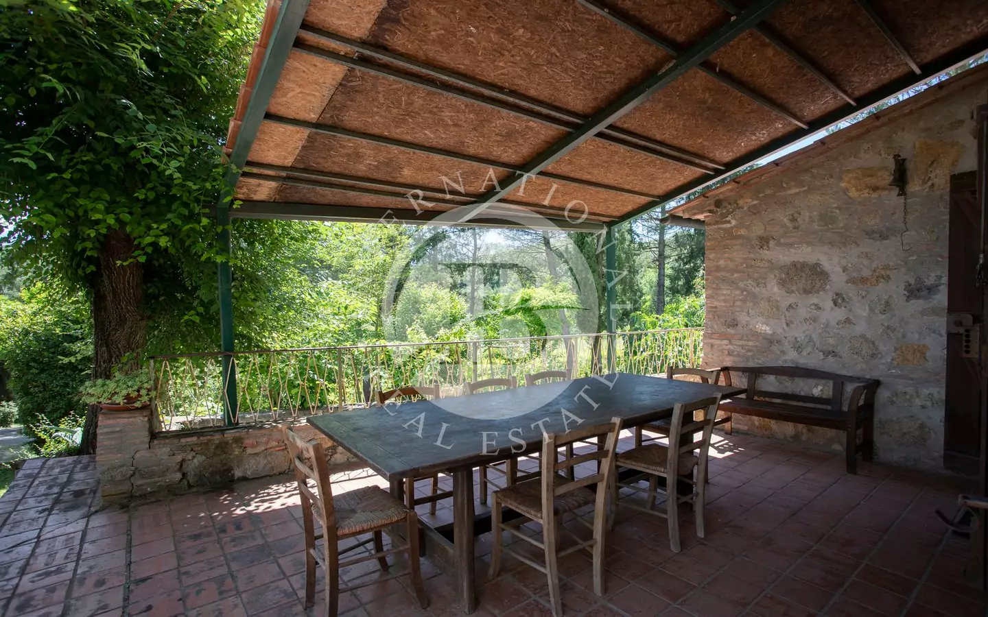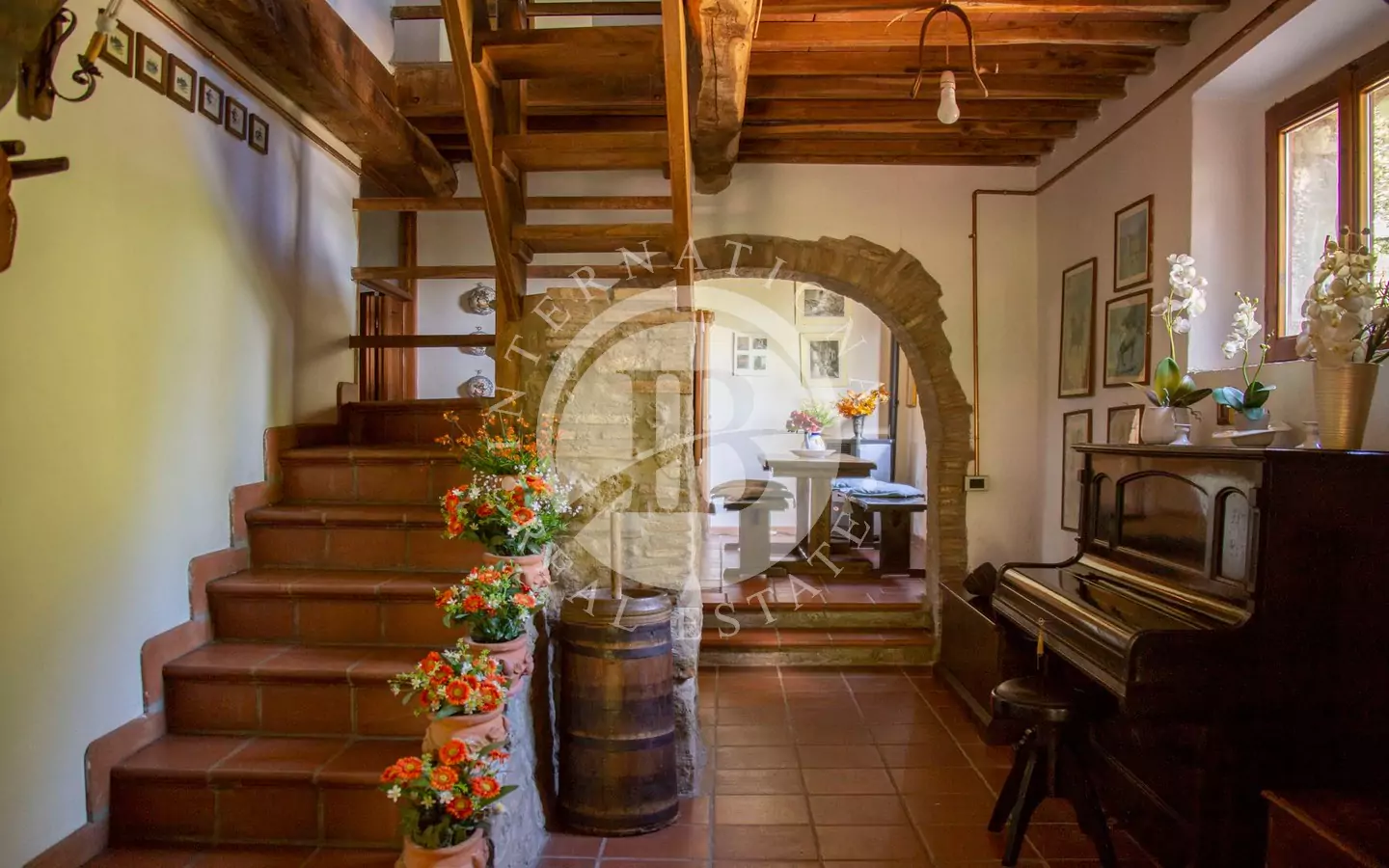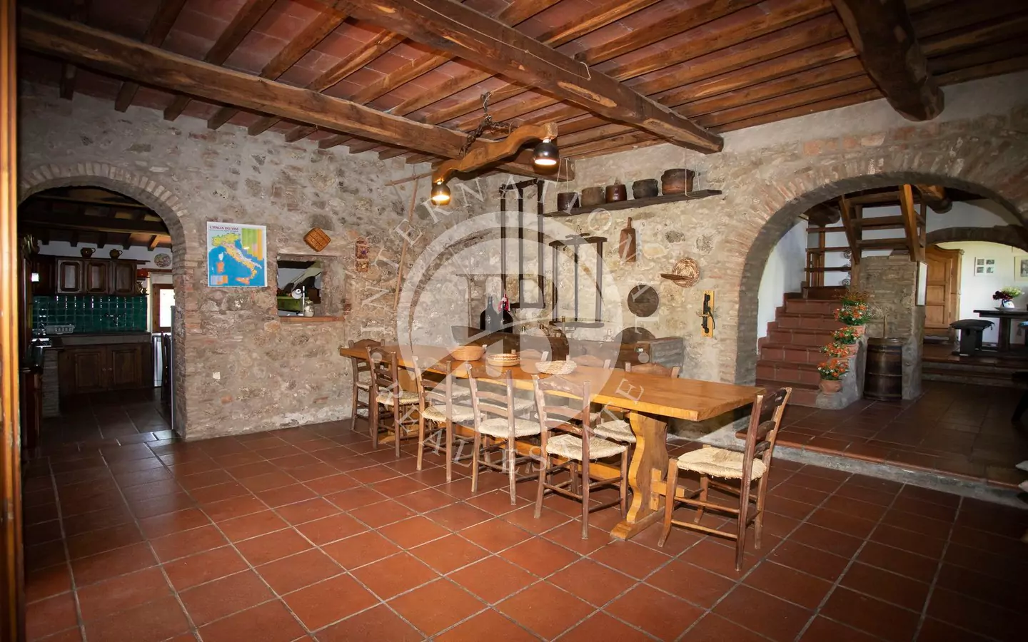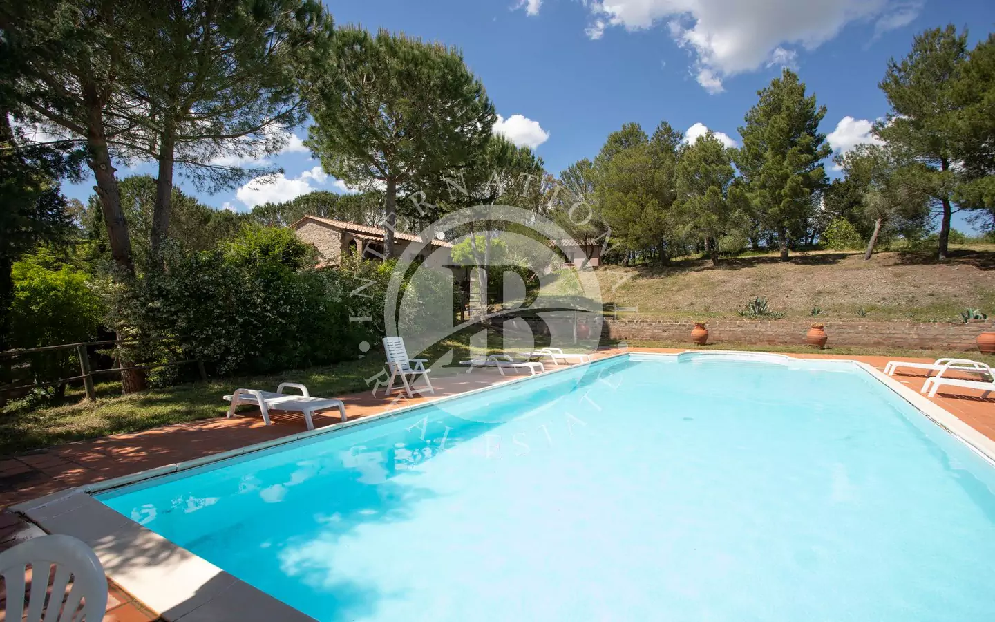 Il secondo casale, un’antica struttura in pietra risalente all’Ottocento, ha una superficie di circa 350 mq ed è stato completamente ristrutturato utilizzando materiali originali e mantenendo le caratteristiche architettoniche tipiche della zona. Si sviluppa su due livelli: al piano terra si trovano una cucina spaziosa e abitabile, sala da pranzo, soggiorno, bagno e ripostiglio; al primo piano la zona notte è composta da quattro camere matrimoniali e un bagno. L’edificio è immerso in un parco di 5.000 mq piantumato con alberi ad alto fusto, dove si trovano una seconda piscina con solarium, un locale tecnico e una cantina interrata con magazzino. Il casale gode di ottima privacy e di una vista aperta sulle colline circostanti.