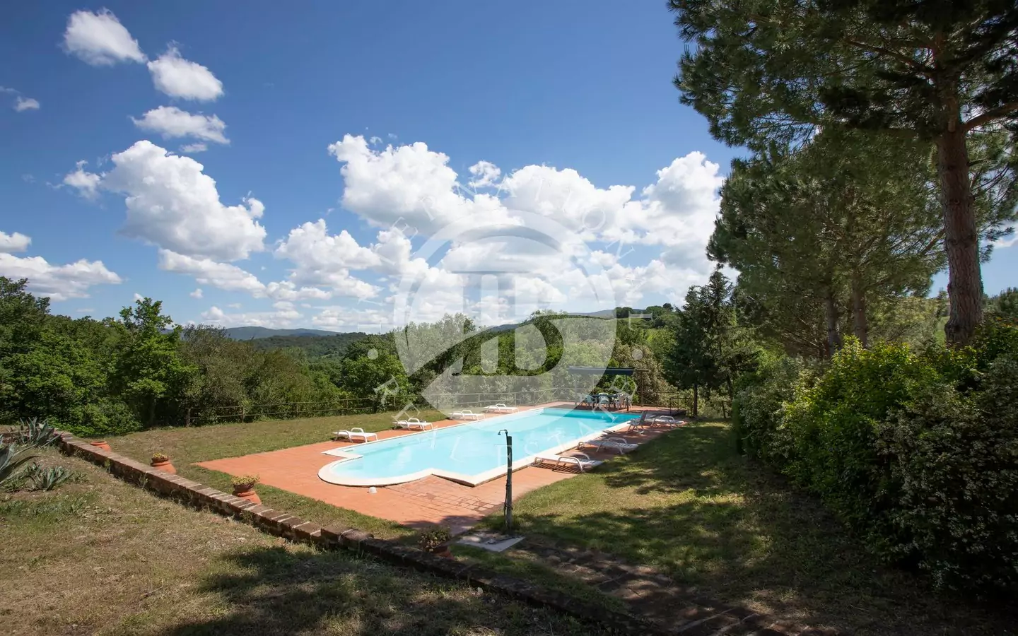 La casa è circondata da 1,3 ettari di terreno coltivato a vigna e oliveta, mentre la piscina di 7,2 x 14,40 metri, con solarium e locale tecnico seminterrato di circa 65 mq, completa questa prima unità residenziale.
