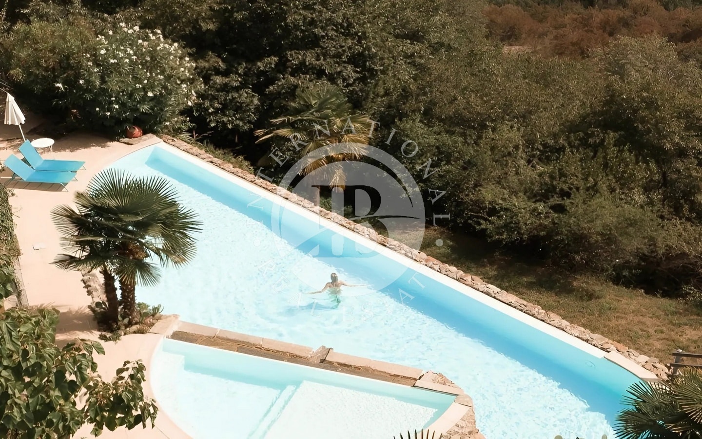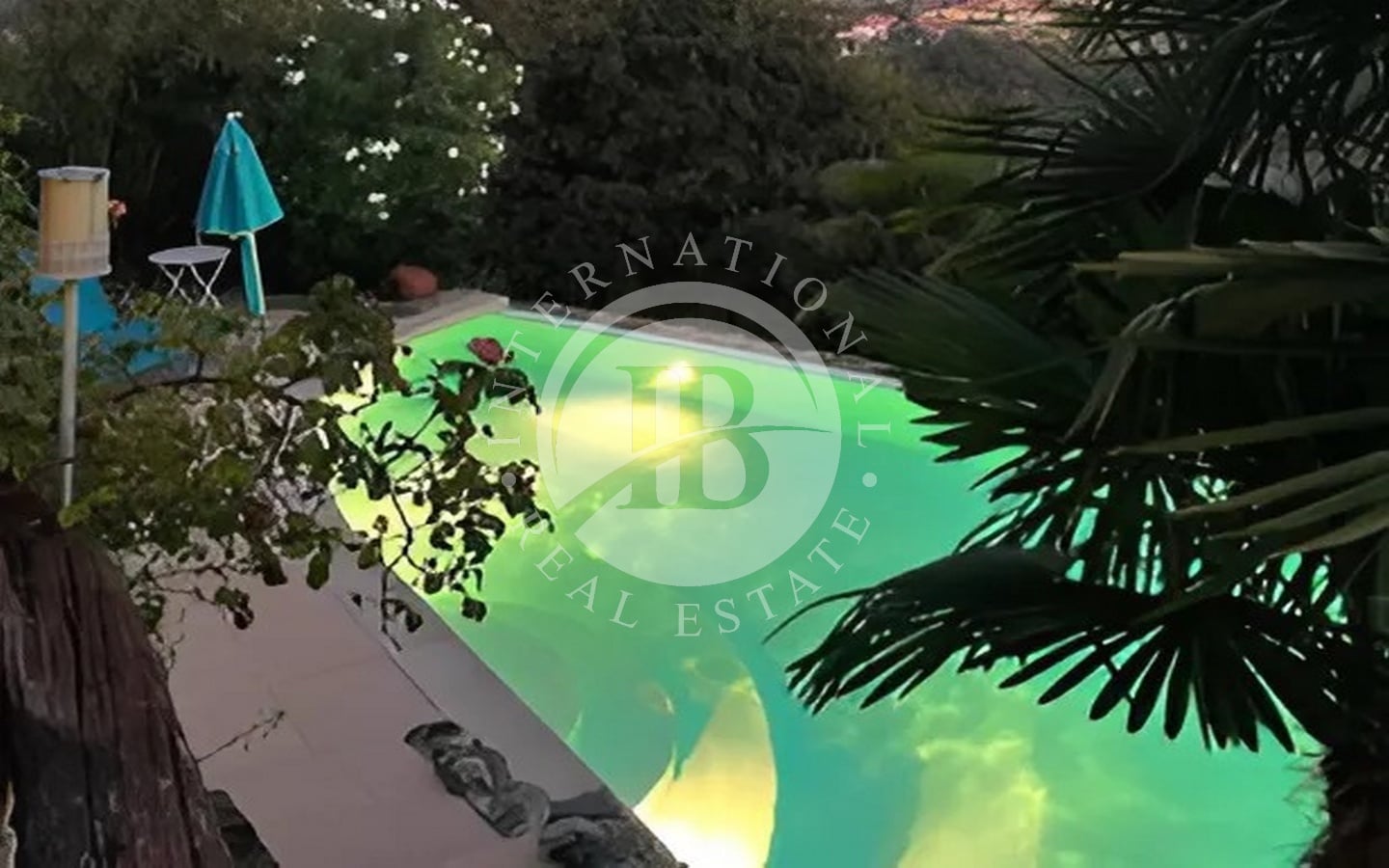 La zona esterna comprende un terreno piantumato con castagni, querce e noccioli, ampi prati pensili, un parcheggio e un'area idonea per la realizzazione di un eliporto privato. La proprietà è facilmente accessibile tramite una strada privata di circa 800 metri, che garantisce esclusività e privacy.