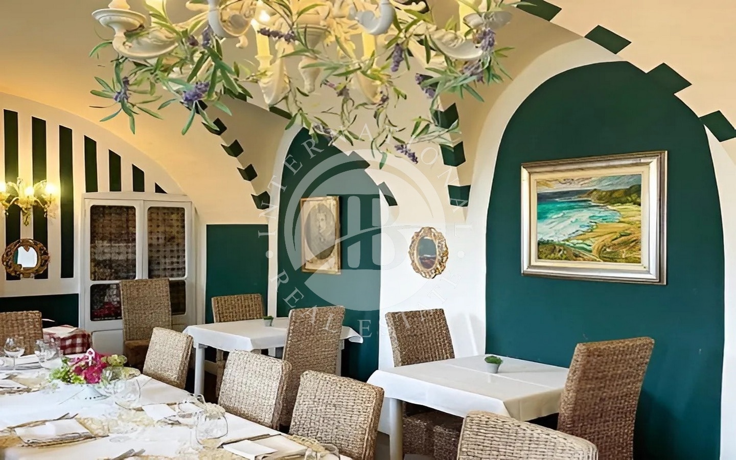 La struttura, attualmente adibita ad attività ricettiva, offre numerosi spazi, tra cui 22 camere con bagno en suite, sala colazioni, ristorante, sala riunioni, cucina e locali di servizio. Tra i comfort inclusi vi sono una veranda con giardino d'inverno, piscina panoramica su due livelli, terrazze, giardini solarium, bar e gazebo. Il giardino mediterraneo interno è arricchito da palme, ulivi, fichi d'India e erbe officinali. Inoltre, la proprietà dispone di una torre campanaria storica e mura di cinta antiche.