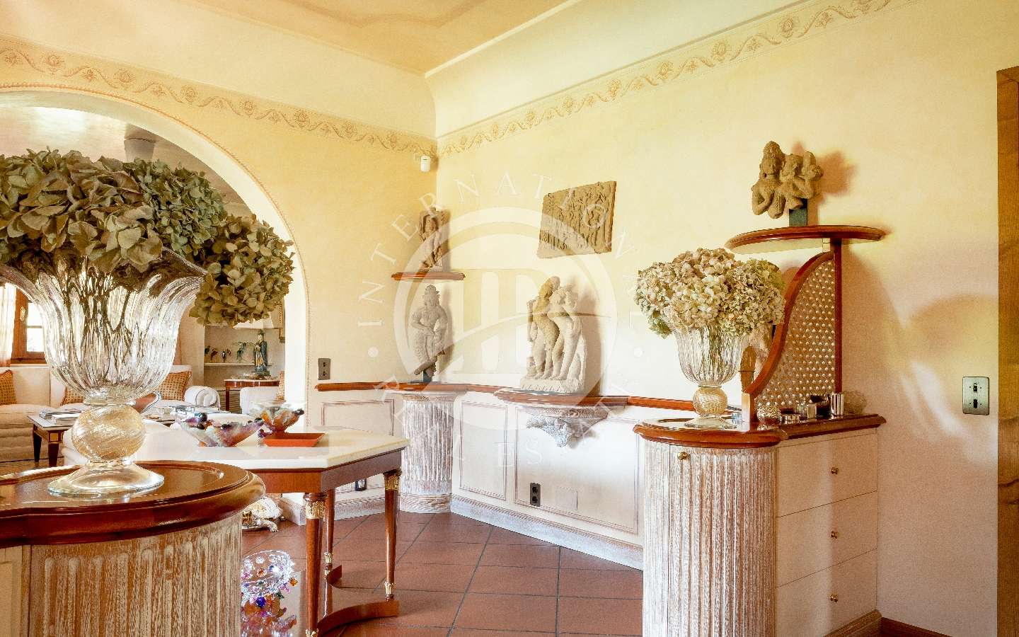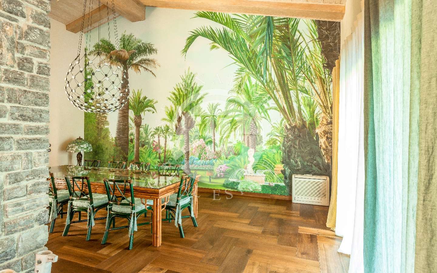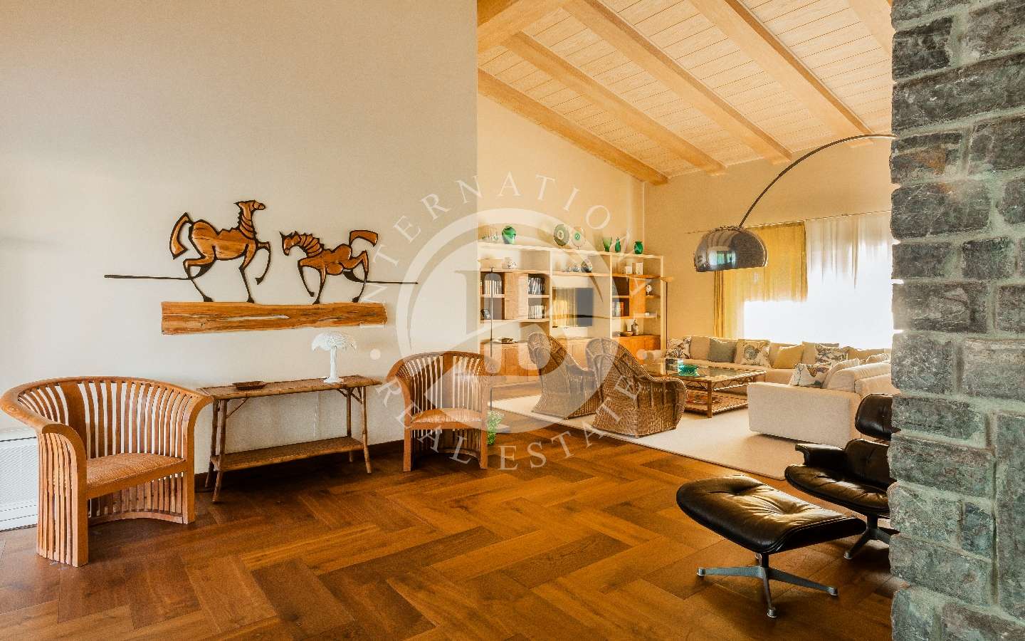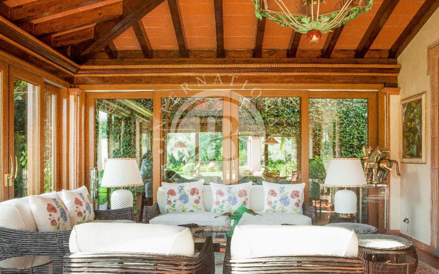 Il giardino privato che fa da nido alle proprietà, è caratterizzato da diverse opere scultoree di pregio, piante rare, palme, un laghetto, un gazebo in legno con area pranzo, e lo spazio per realizzare una piscina aggiuntiva. Completano l’area esterna vari posti auto coperti.