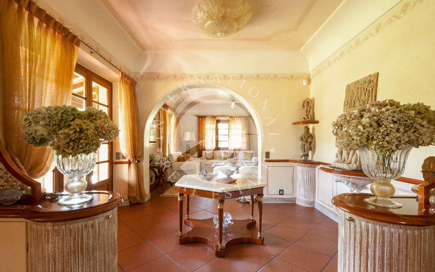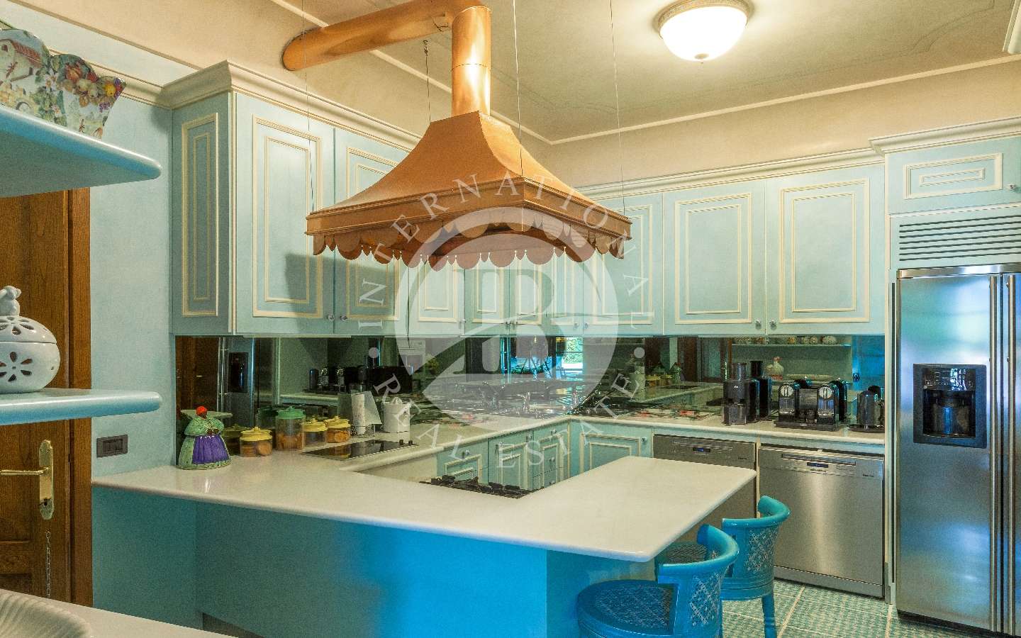 La Villa principale di circa 500mq ospita un salotto con adiacente una grande sala da pranzo, cucina con penisola, 4 camere da letto, una veranda per godere degli spazi esterni stando al riparo e una piscina. La seconda e la terza villa, rispettivamente di 340 e 220mq, ospitano living dall’ampio respiro, cucine moderne, 8 camere da letto e vari bagni, per un totale di 11 sull’intero complesso. I mobili di design e la struttura interna delle residenze, permettono un connubio ideale con il parco piantumato esterno, e sembrano, l’uno dell’altro, l’estensione naturale.