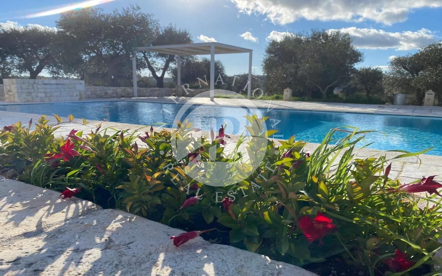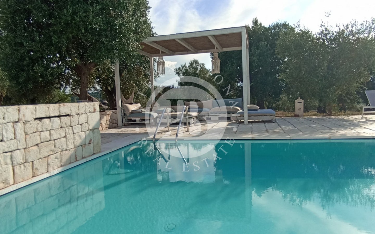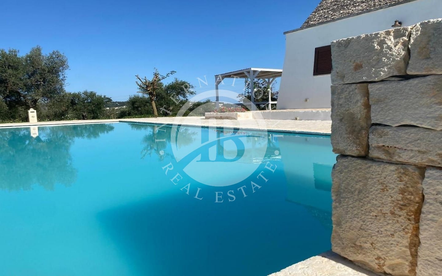 All'esterno, la proprietà vanta un ampio patio/corte e una meravigliosa piscina a sfioro (12x5 m) con impianto ad elettrolisi del sale, circondata da un ampio spiazzo.