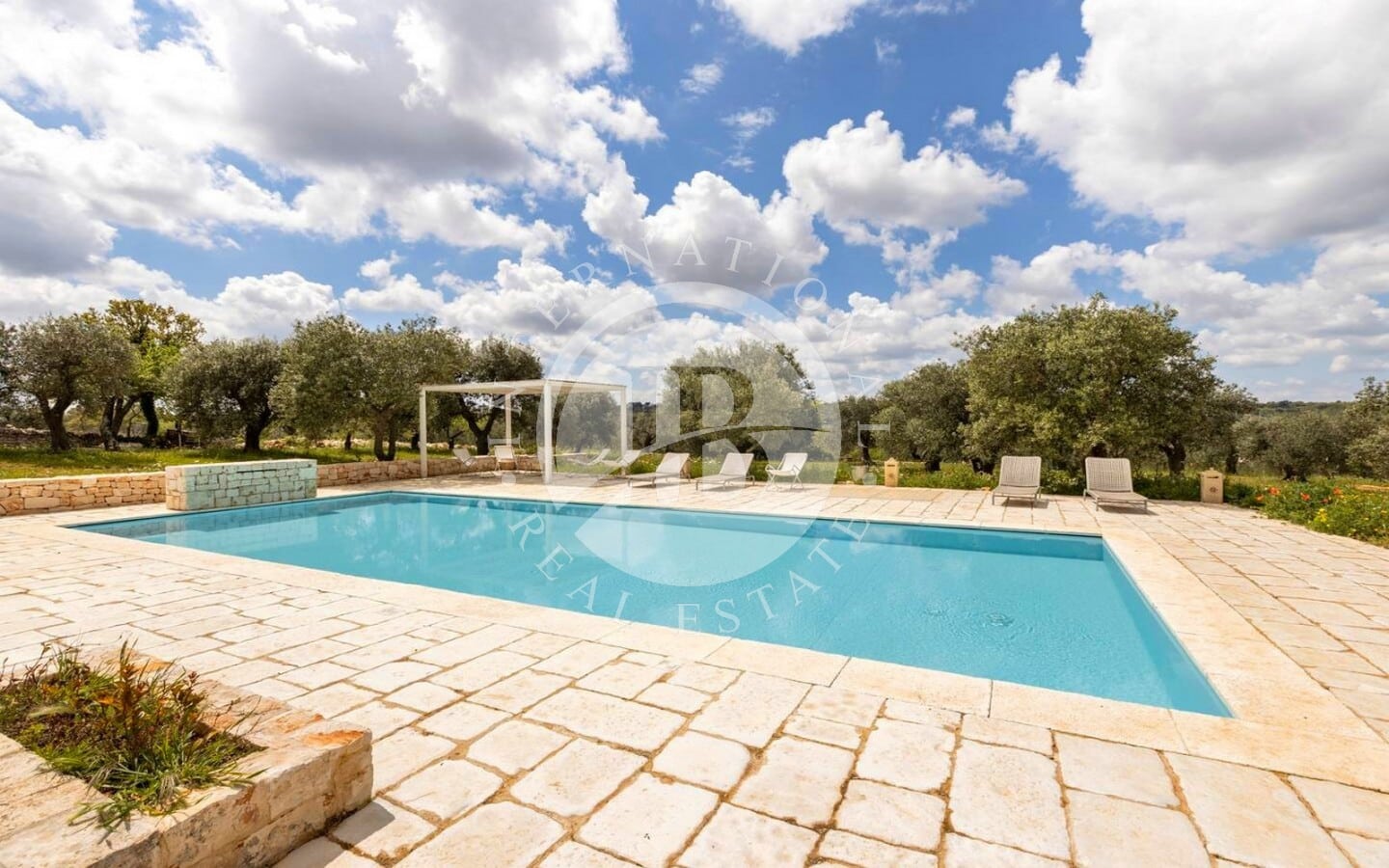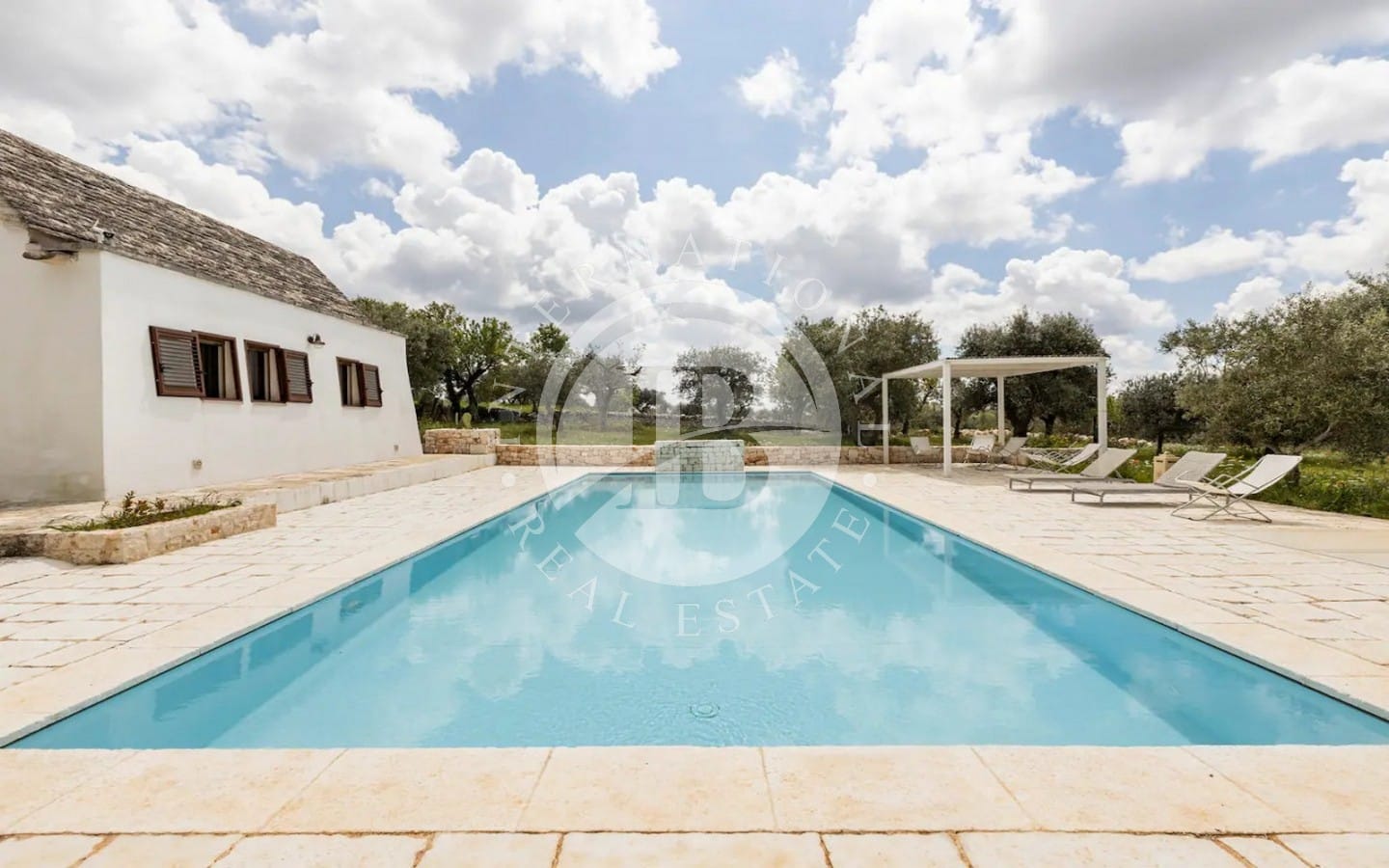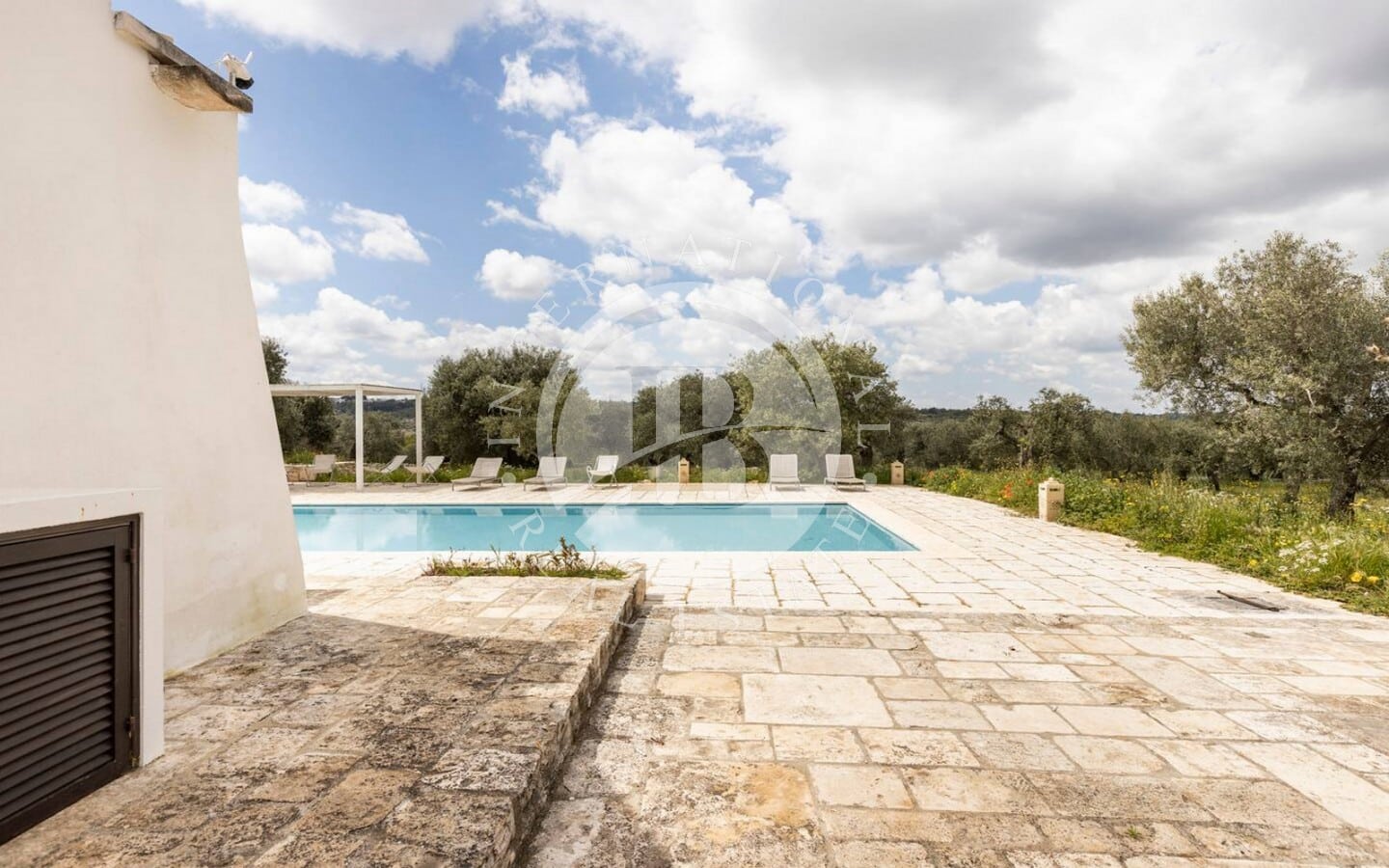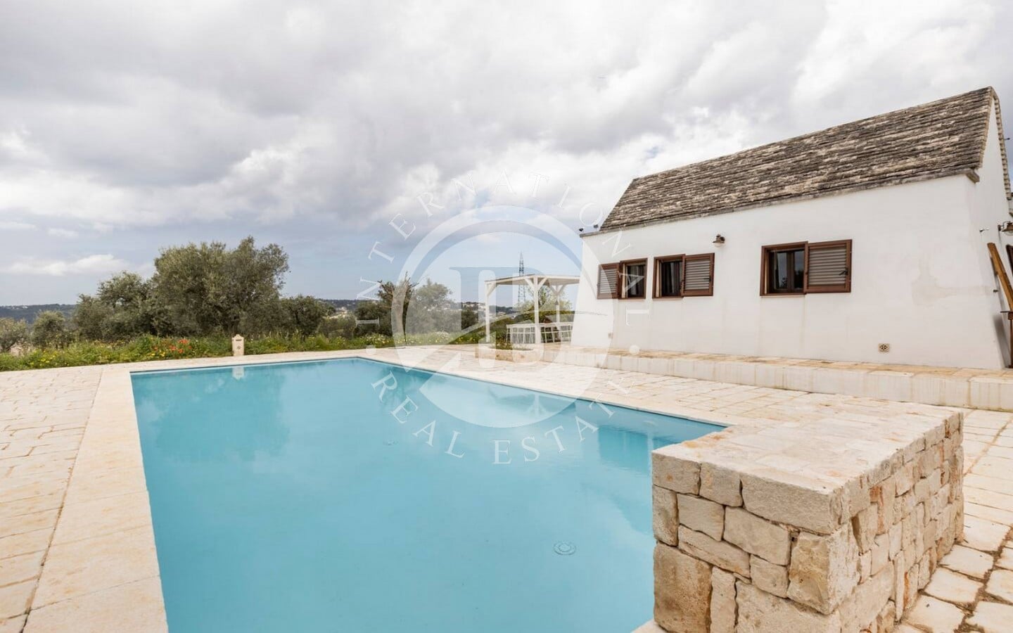 All'esterno, la proprietà vanta un ampio patio/corte e una meravigliosa piscina a sfioro (12x5 m) con impianto ad elettrolisi del sale, circondata da un ampio spiazzo.