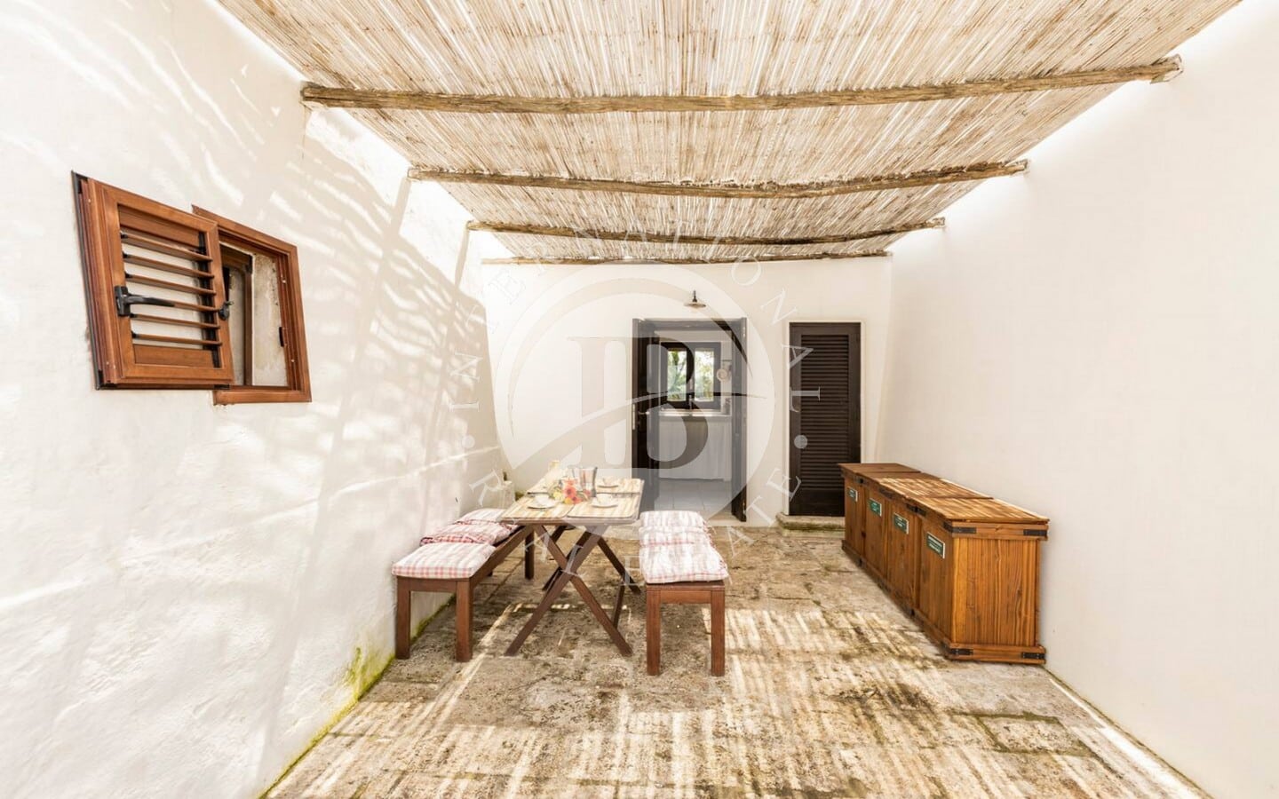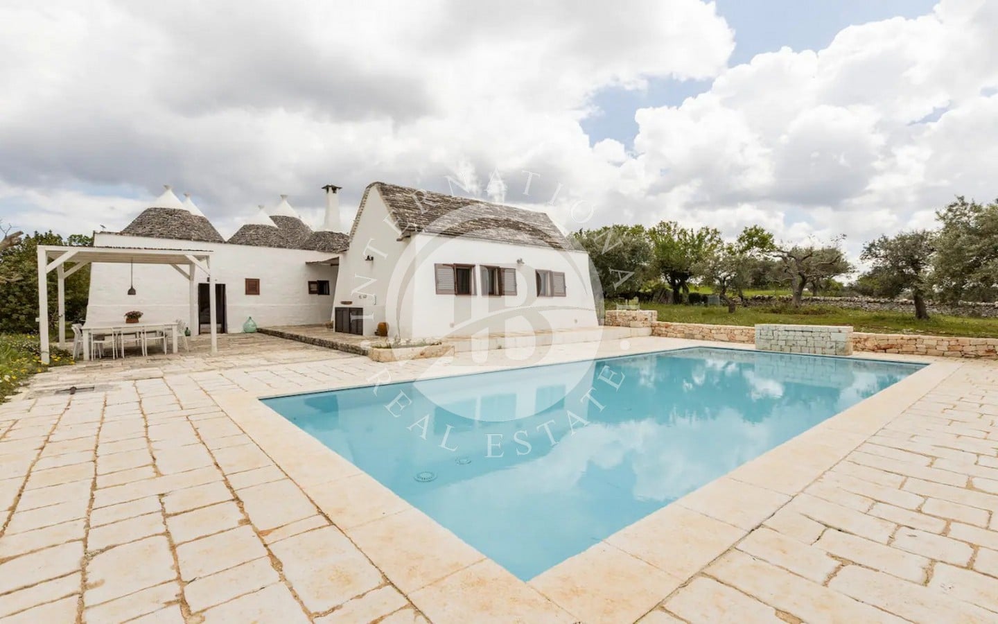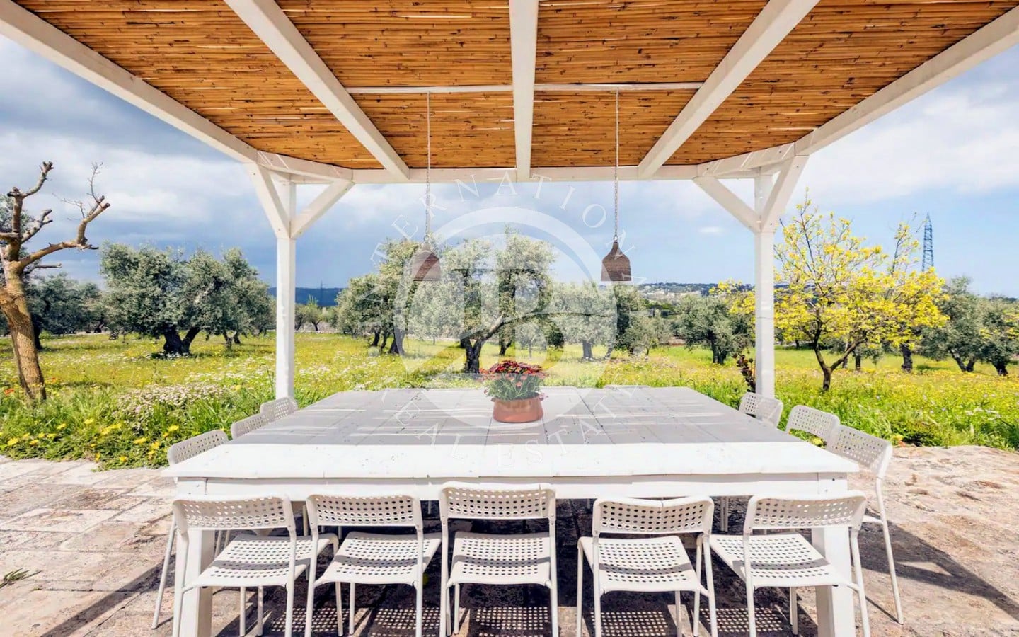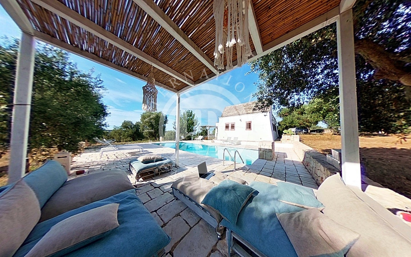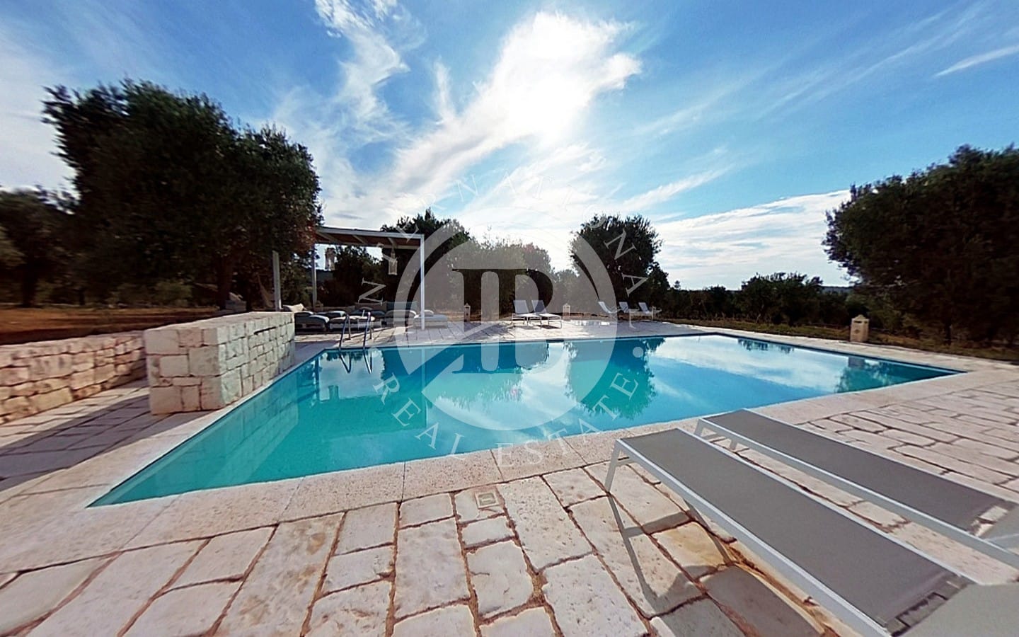 Il terreno circostante, esteso per circa 5.000 mq, è arricchito da alberi da frutto e piante ombreggianti, creando un'oasi di tranquillità e bellezza.